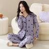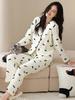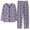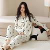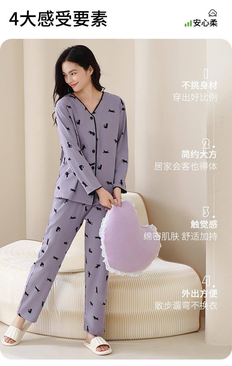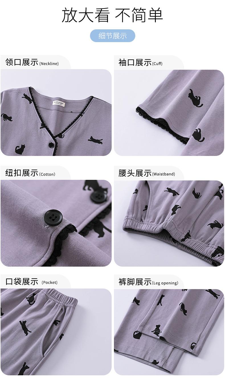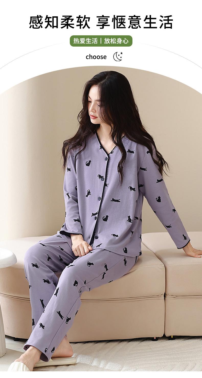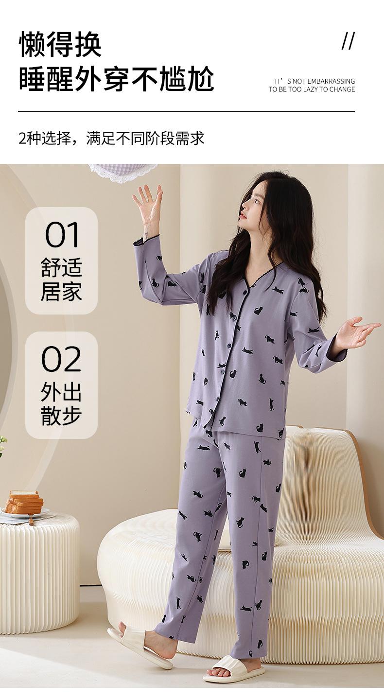 Pijama de algodón puro para mujer, otoño e invierno, manga larga, estampado de gatito lindo, cárdigan, ropa de casa, primavera y otoño, pijama de talla grande para mujer