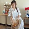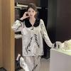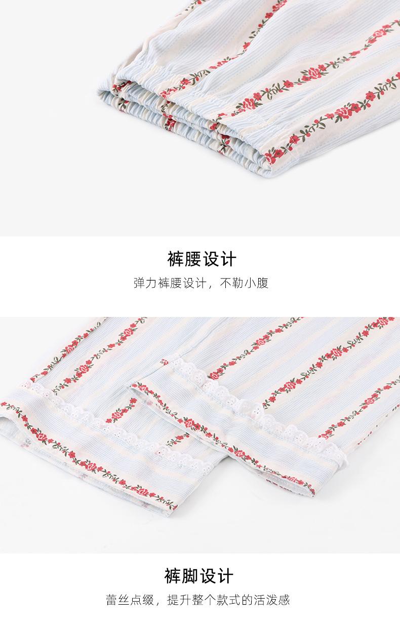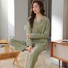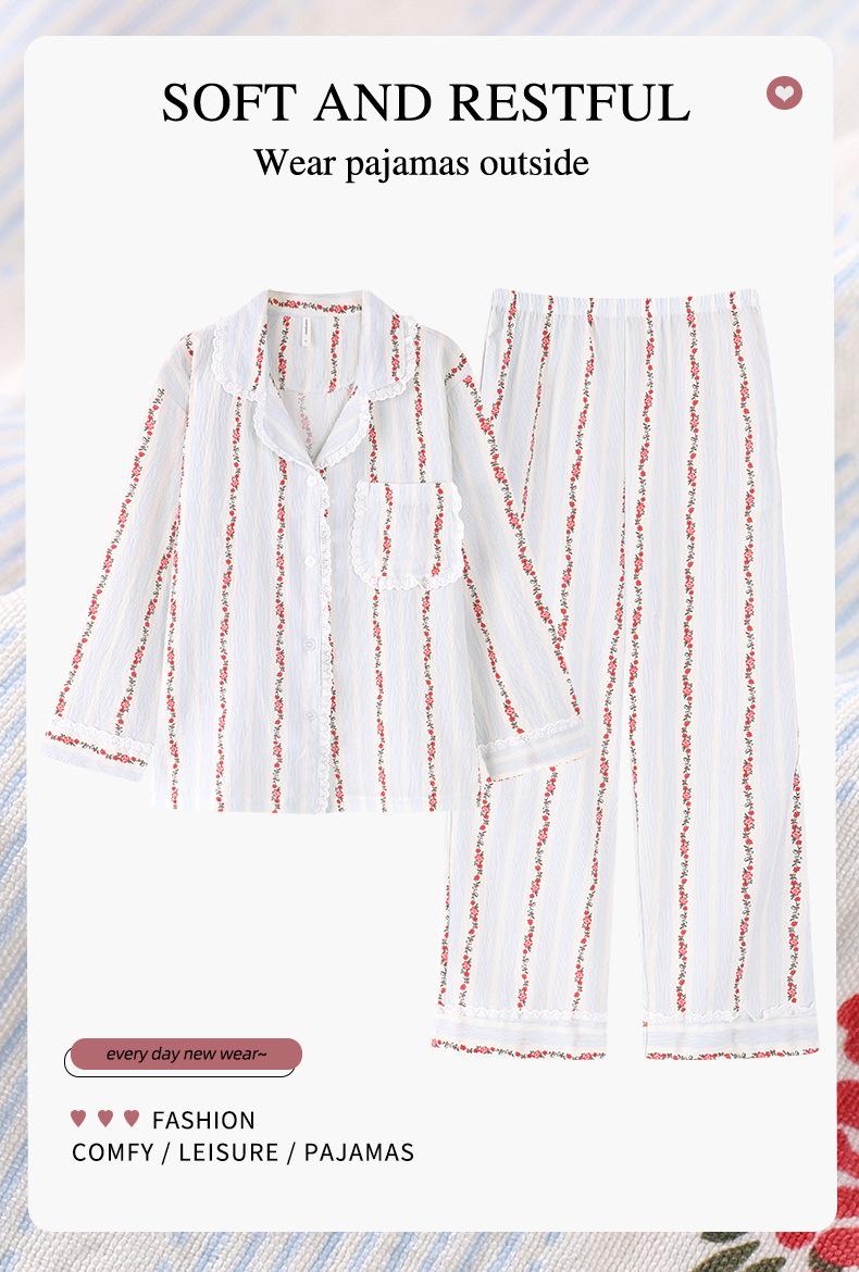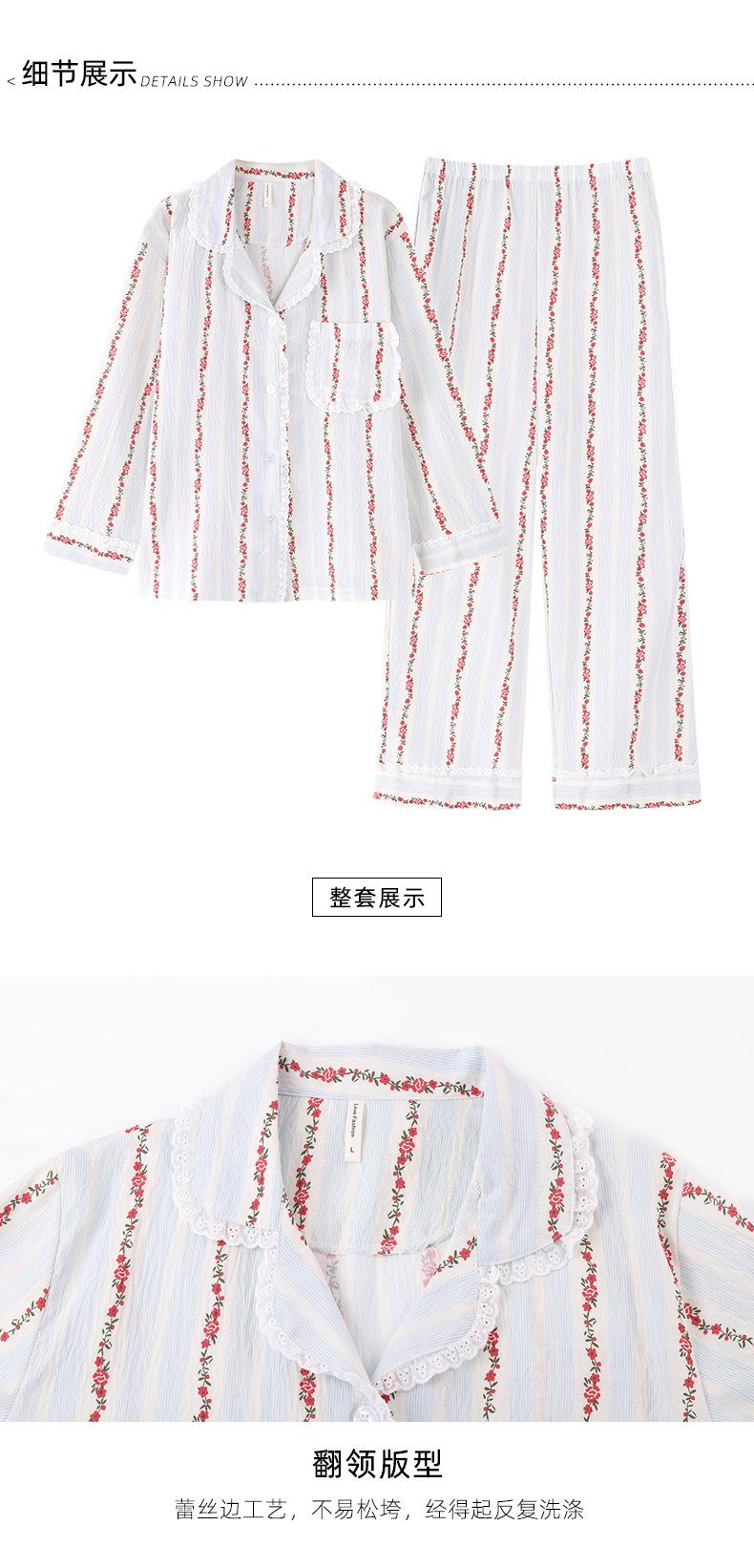 Pijama para Mujer Primavera y Otoño Manga Larga Encaje Solapa Pequeña Cárdigan Dulce Floral Conjunto de Estudiante Se Puede Usar Afuera Pantalones Largos Delgados