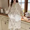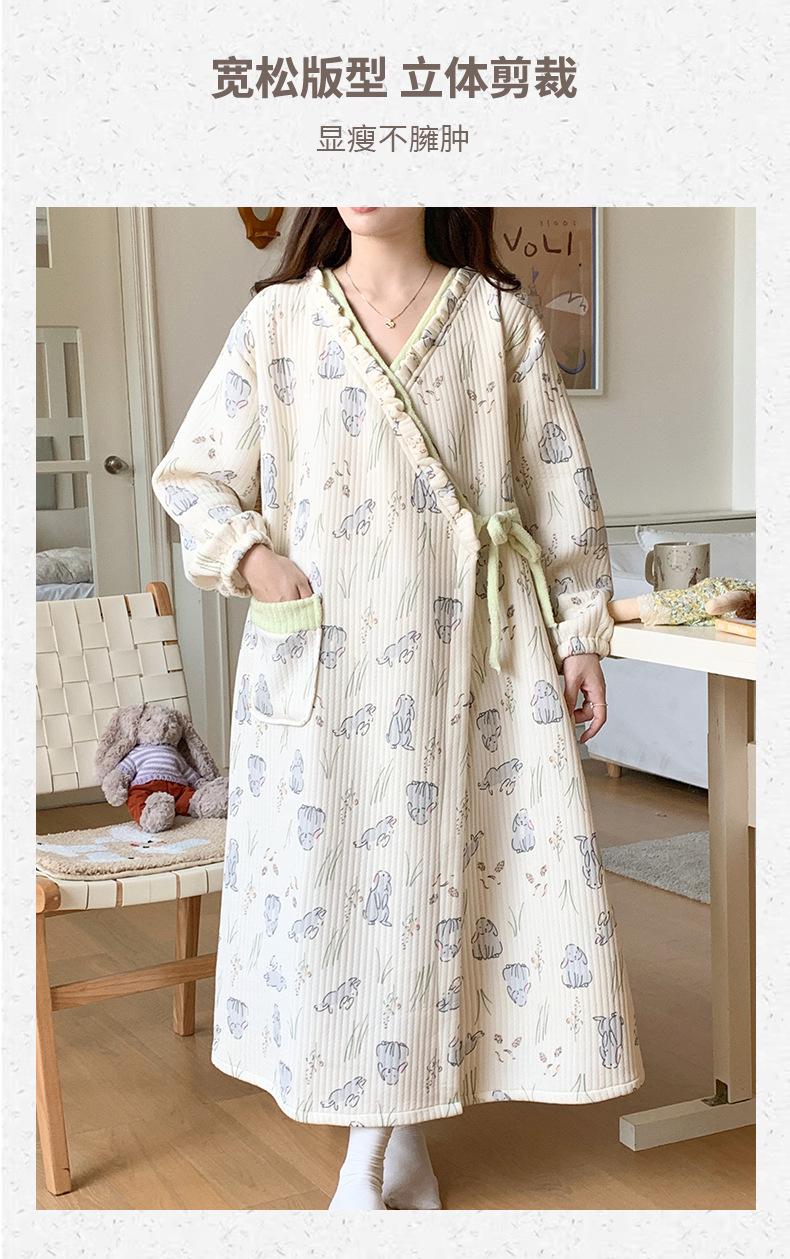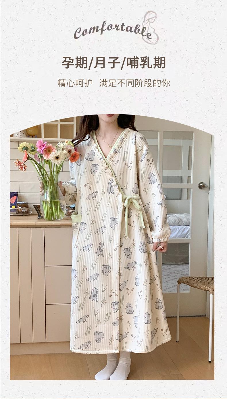 Happy Moon Venta al por Mayor Otoño e Invierno Dulce Encaje con Cordones Algodón Aire Vestido de Maternidad Mujeres Embarazadas Postparto Lactancia Hogar Vestido Largo