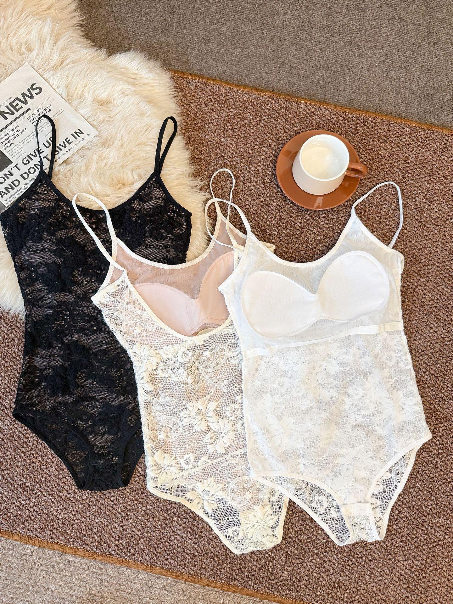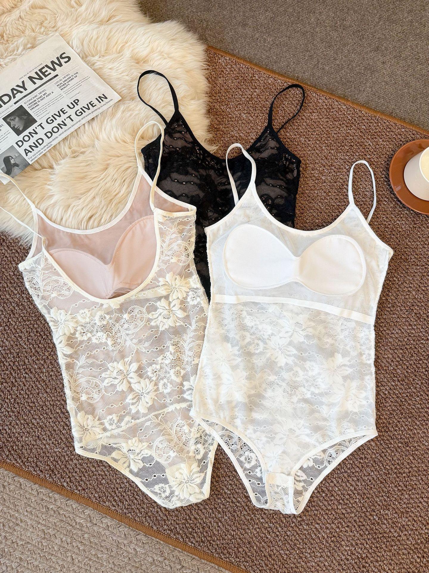 2256# Body Top de Tirantes Espagueti Estilo Personalizado Hot Girl Adelgazante Encaje Ropa Interior Sexy Sin Espalda Ropa Exterior