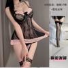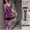Camisola Sexy Francesa para Casa Estilo Puro Deseo Encaje Patchwork Rayada Mujer Lazo Espalda Descubierta Lencería para Mujer
