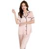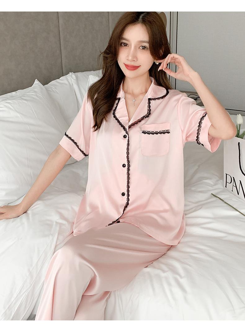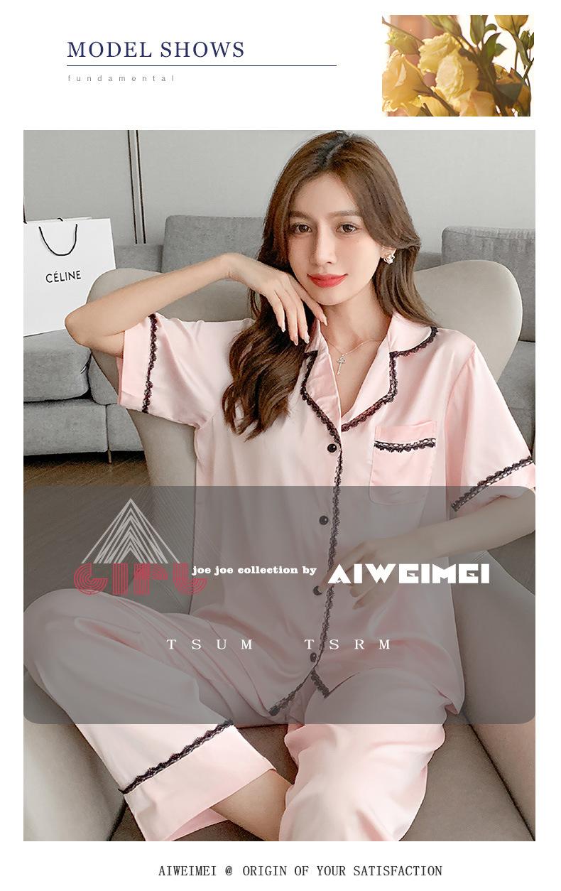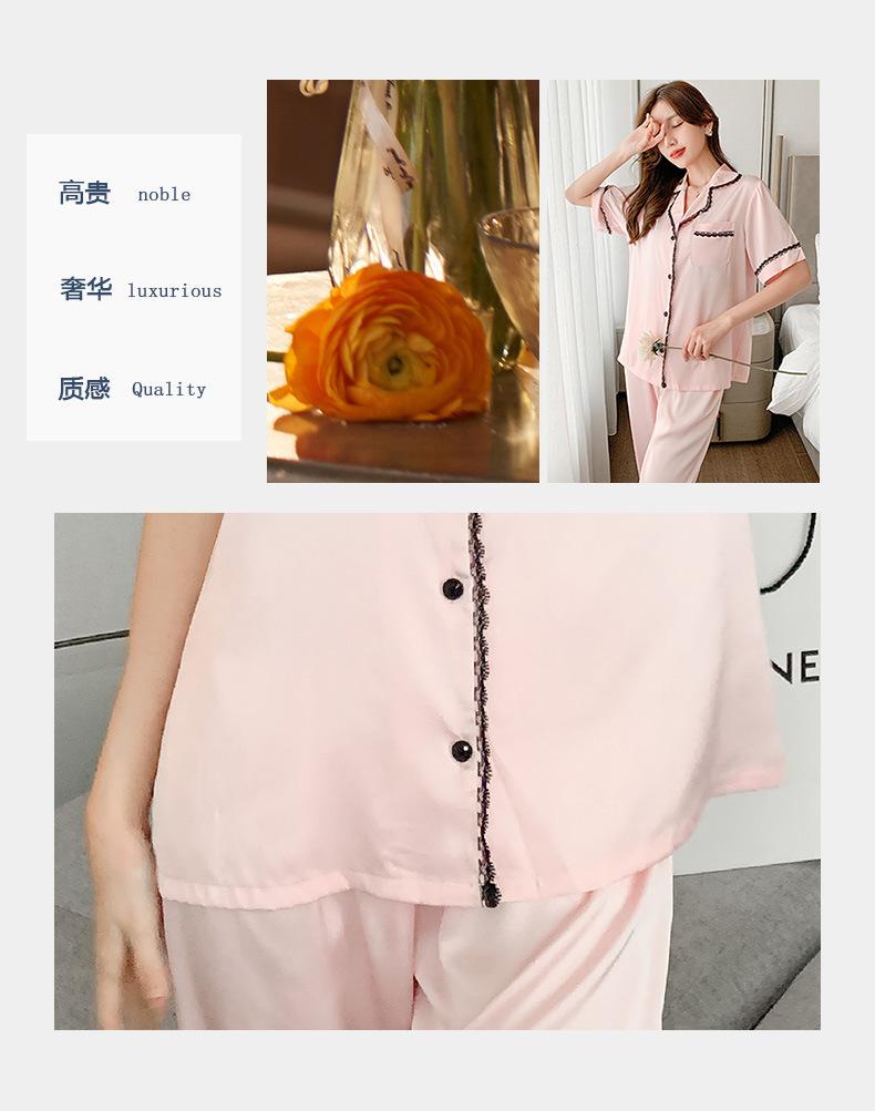 Pijama de Seda de Hielo para Mujer de Manga Corta de Verano Cárdigan Delgado Seda de Alta Calidad Transpirable Fresco Aire Acondicionado Traje Ropa de Casa