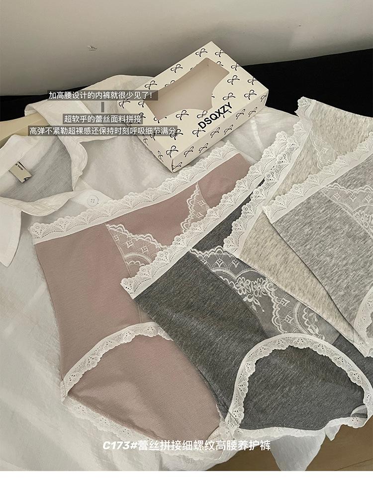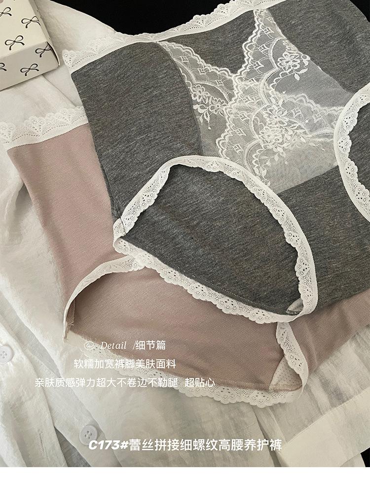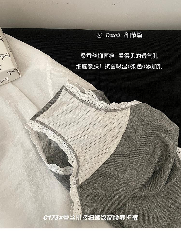 Braguitas de Encaje para Mujer con Entrepierna Antibacteriana de Hilo Fino, Calzoncillos Seamless de Cintura Alta para Mujer con Entrepierna Antibacteriana de Seda de Morera