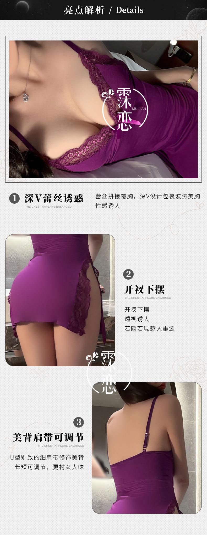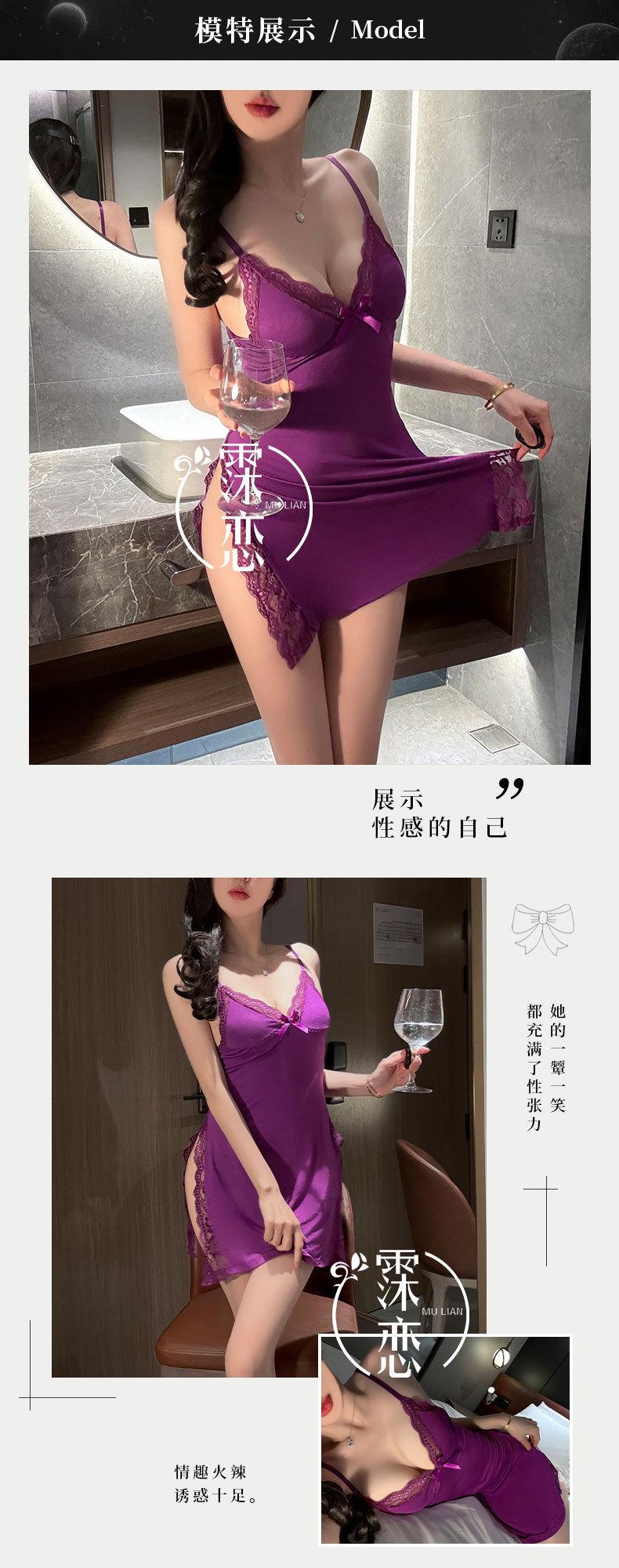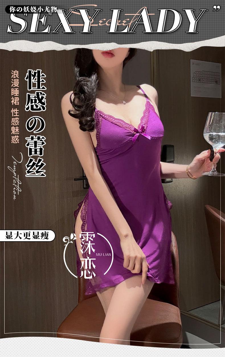 Lencería Sexy Europea y Americana Modal Púrpura Lujuria Pura Sexy Sexy Pijama Camisón de Tirantes de Largo Medio Empalme de Encaje