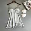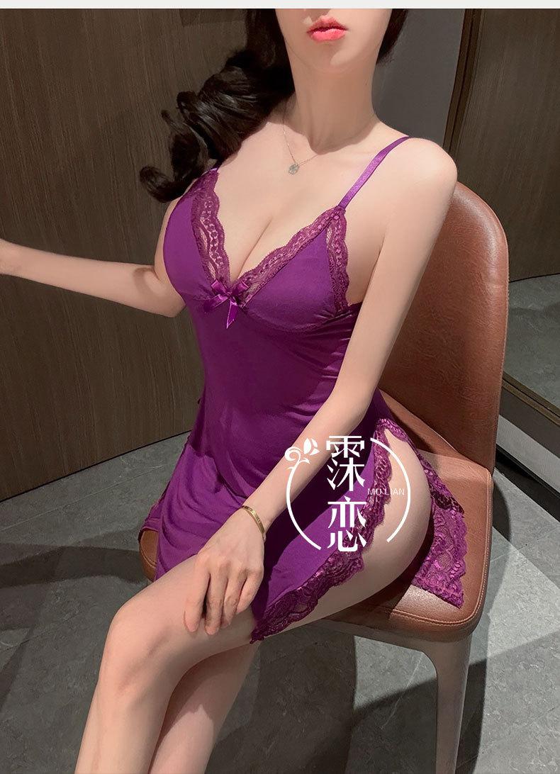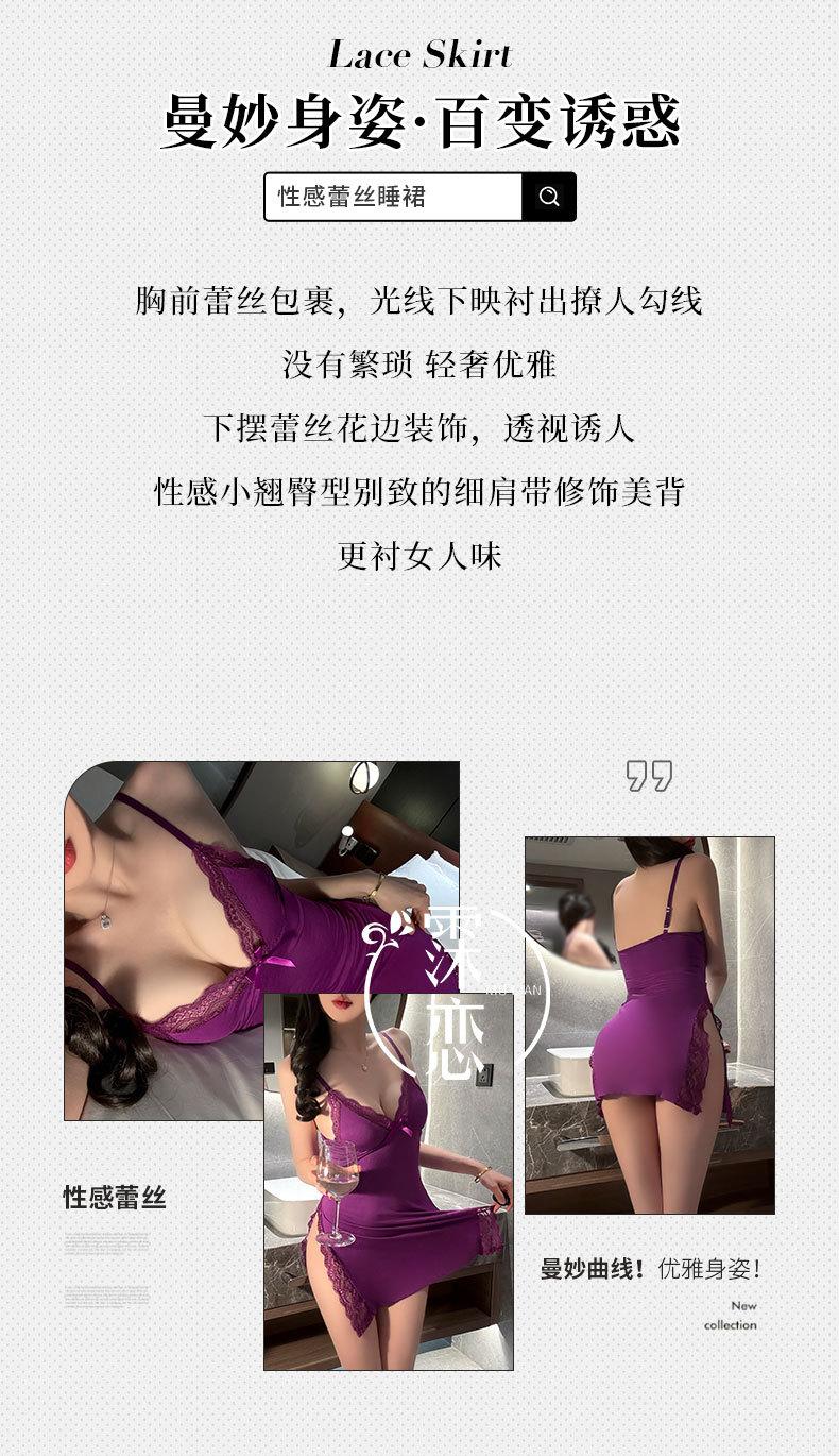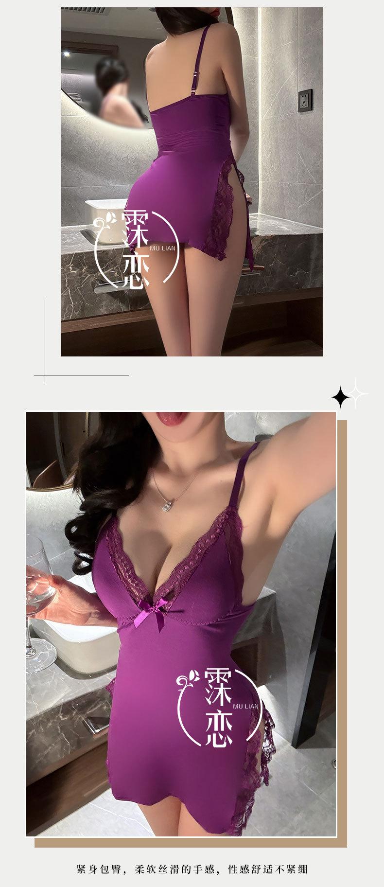Lencería Sexy Europea y Americana Modal Púrpura Lujuria Pura Sexy Sexy Pijama Camisón de Tirantes de Largo Medio Empalme de Encaje