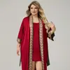 Camisola de Cetim Plus Size Yaoting para Mulheres, Cor Sólida Luxo Roupa de Casa Conjunto de Roupão de Cetim 3372+3586
