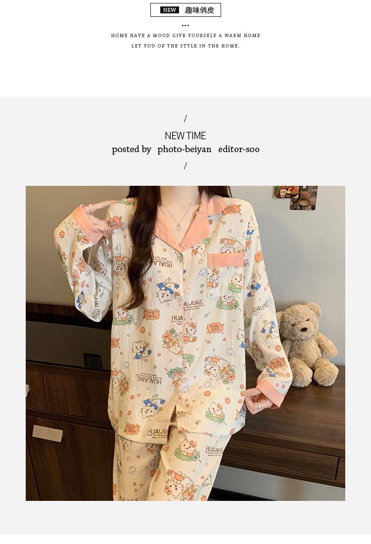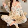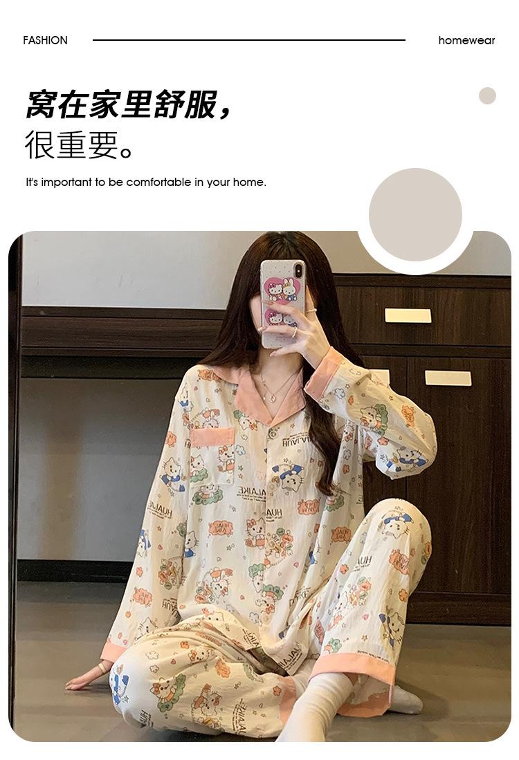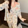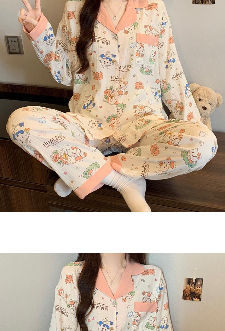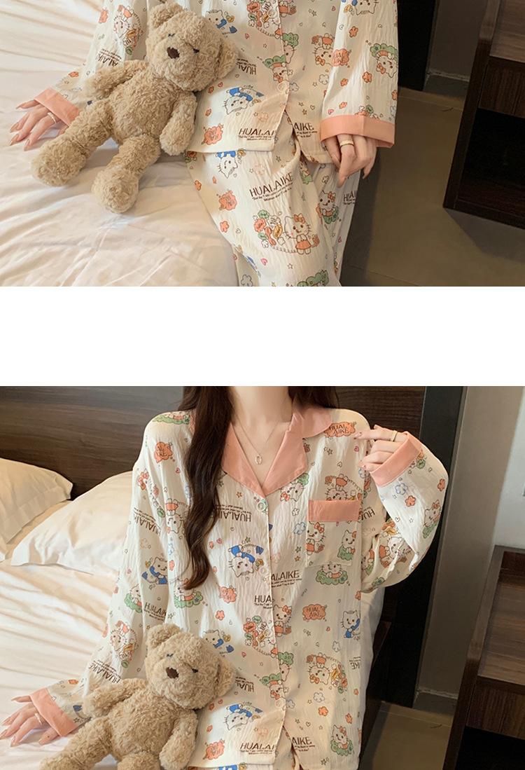 Pijama de Gato de Dibujos Animados para Mujer Otoño Algodón Nube Manga Larga Cárdigan Lindo Chica Puede Usar Para Salir Conjunto Ropa de Casa Venta al por Mayor