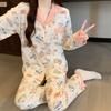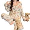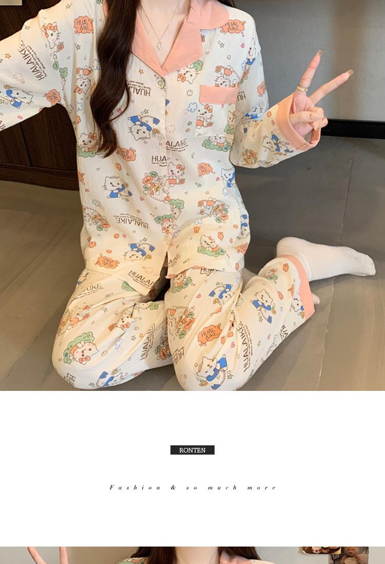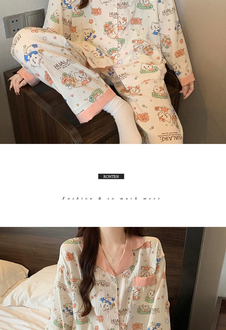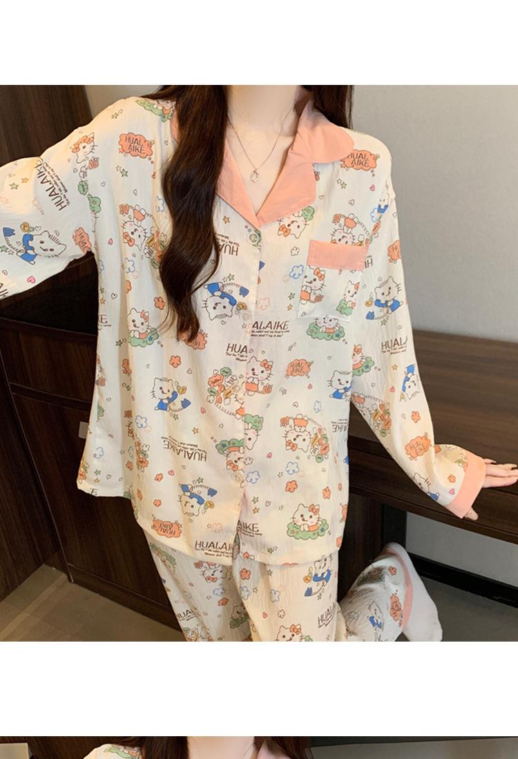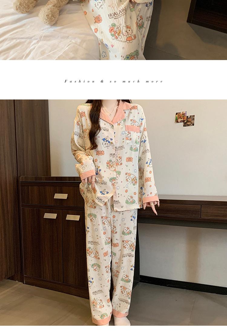 Pijama de Gato de Dibujos Animados para Mujer Otoño Algodón Nube Manga Larga Cárdigan Lindo Chica Puede Usar Para Salir Conjunto Ropa de Casa Venta al por Mayor