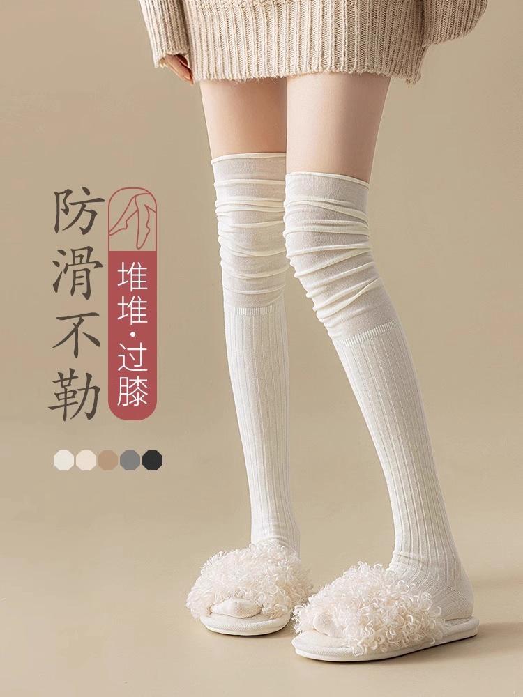 Calcetines blancos por encima de la rodilla para mujer estilo otoño y primavera color sólido calcetines altos hasta el muslo antideslizantes de compresión adelgazantes de felpa calcetines largos para usar con botas