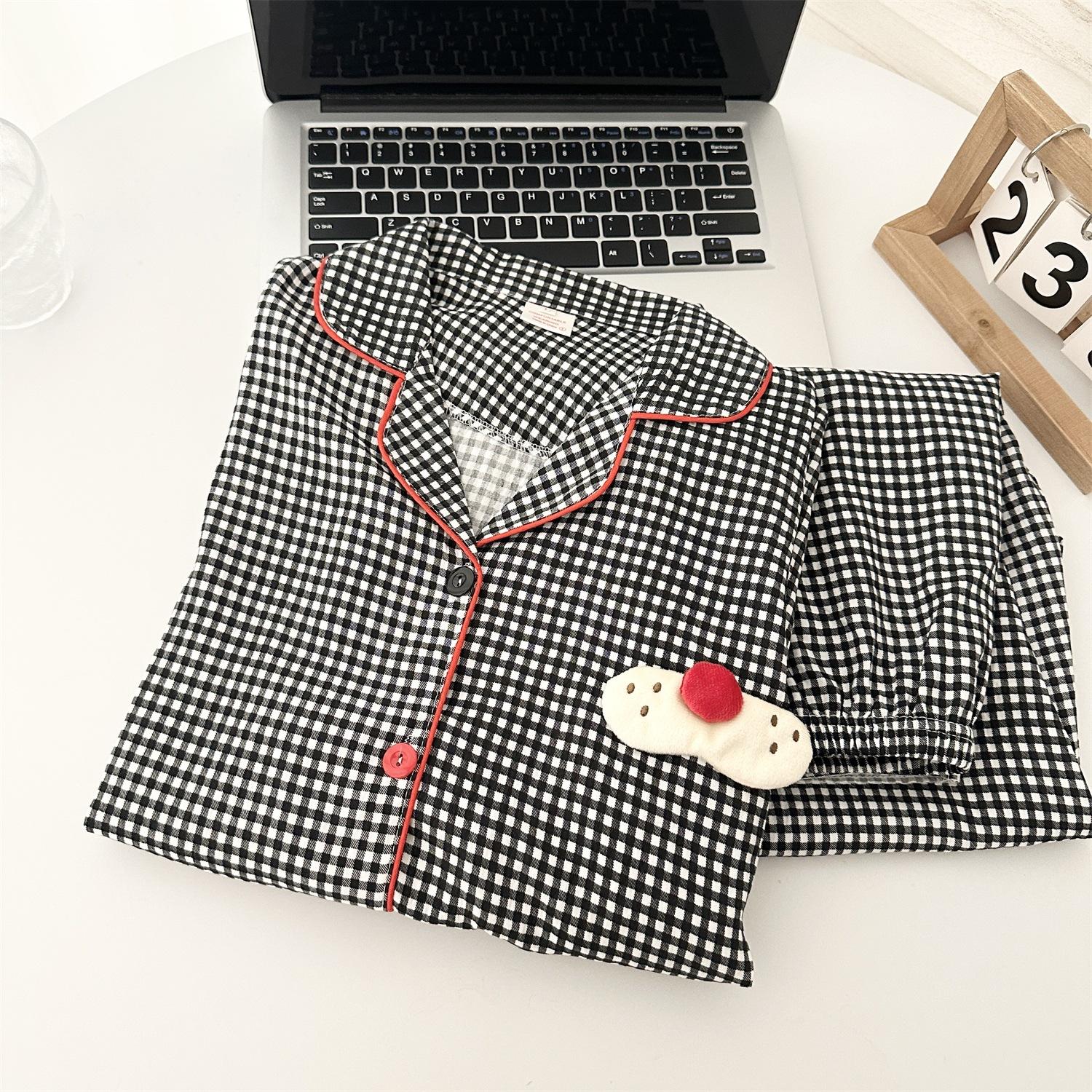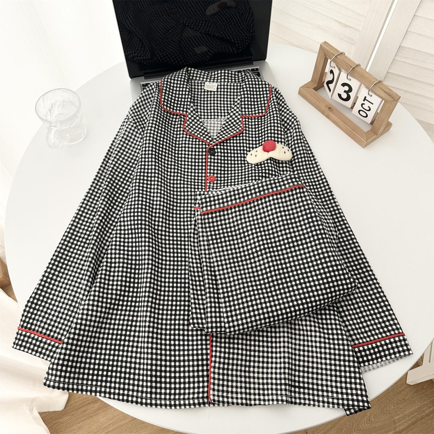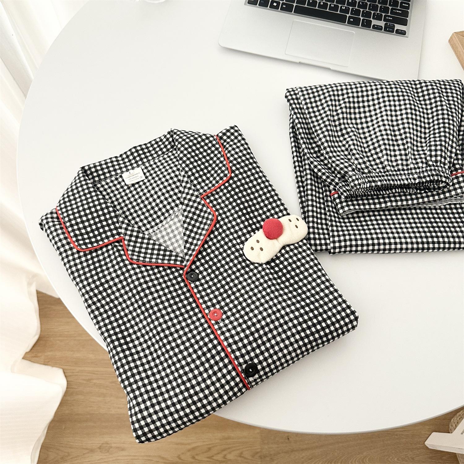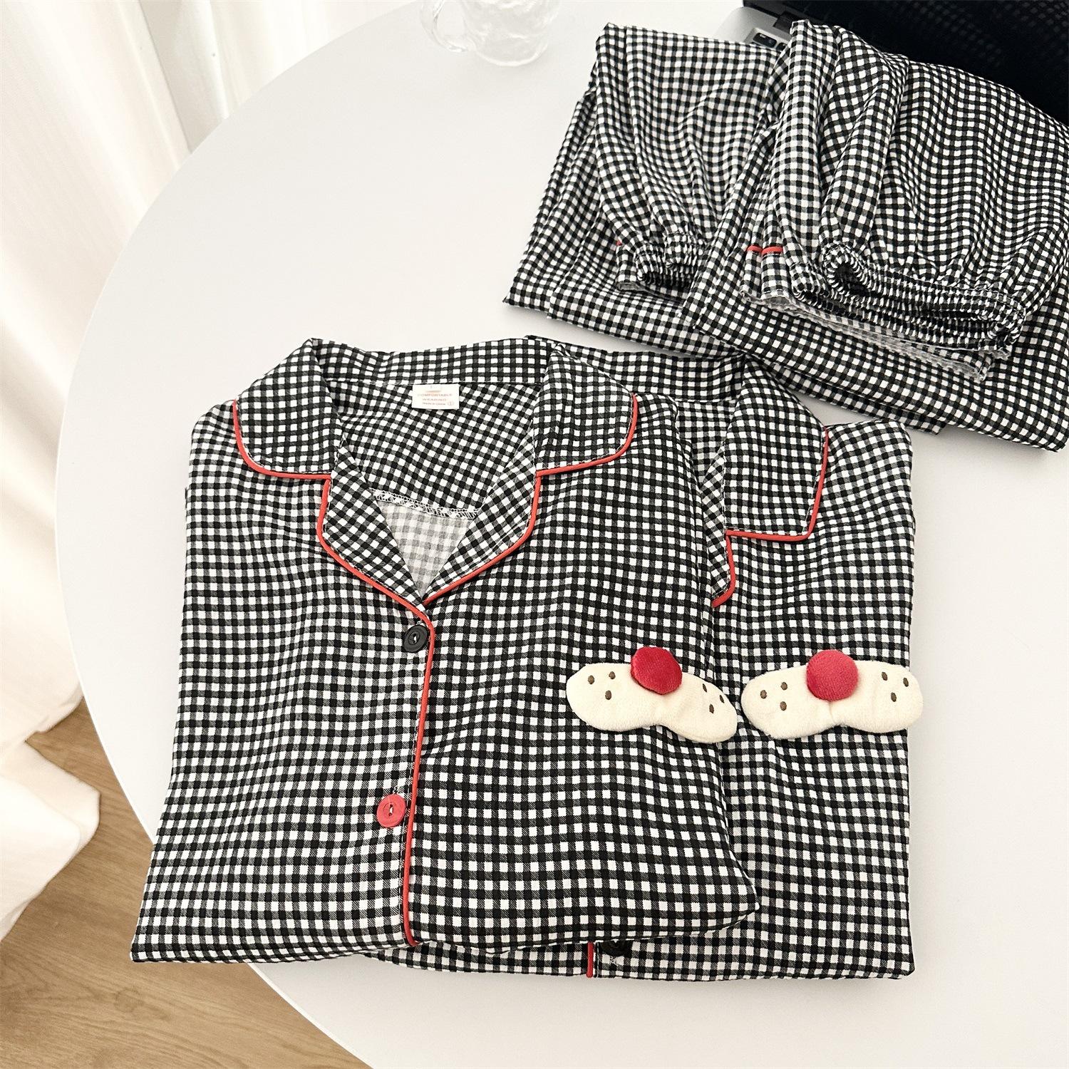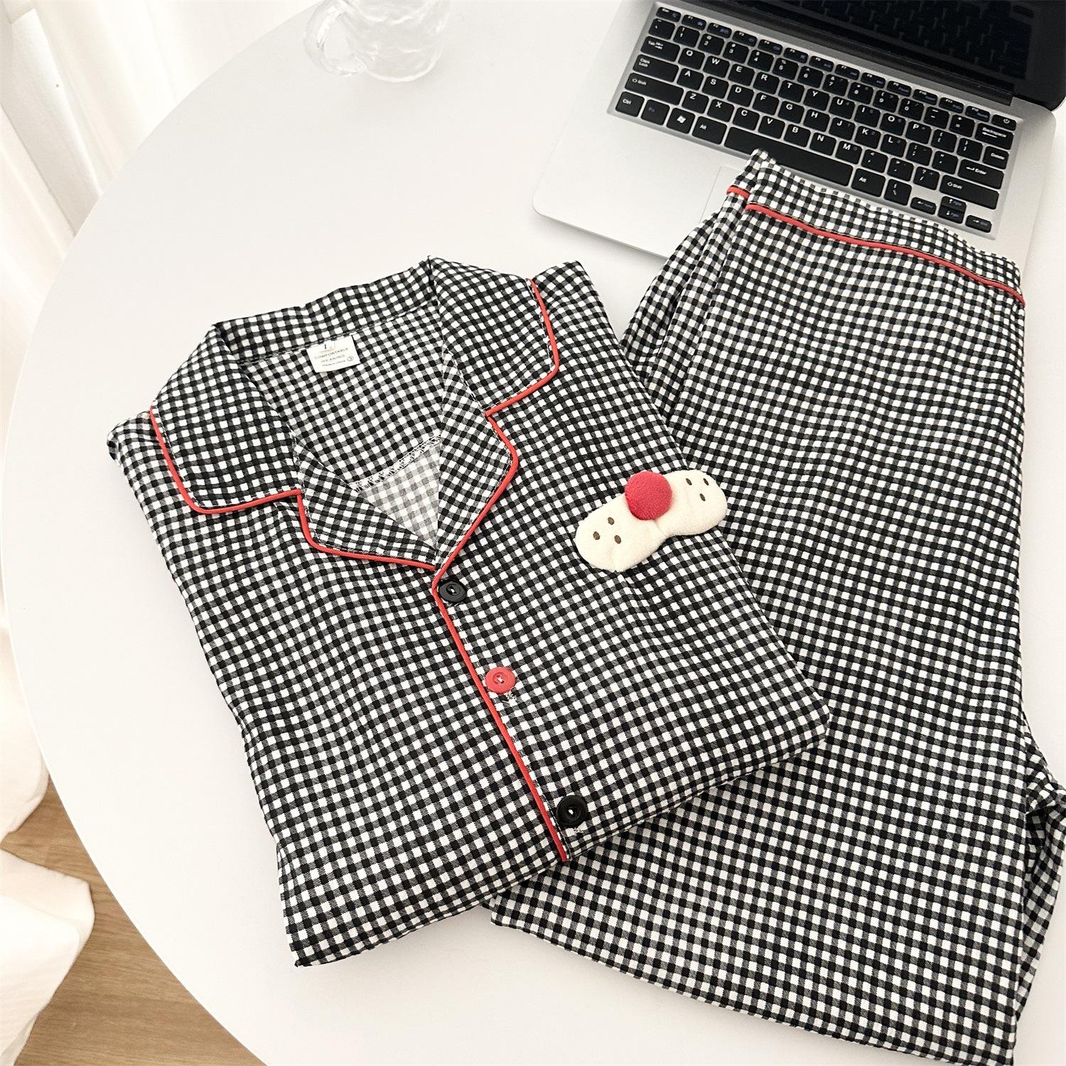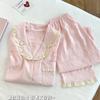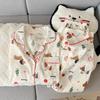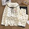 Pijama de Mujer Primavera Otoño Verano Algodón Nube Manga Larga Pantalón Largo Cárdigan Lindo Dibujo Animado Niña Puede Usar Fuera Ropa para el Hogar Set