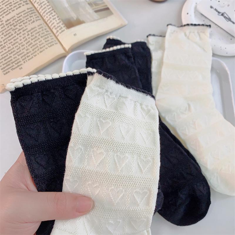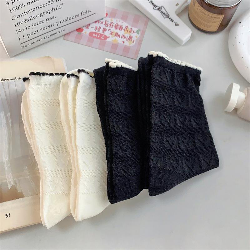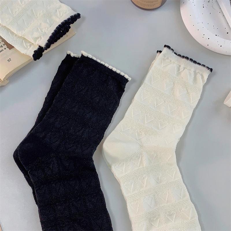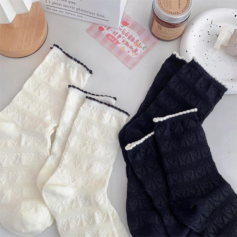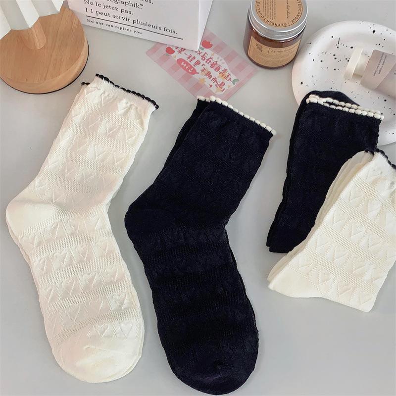 Calcetines de Amor para Mujer Primavera y Otoño Estilo Coreano Media Pantorrilla ins Encaje Japonés jk Calcetines Verano Simple Versátil Argyle Calcetines Largos