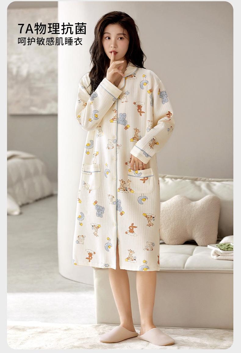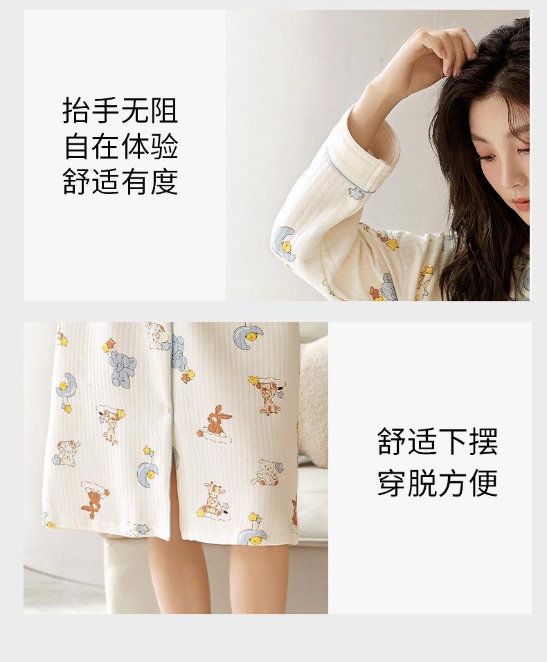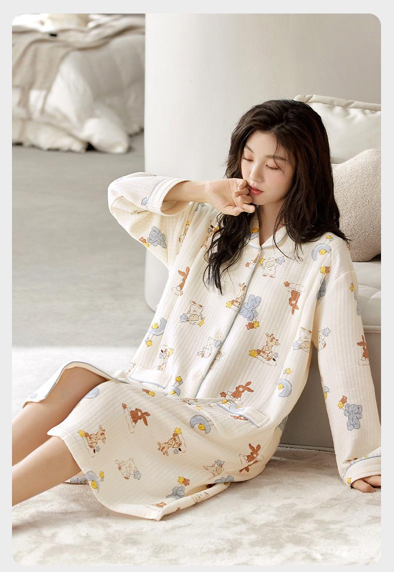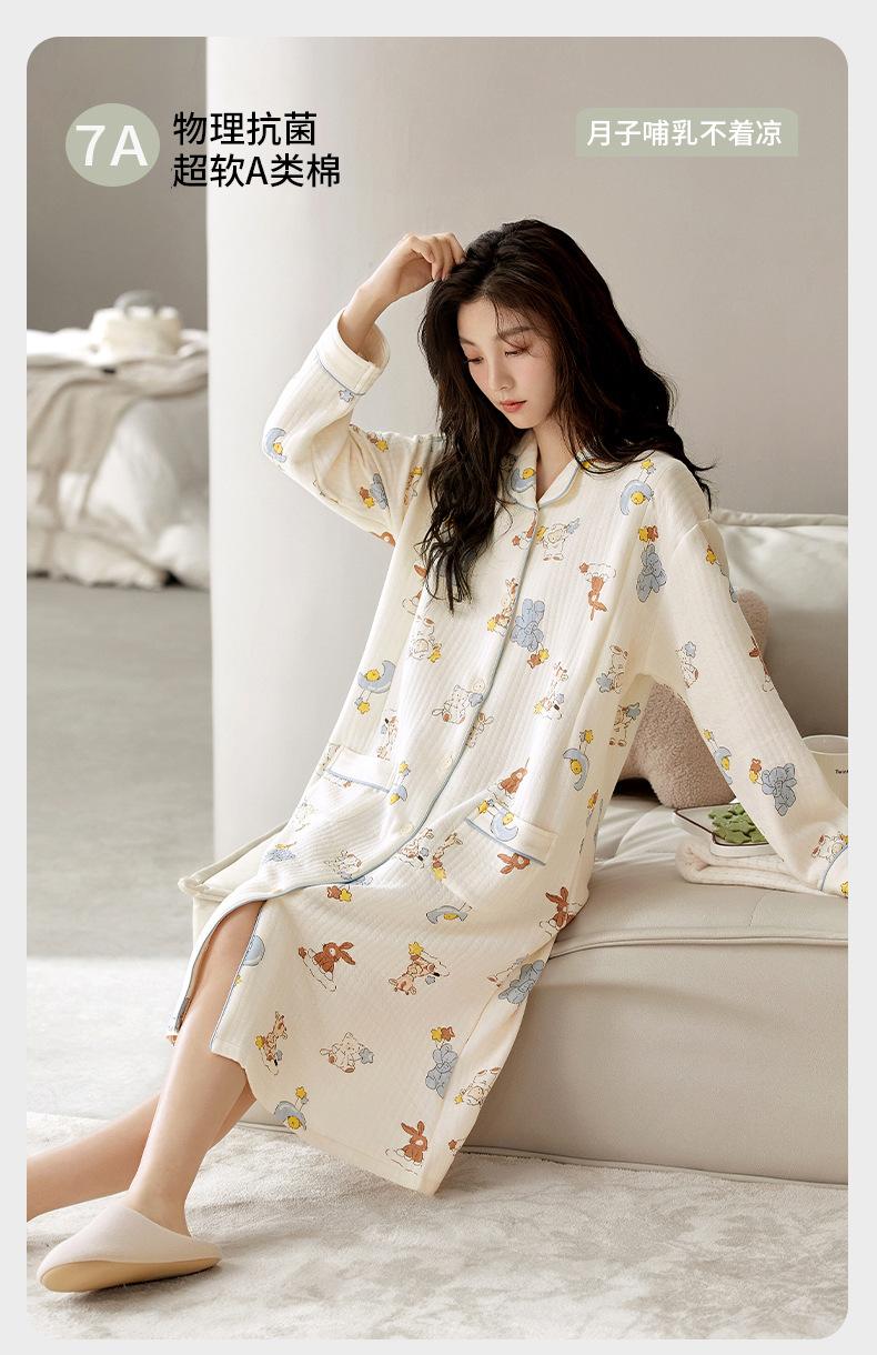 Vestido Largo de Maternidad Happy Moon 7A Antibacterial Algodón Puro Intercapa Algodón Aire Otoño Invierno Grueso Cálido Mujeres Embarazadas Lactancia Trabajo de Parto