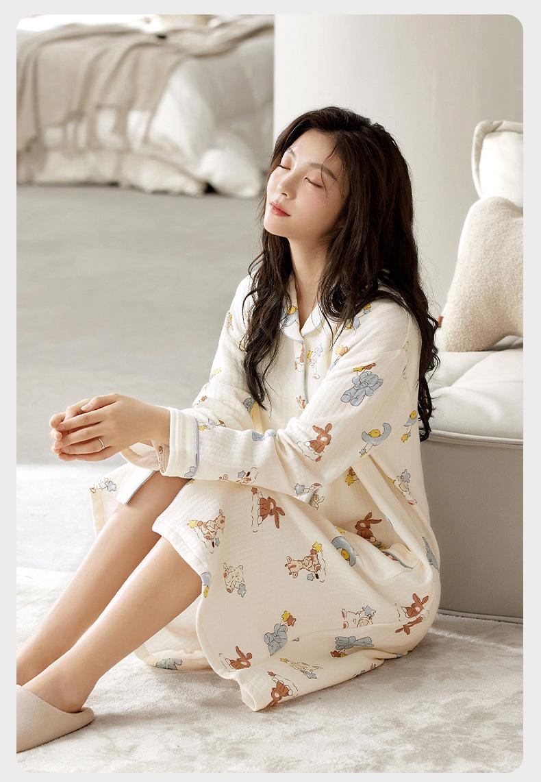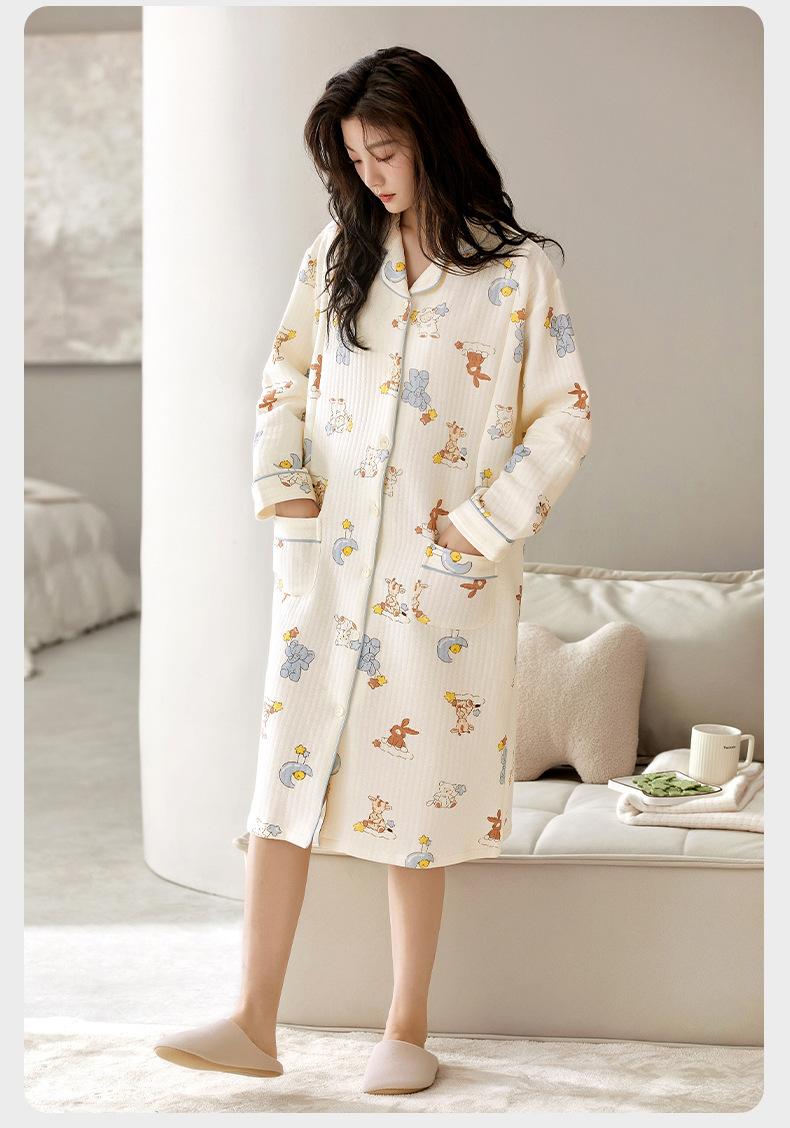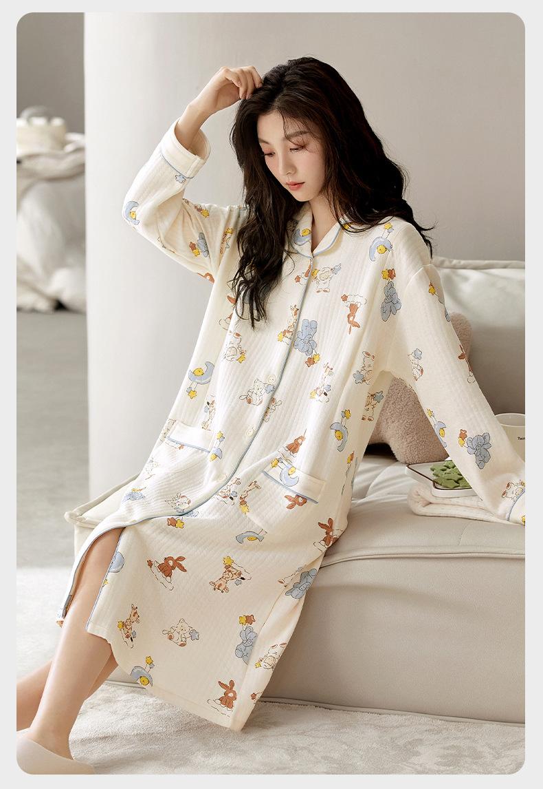 Vestido Largo de Maternidad Happy Moon 7A Antibacterial Algodón Puro Intercapa Algodón Aire Otoño Invierno Grueso Cálido Mujeres Embarazadas Lactancia Trabajo de Parto