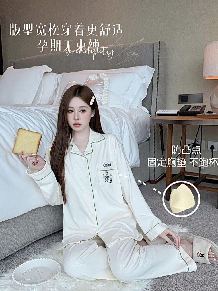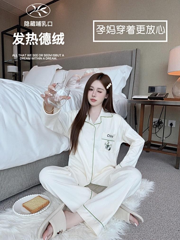 Xi Yue 2025 Otoño/Invierno Nuevo Estilo Delong con Almohadillas para el Busto Ropa de Maternidad Mujeres Embarazadas Preparto Postparto Lactancia Pijama Cálido