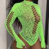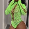 Pedrería hotfix verde manzana lencería sexy sexy jacquard más pedrería bikini ajustado body de manga larga malla tz684