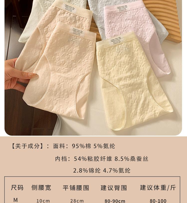 Ropa interior de mujer sin costuras de corte alto 10A seda de morera antibacteriana entrepierna extendida absorbente de humedad transpirable algodón puro calzones de mujer