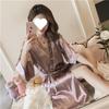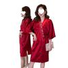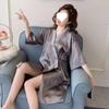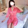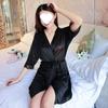 Bata de Seda de Hielo Talla Grande Mujer Verano Sexy Pijama Encaje Primavera Otoño Manga Larga Lazo Bata Señora Bata de Baño de Una Pieza