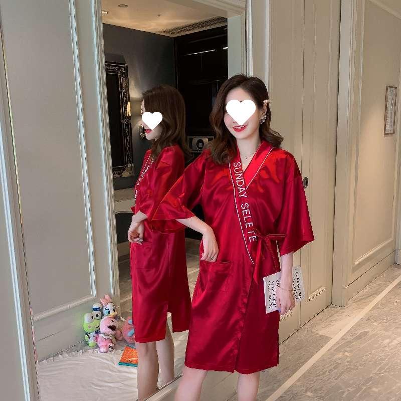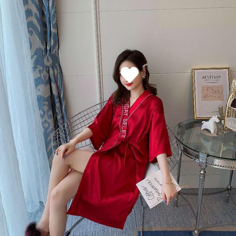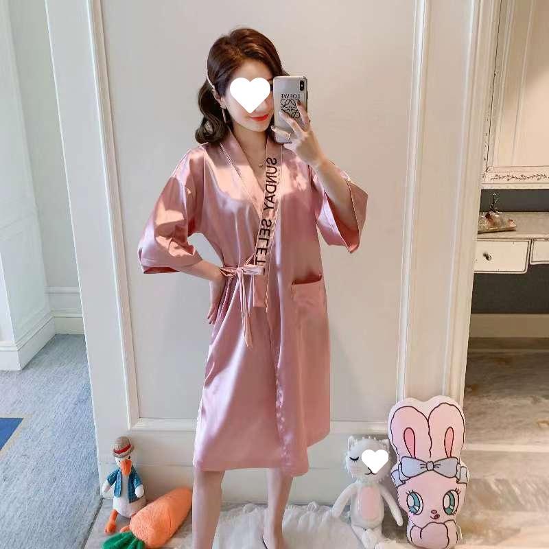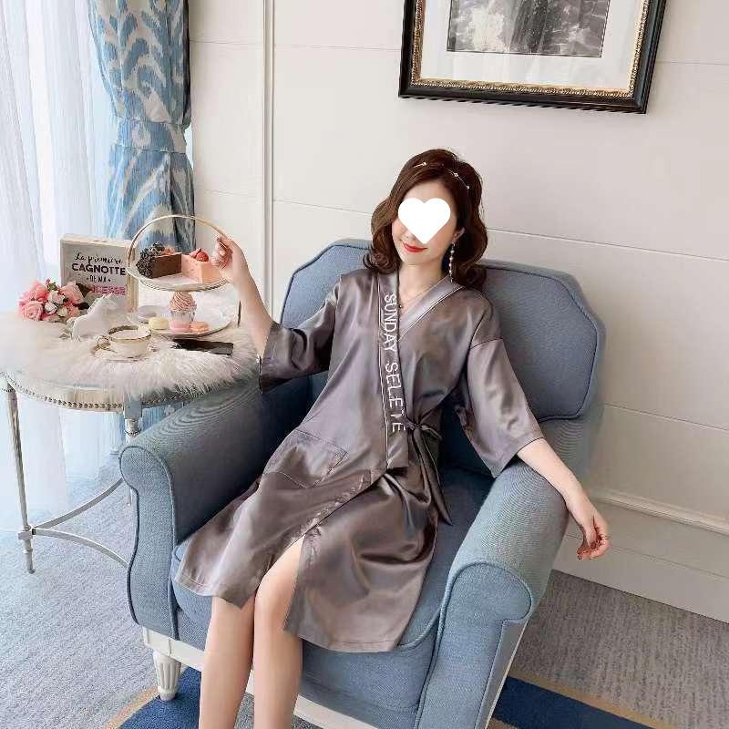 Letter bean paste powder single-piece robe, Letter Grey One-Piece Robe, Letter Champagne Single Piece Robe, Le...