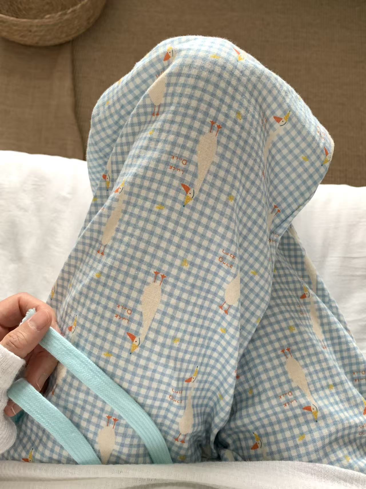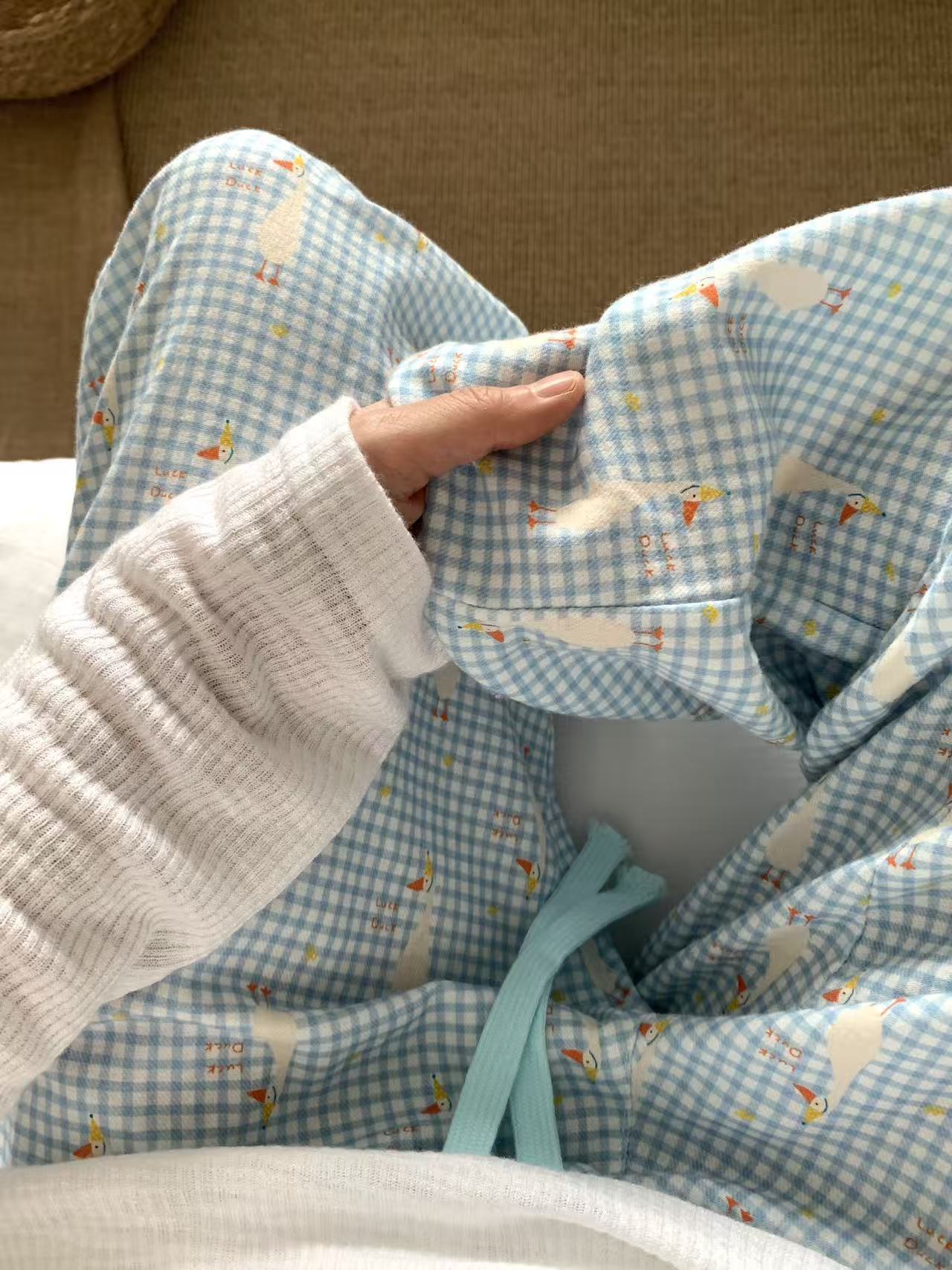 ¡Nuevo! Pantalones de Dormir de Franela de Algodón con Estampado de Cuadros Azules de Pato con Cordón Ajustable, Lindos, Holgados, Cómodos, Pantalones Largos, Pantalones para Casa