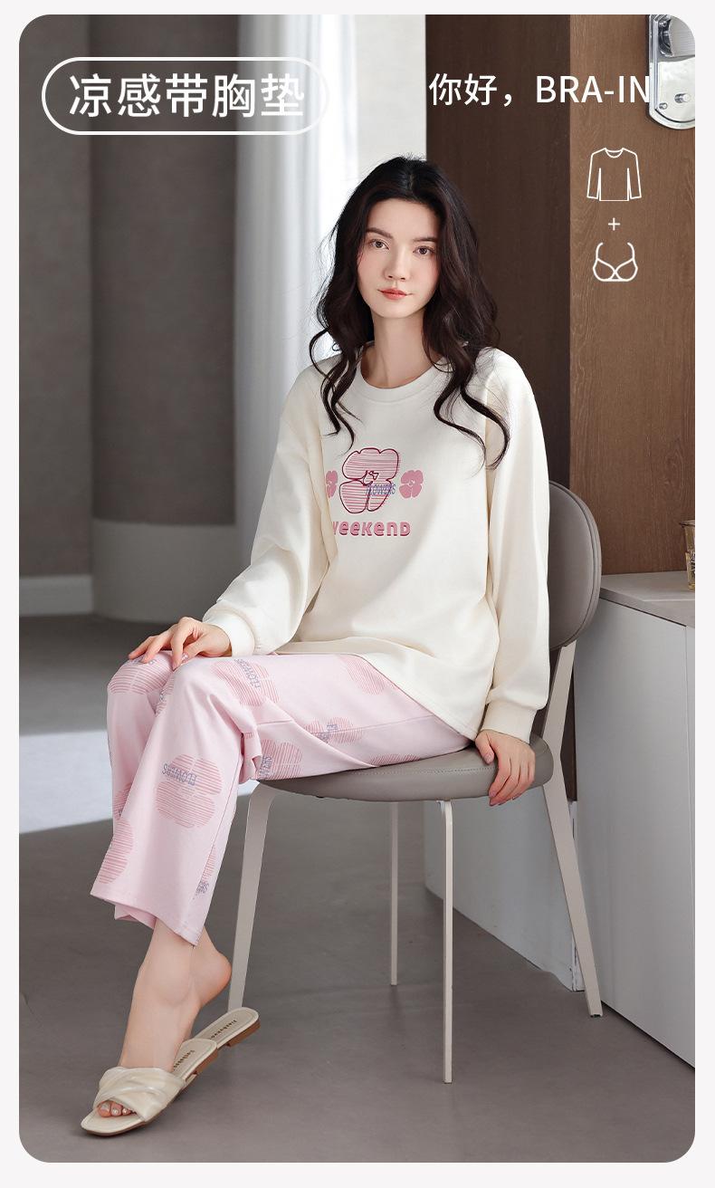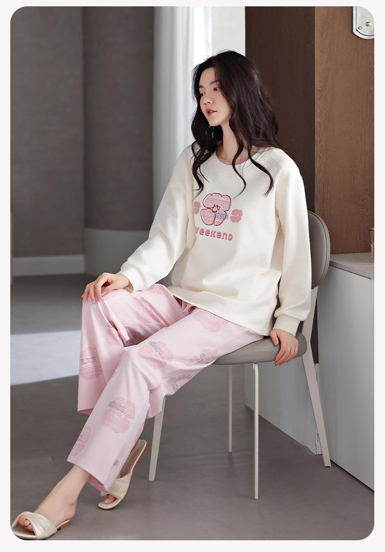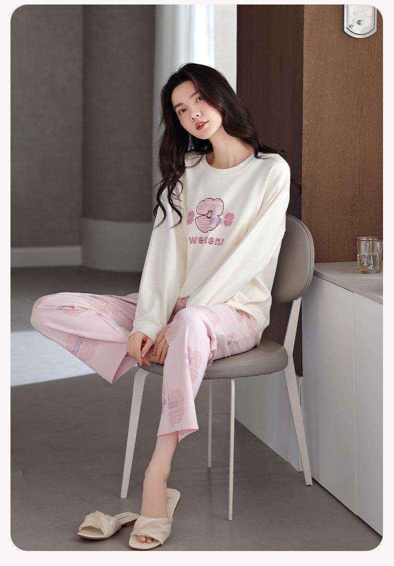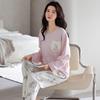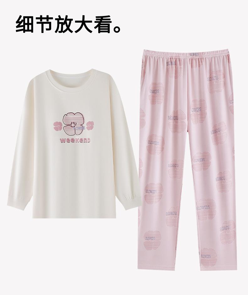 Pijama de Algodón Puro de Estilo Nuevo de Primavera y Otoño 2025 para Mujer Cómodo de Algodón Redondo Holgado Ropa para el Hogar Conjunto Casual