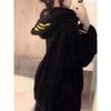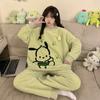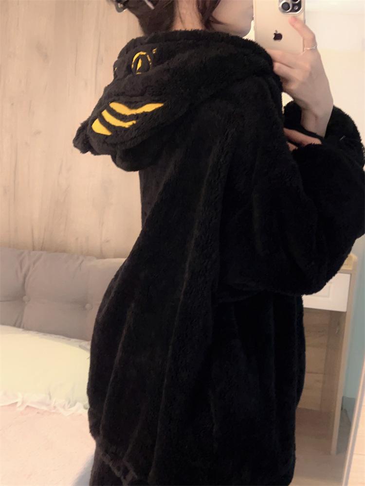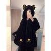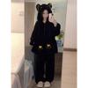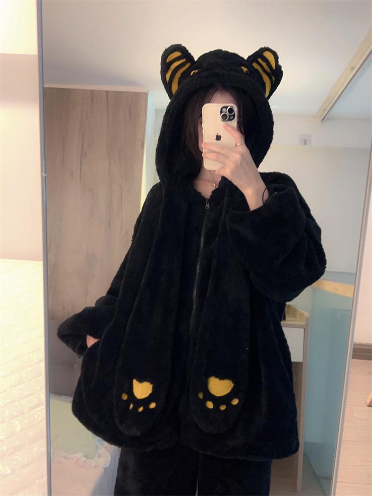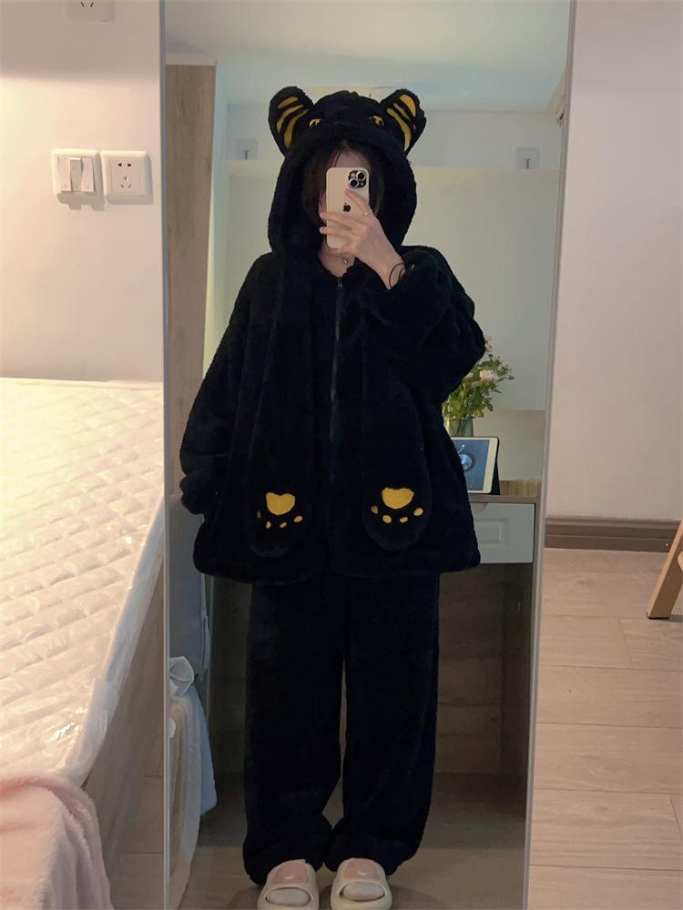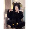 Pijama de Felpa Coral Negra de Alta Calidad con Capucha de Dibujos Animados para Mujer Invierno Nuevo Grueso Felpa Traje para el Hogar Ropa Exterior