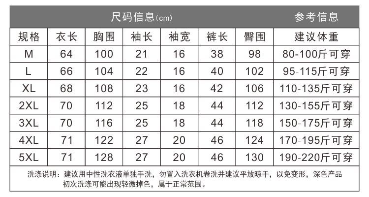 M (altura recomendada 150-158, peso recomendado 80-100 catties)