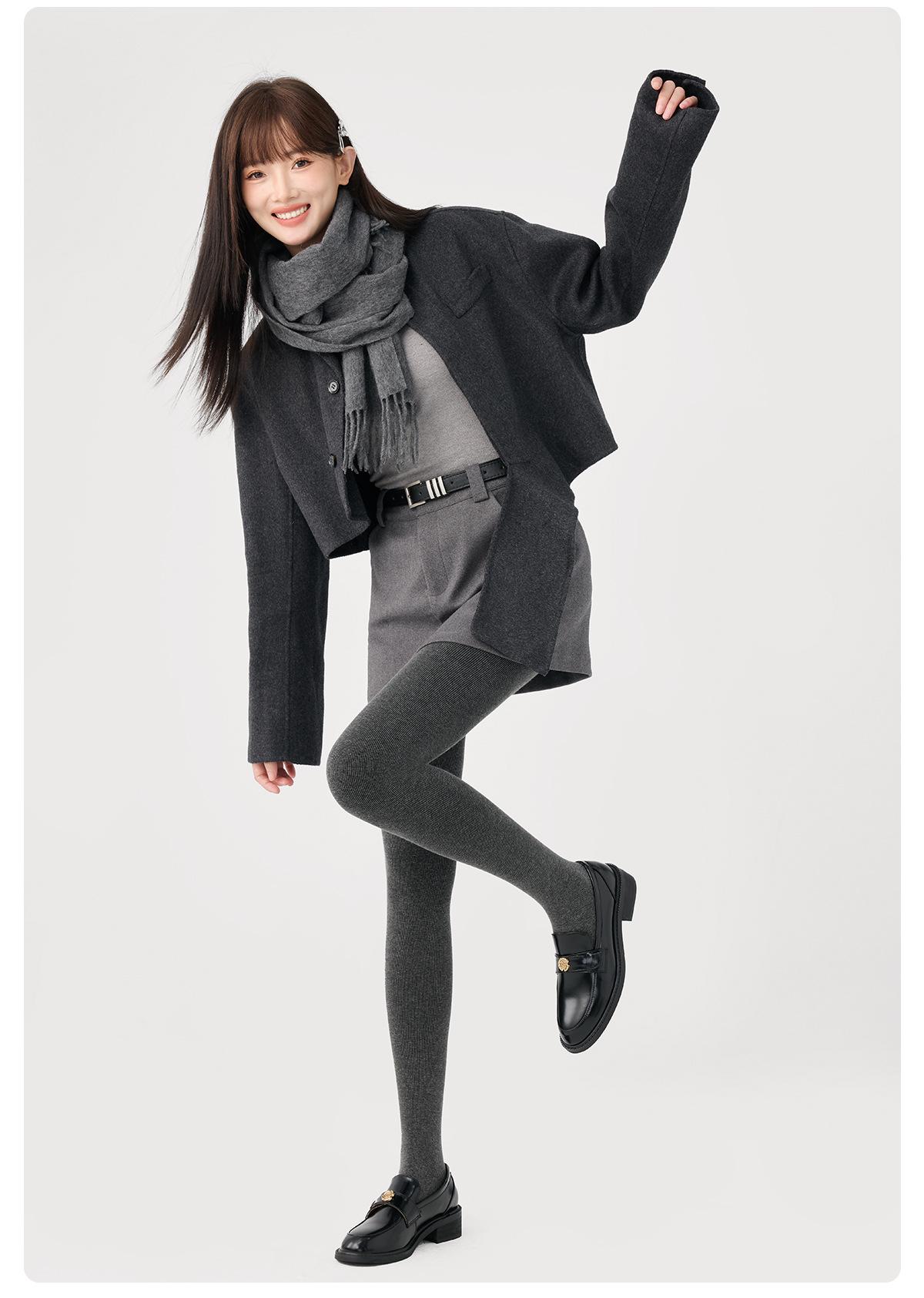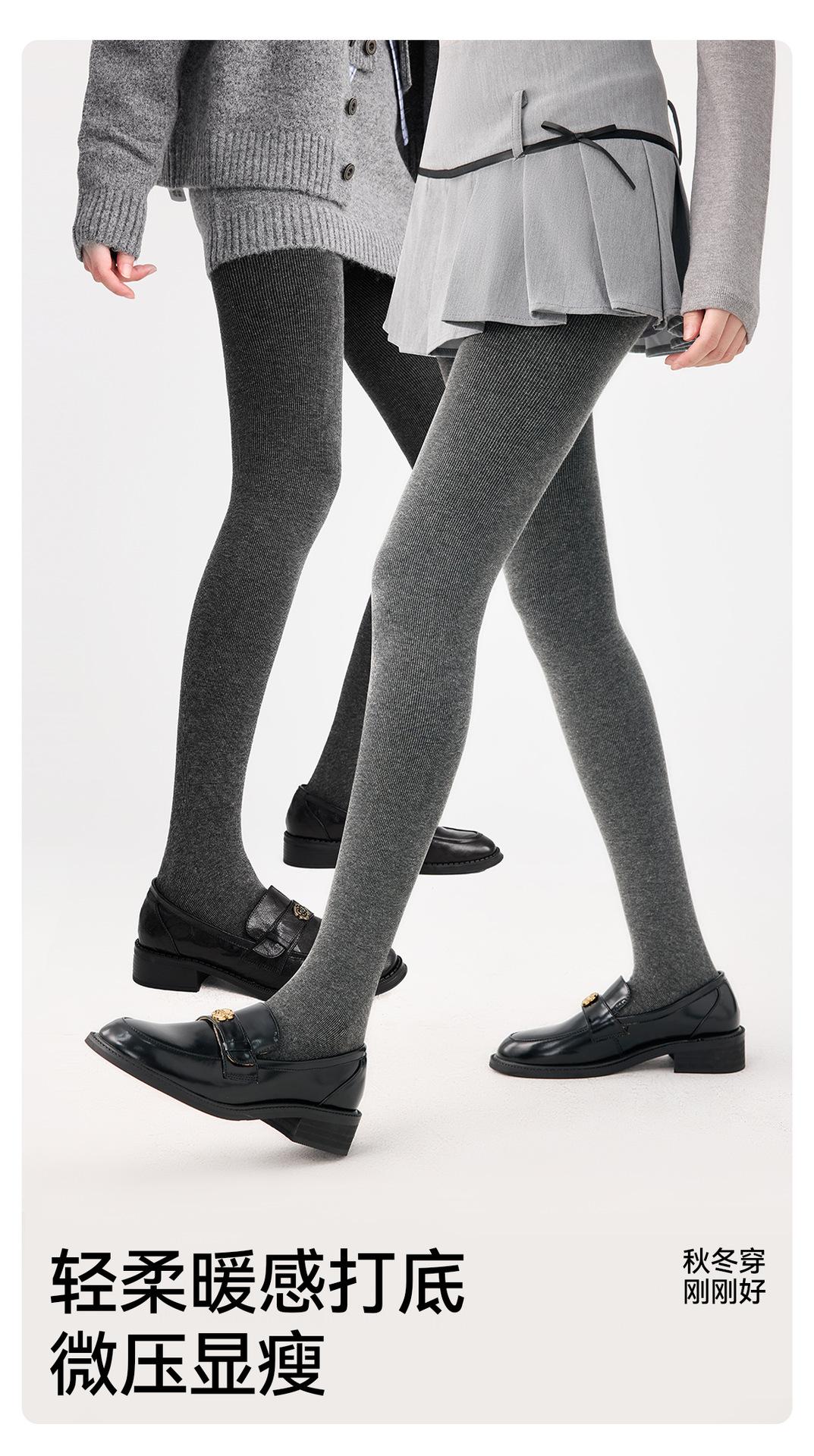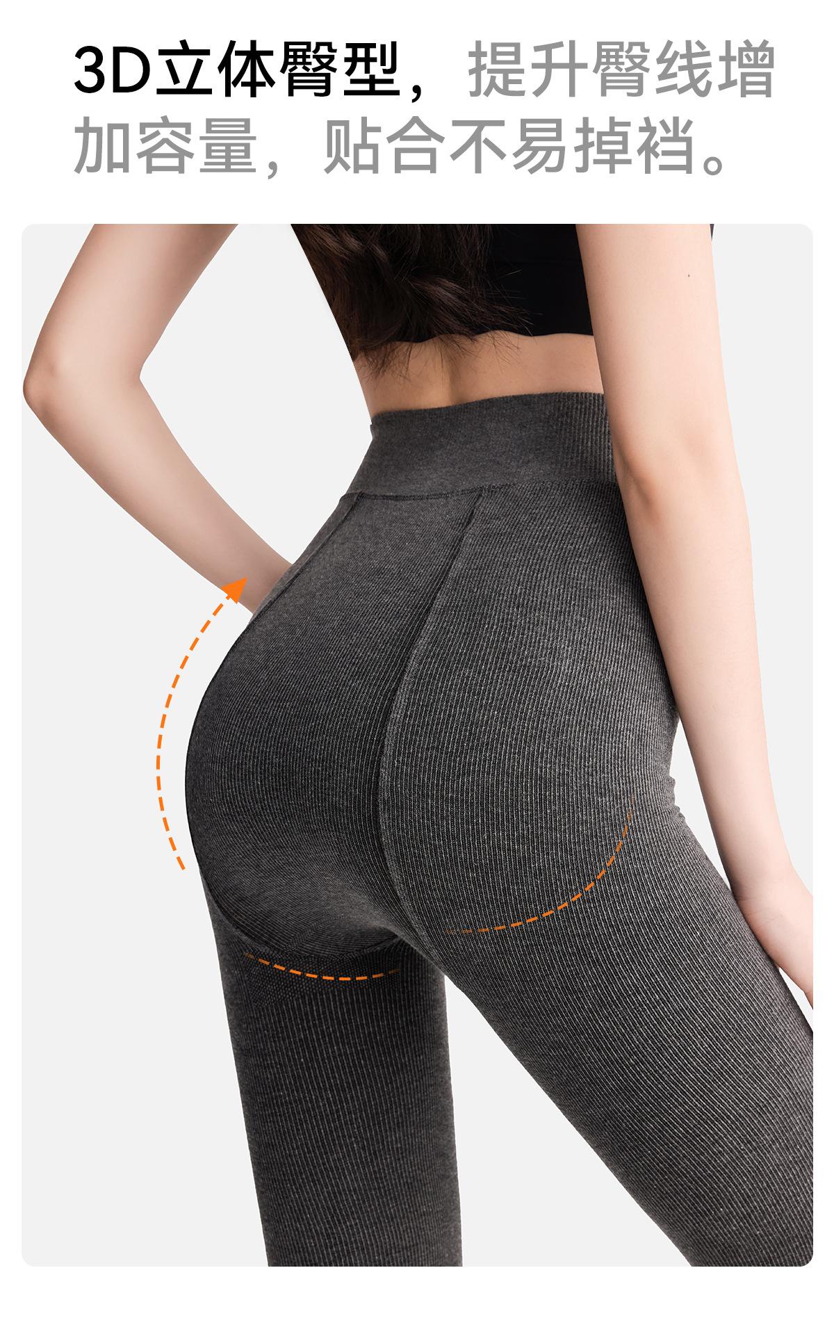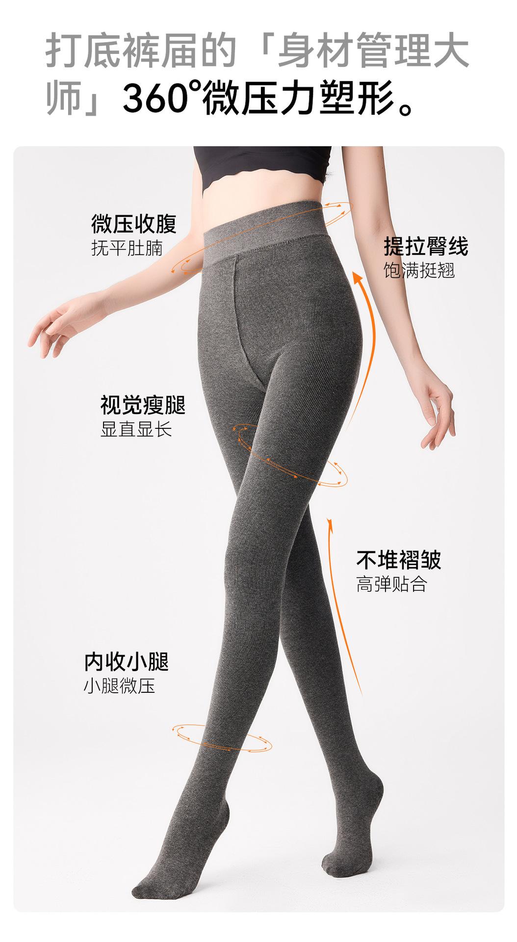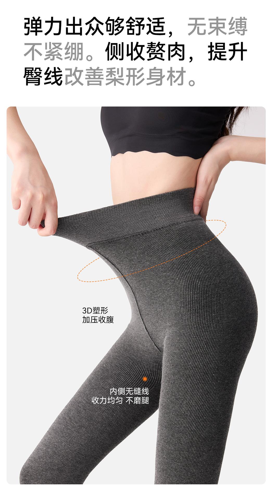 Leggings base grises para mujer otoño e invierno de rayas verticales adelgazantes pantimedias de una pieza plus terciopelo plus algodón grueso de rayas verticales leggings base