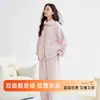 Pijamas de Terciopelo Coral de Otoño e Invierno para Mujer Conjunto para el Hogar Color Puro Engrosado Cálido Pareja Pijamas de Otoño e Invierno Forrados de Lana