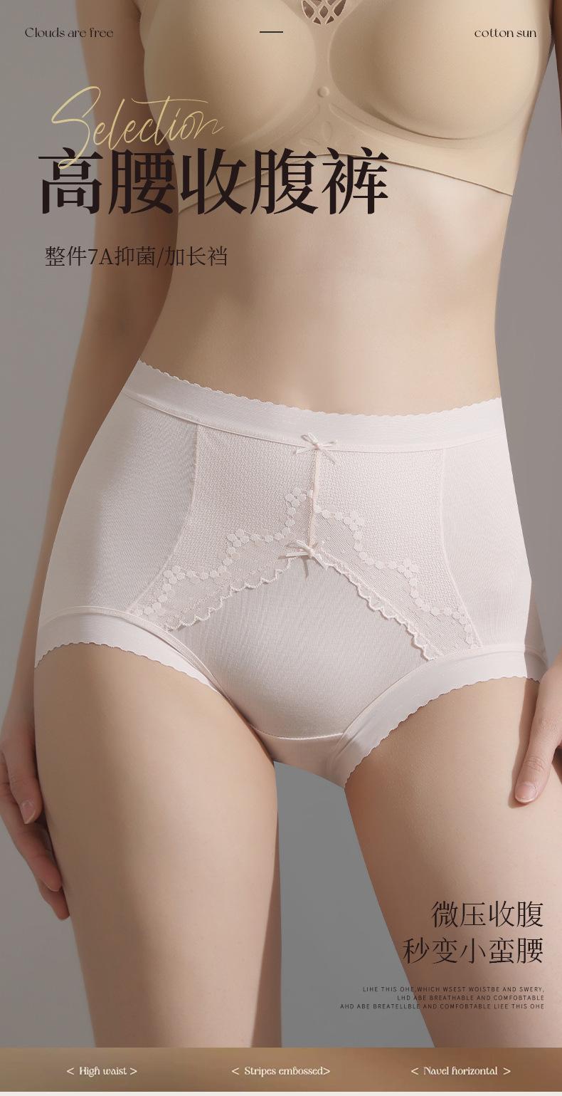 Braguitas para Mujer Entrepierna Extendida Cintura Alta Control de Abdomen Talla Grande Hipster Encaje Triángulo Braguitas Finas Transpirables Sin Costuras 7A Antibacterianas Primavera Verano