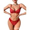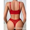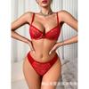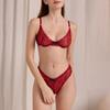 Lencería Europea y Americana Hebilla Delantera Encaje Rojo Brillante Clásico Calado Hermoso Set de Brasier de Espalda Seductor para Mujer 25030