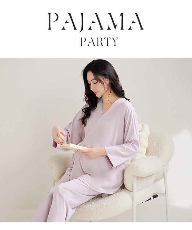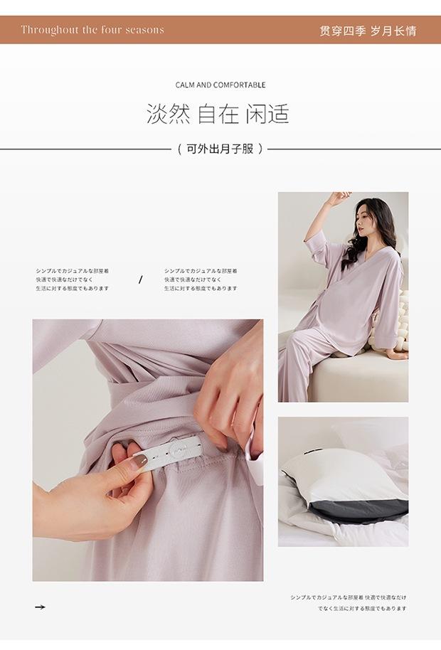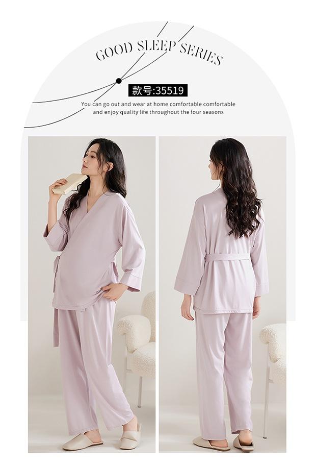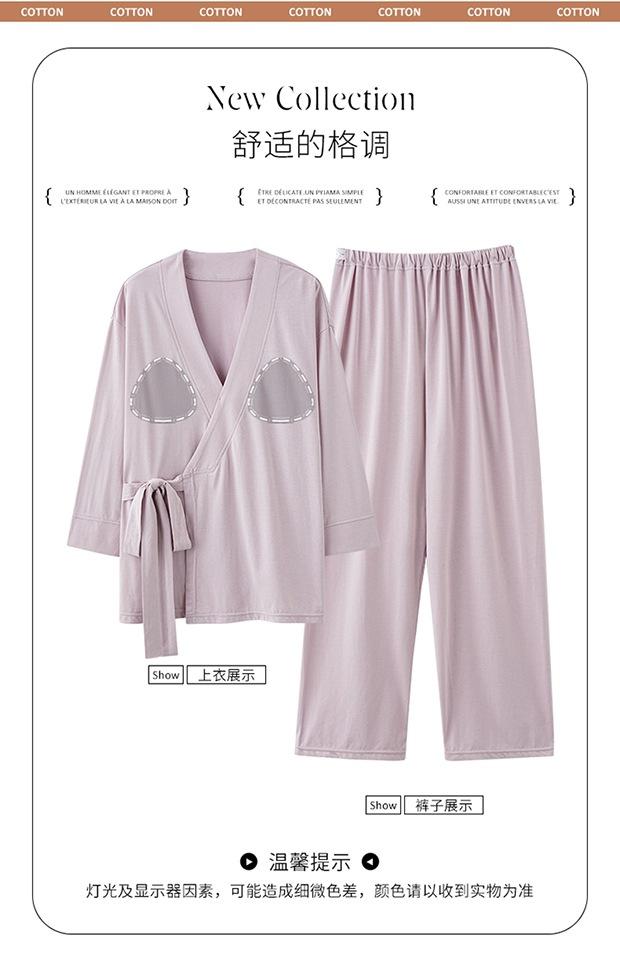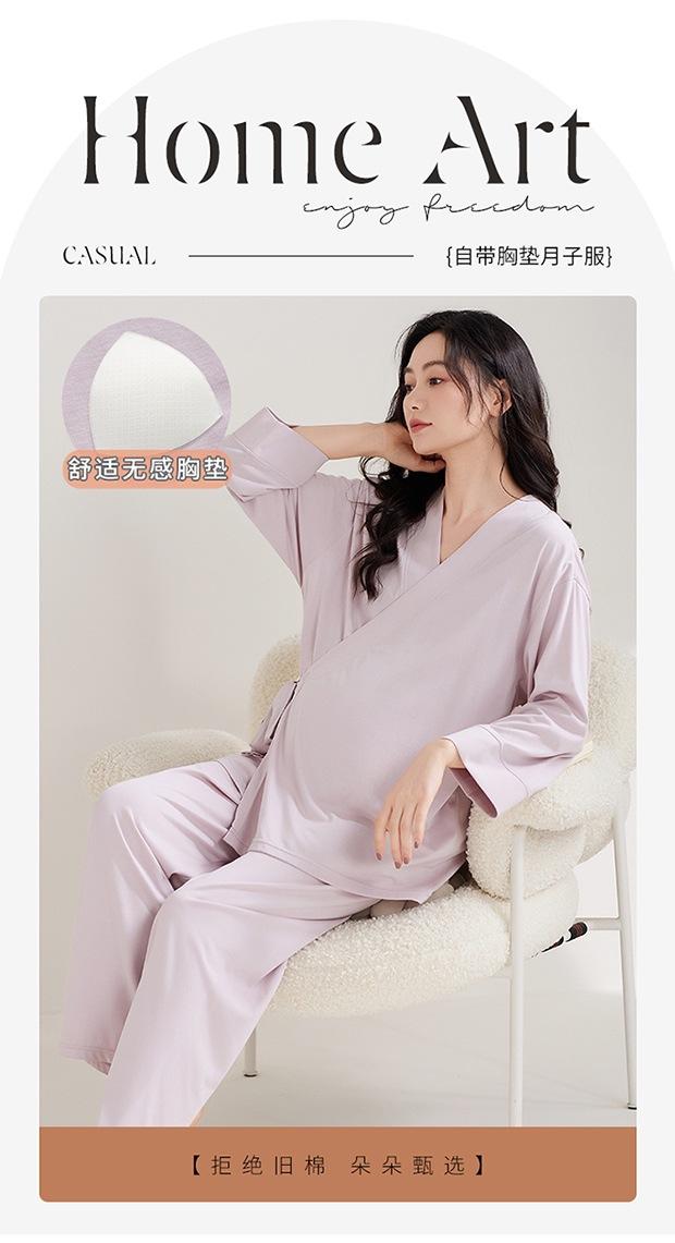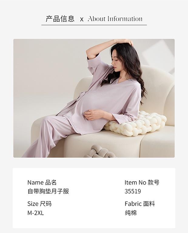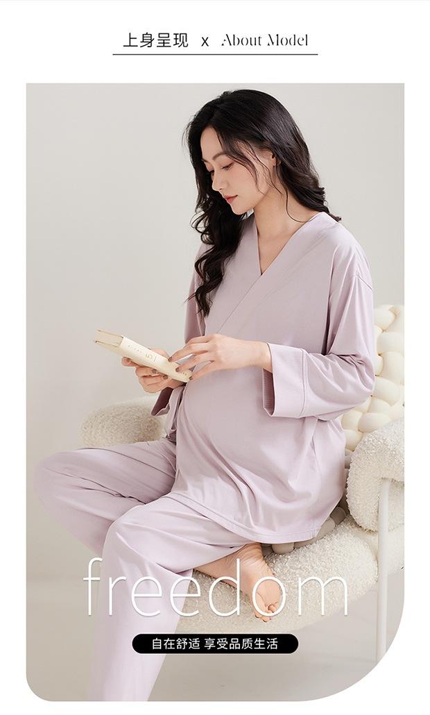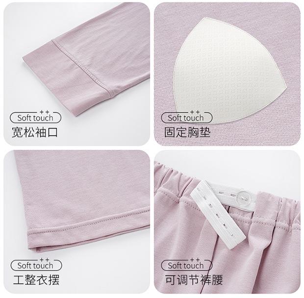 Color Sólido Venta al por Mayor En Stock con Almohadillas para el Busto 6535 Algodón Ropa de Maternidad Pijamas Mujeres Primavera Otoño Mujeres Embarazadas Ropa para Amamantar Alimentación Conjunto de Dos Piezas
