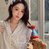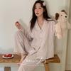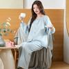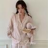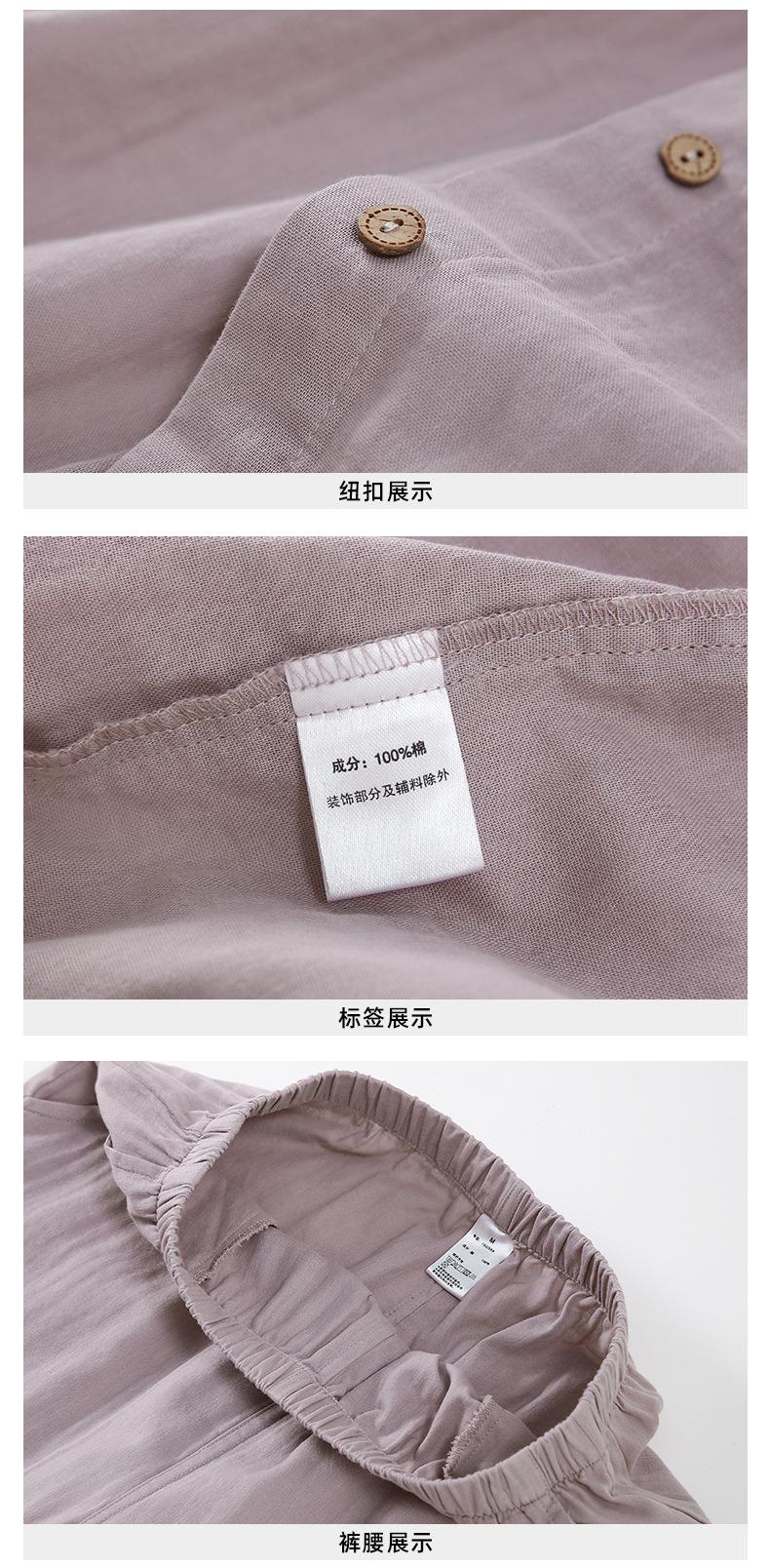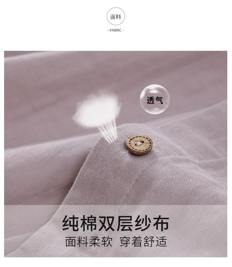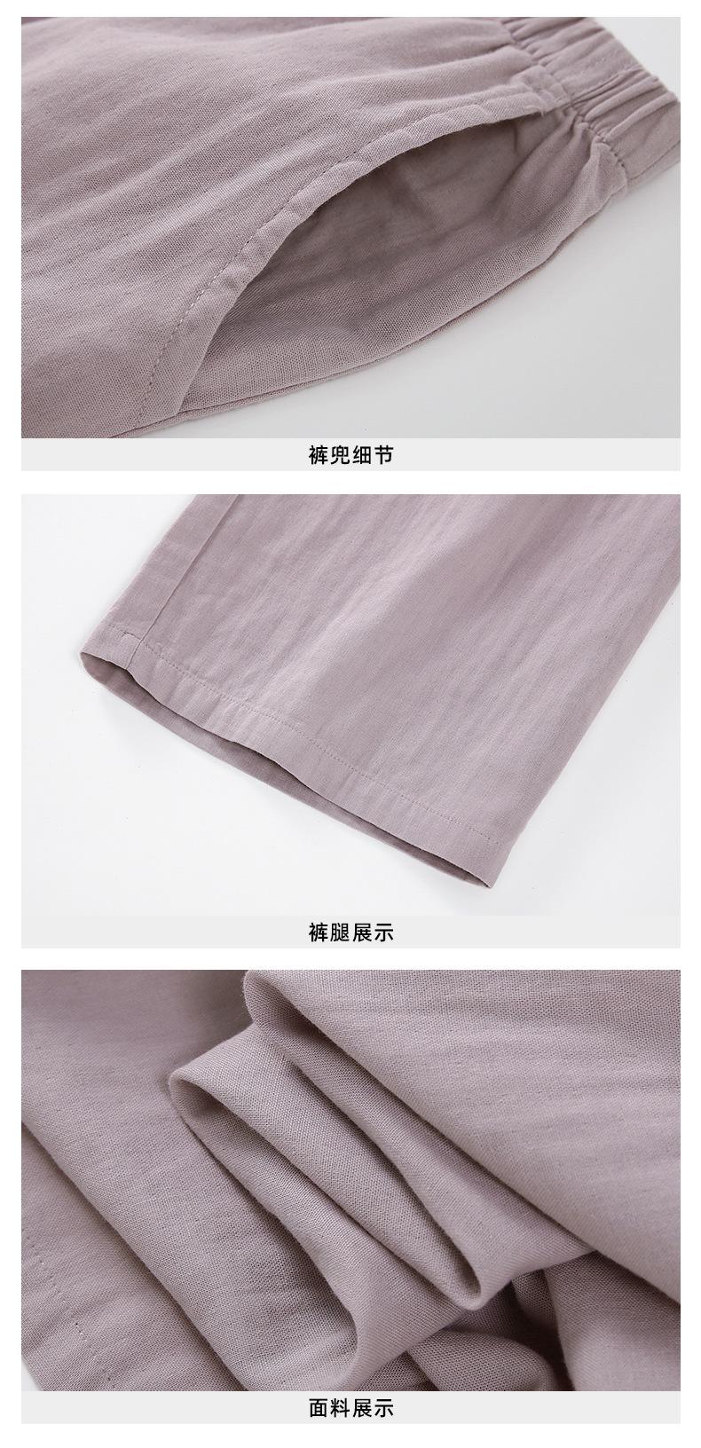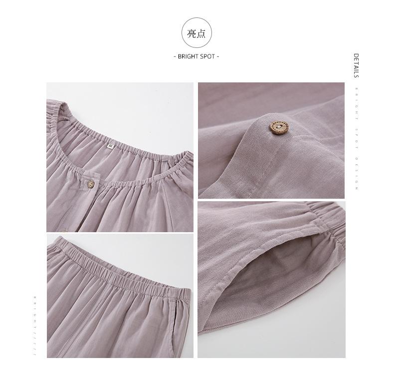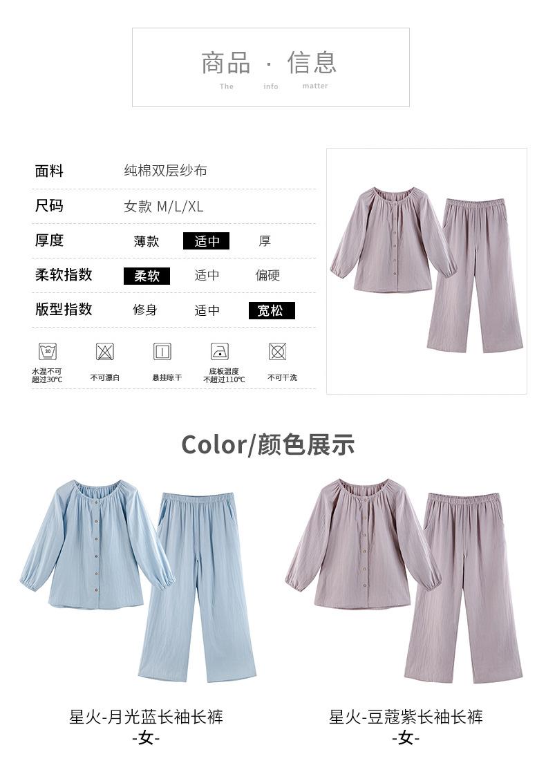 Pijama de Gasa de Doble Capa de Algodón Puro para Mujer, Estilo Delgado de Primavera Otoño, Color Sólido, Cuello Redondo, Manga Larga, Pantalón Largo, Conjunto Holgado para Estar en Casa