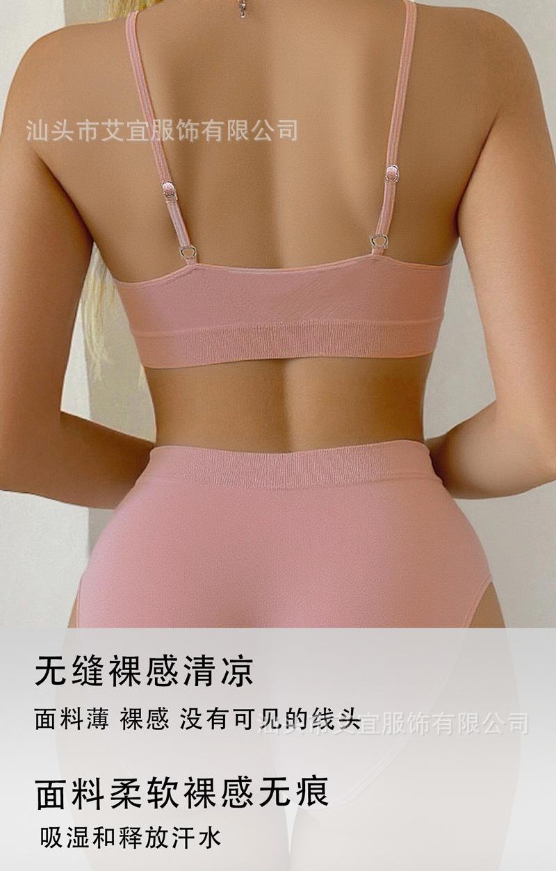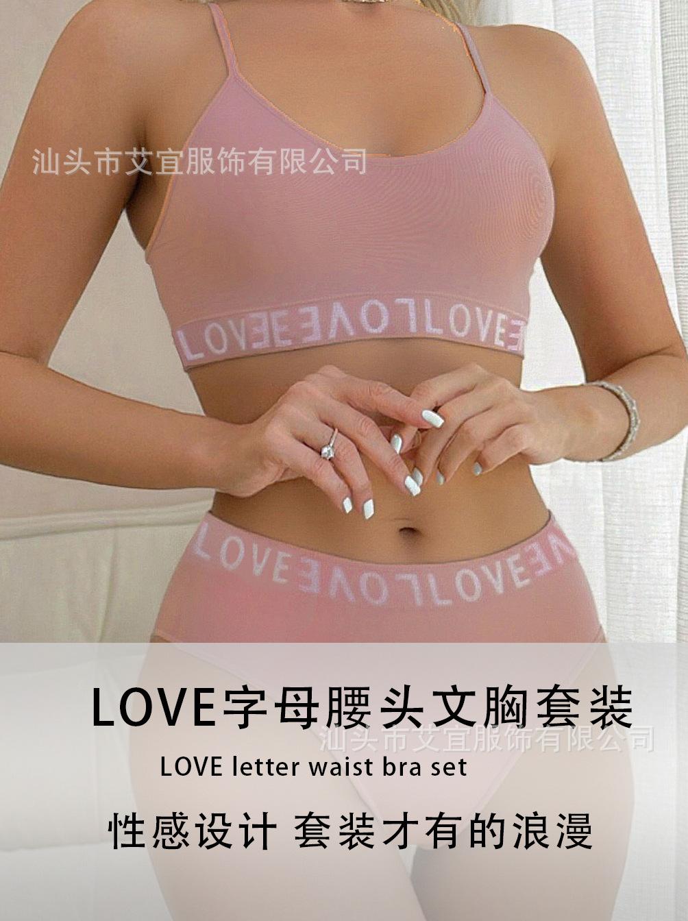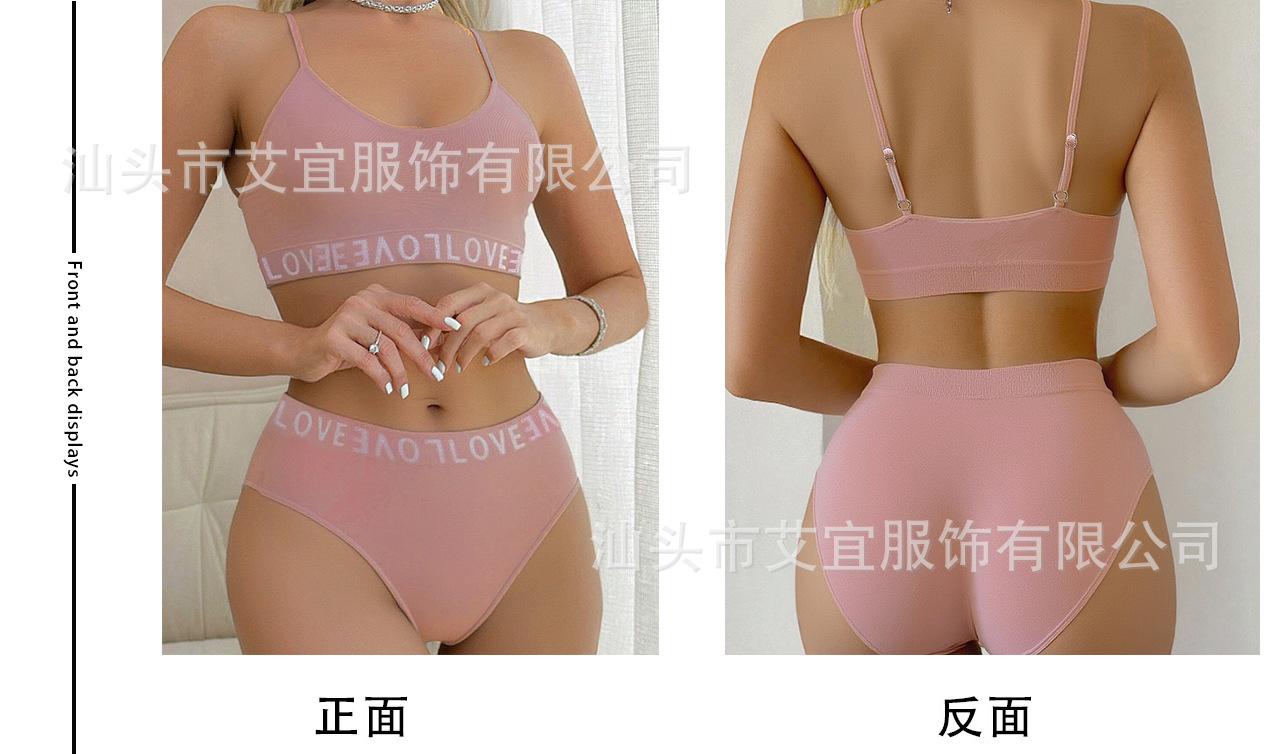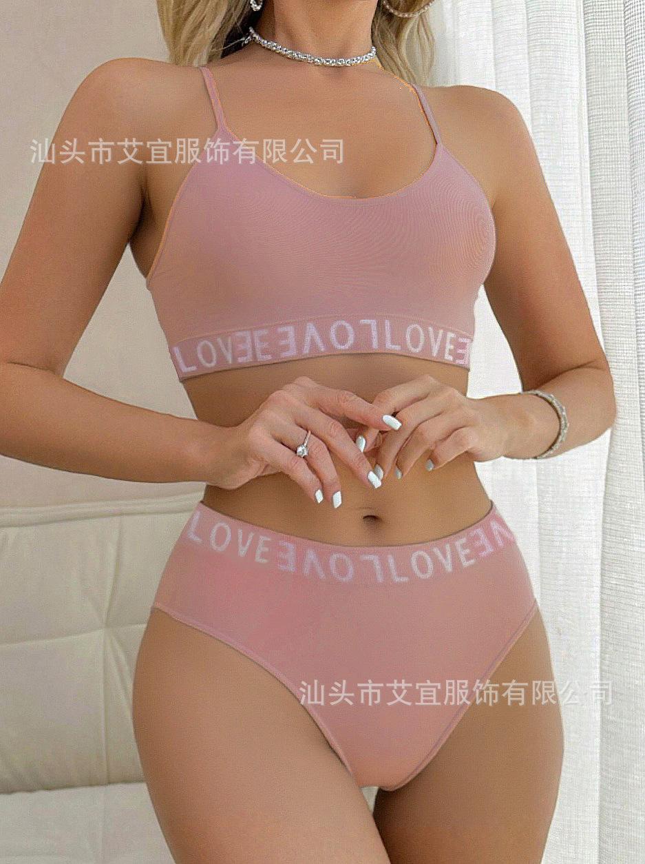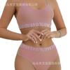 Conjunto de Ropa Interior Deportiva sin Costuras de Letras de Venta Caliente Transfronterizo Europeo y Americano Capa Base Cómodo Transpirable con Almohadillas en el Pecho Sostén Bragas Mujer