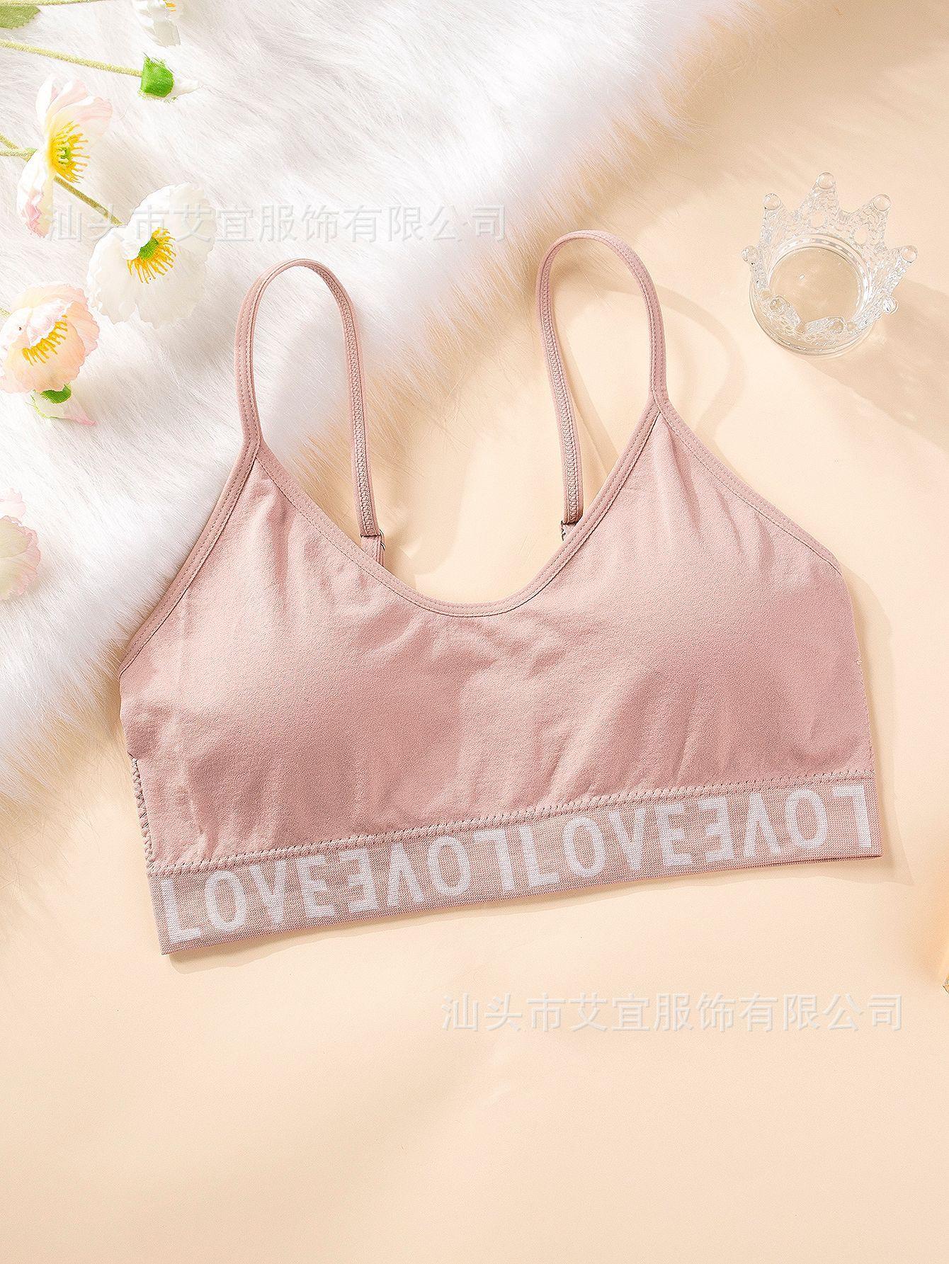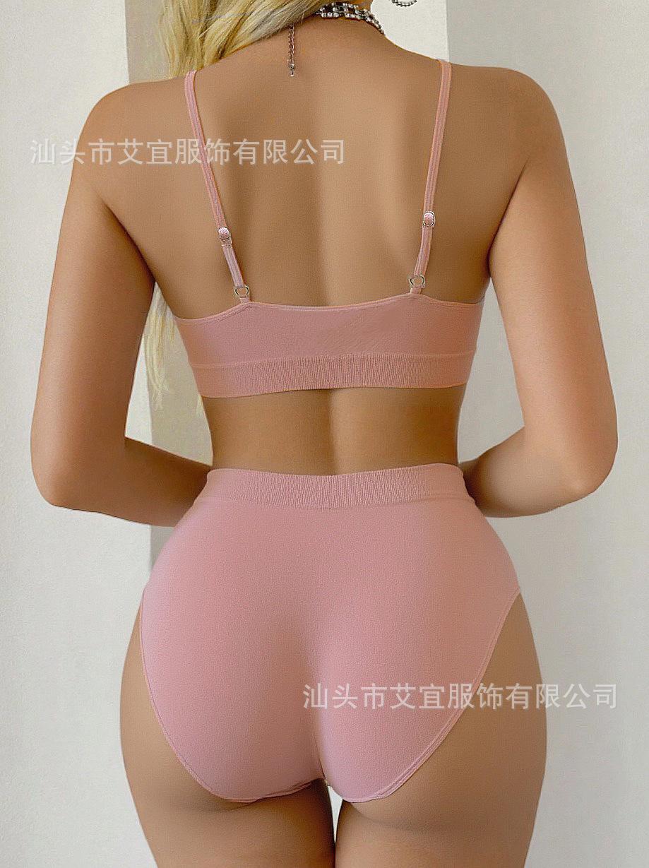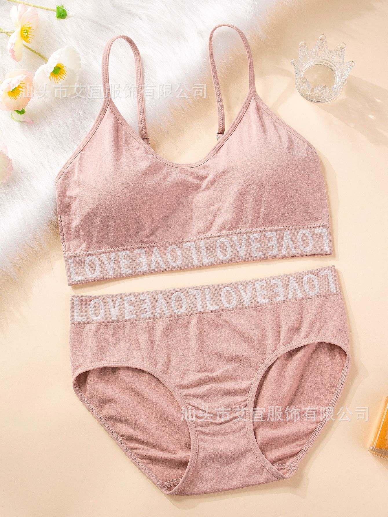 Conjunto de Ropa Interior Deportiva sin Costuras de Letras de Venta Caliente Transfronterizo Europeo y Americano Capa Base Cómodo Transpirable con Almohadillas en el Pecho Sostén Bragas Mujer