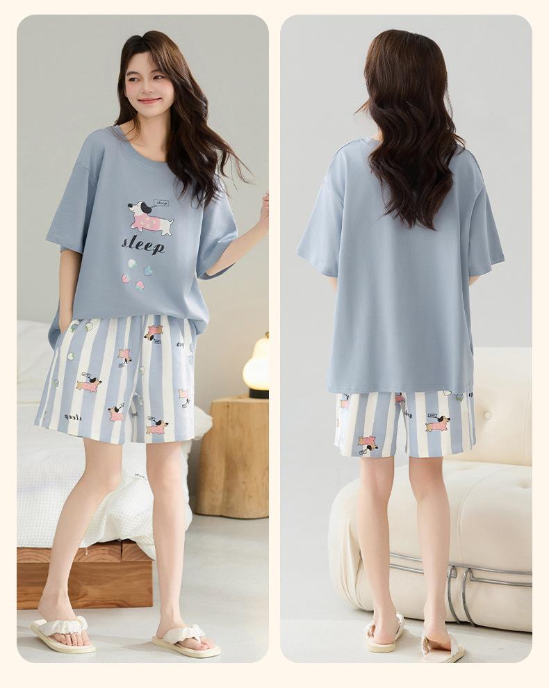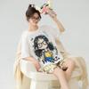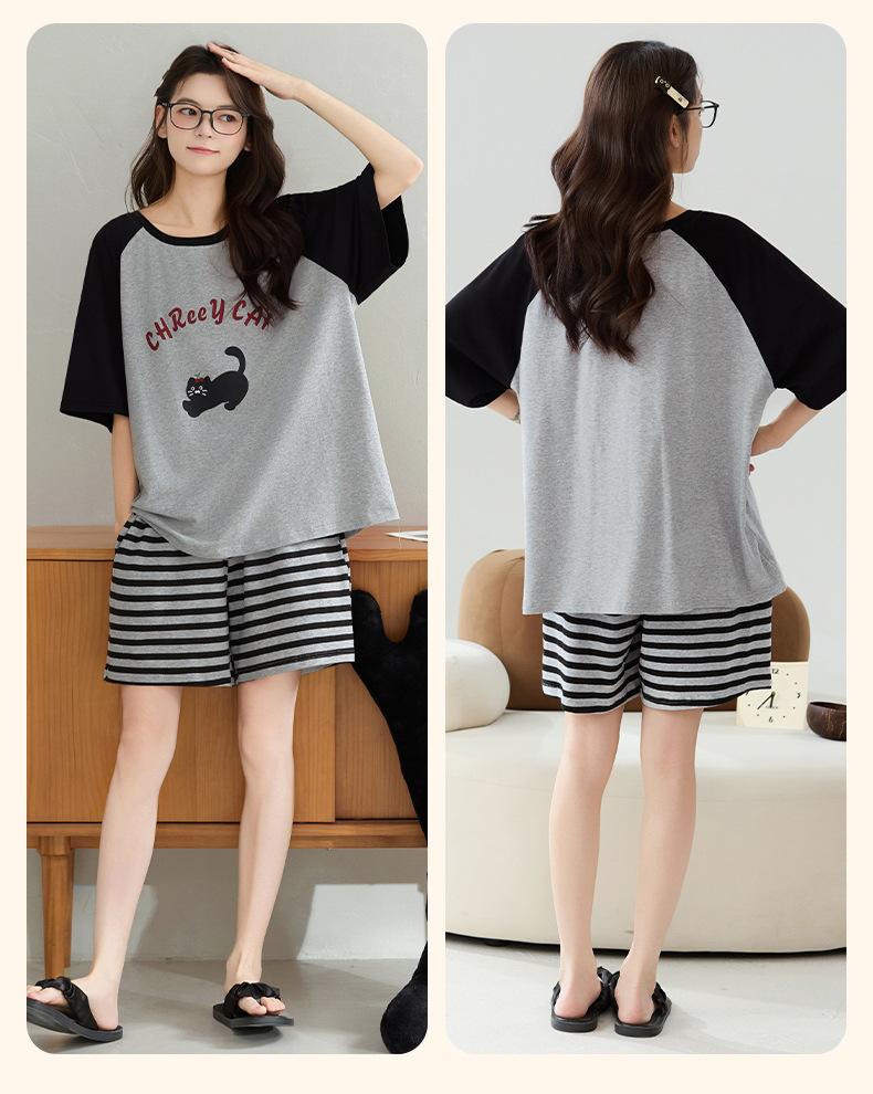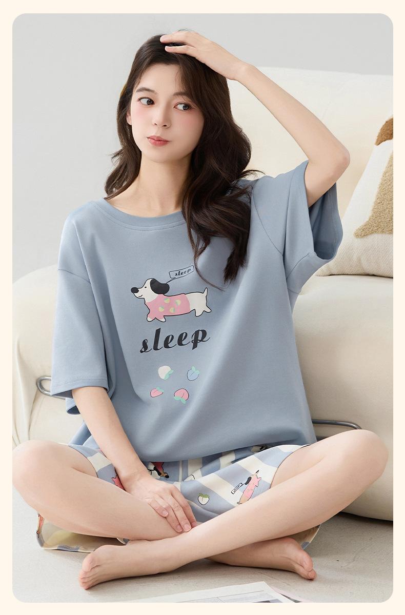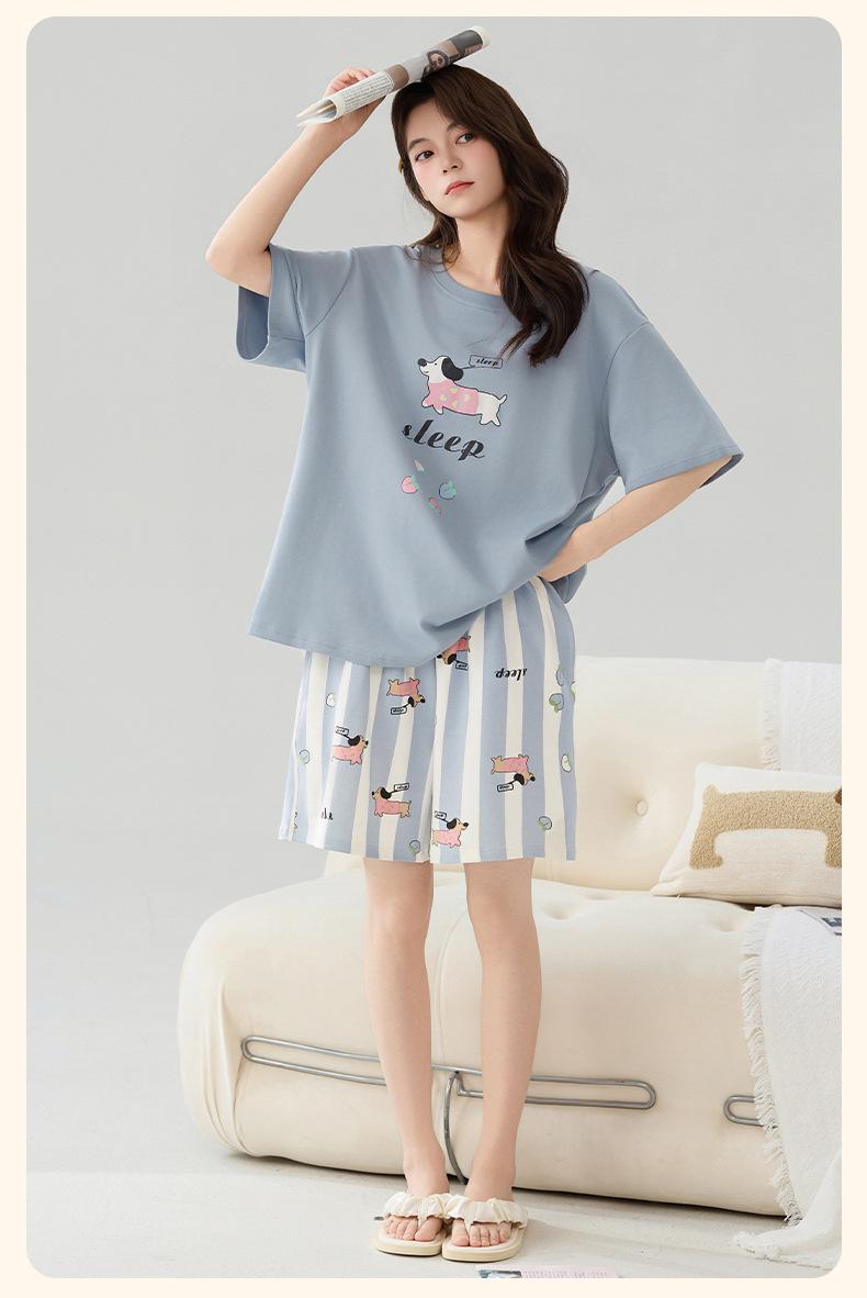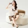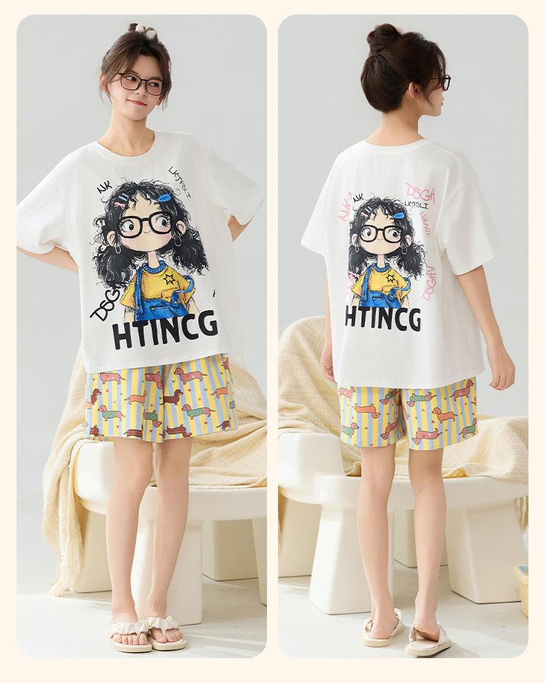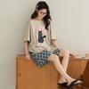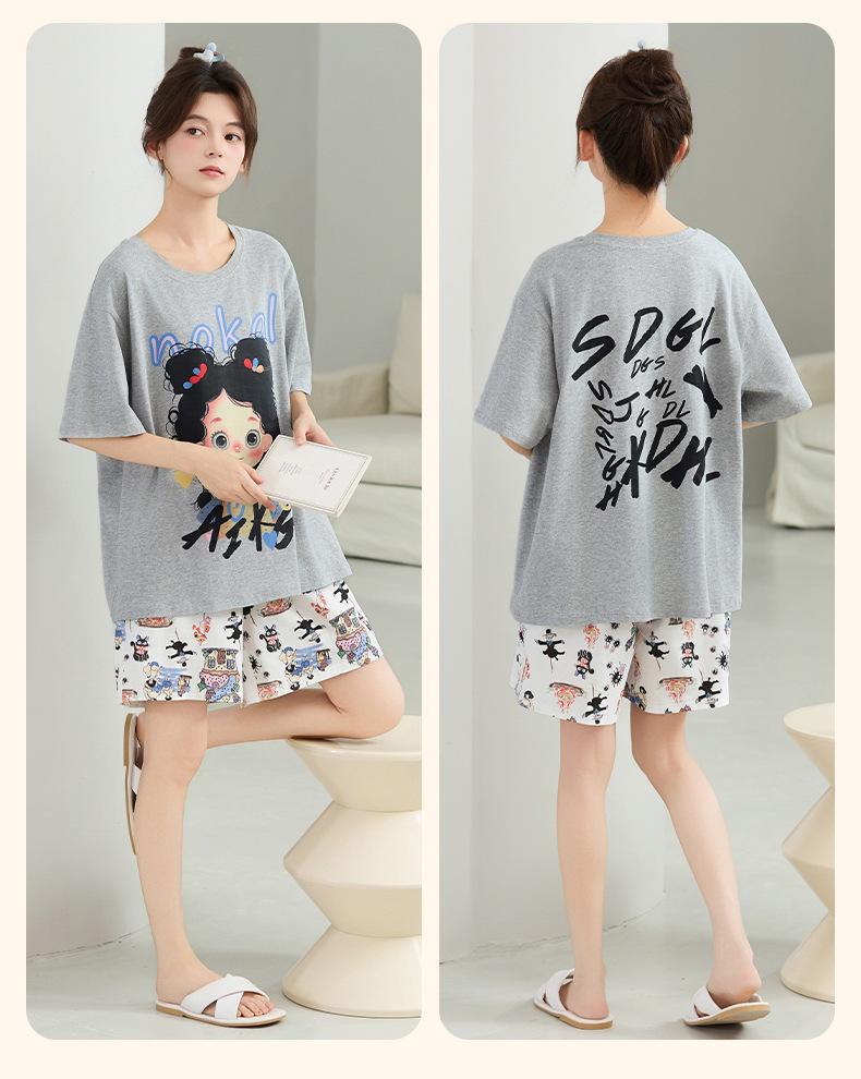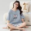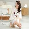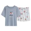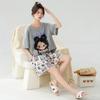 Verano Nuevo Manga Corta Rayón Algodón Pijama Mujer Shorts Damas Dibujos Animados Lindo Casual Suelto Conjunto Ropa de Casa