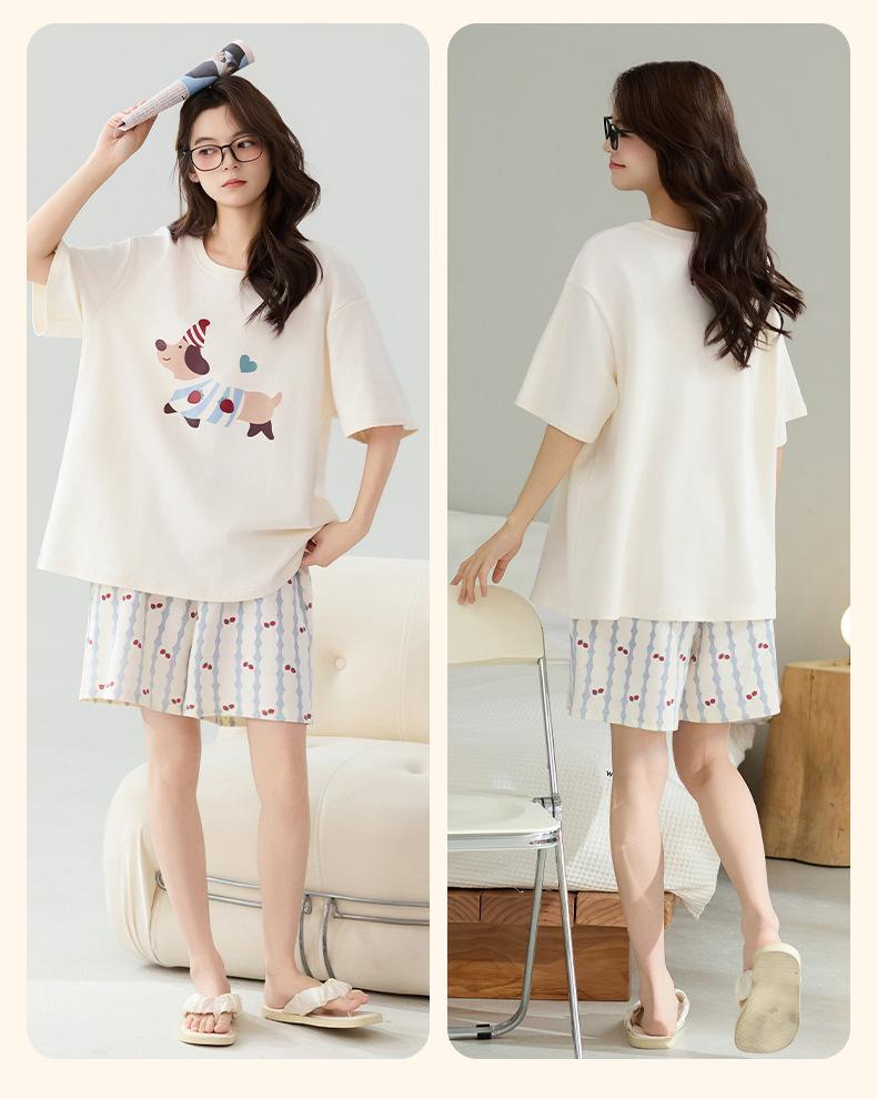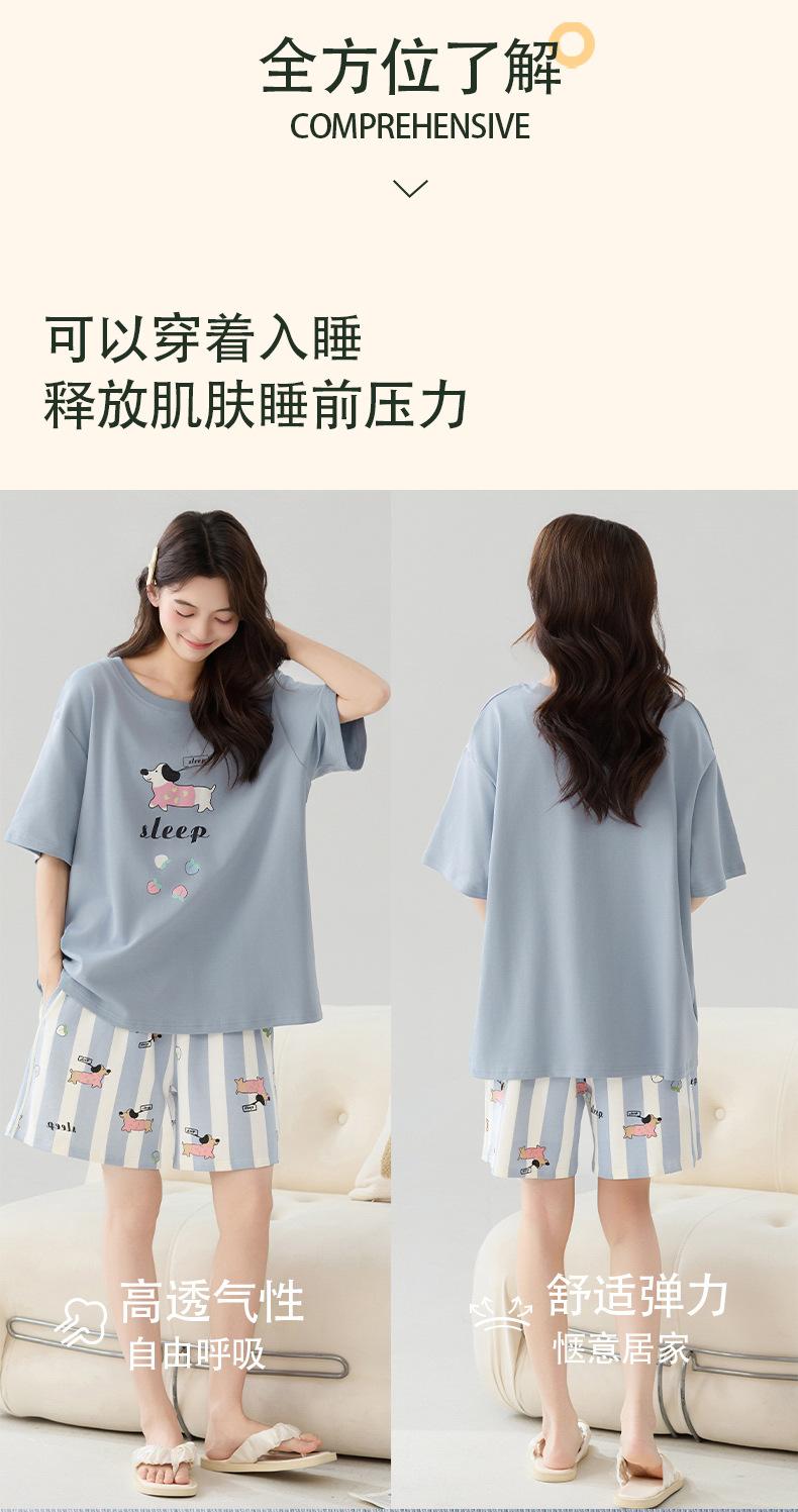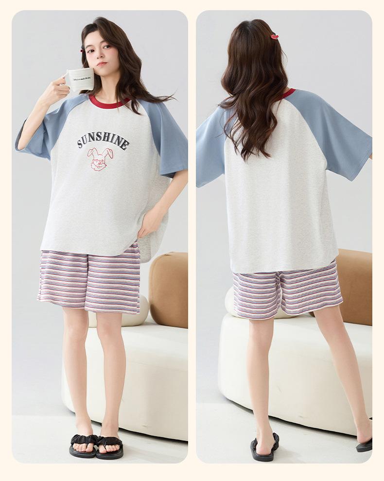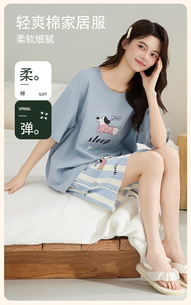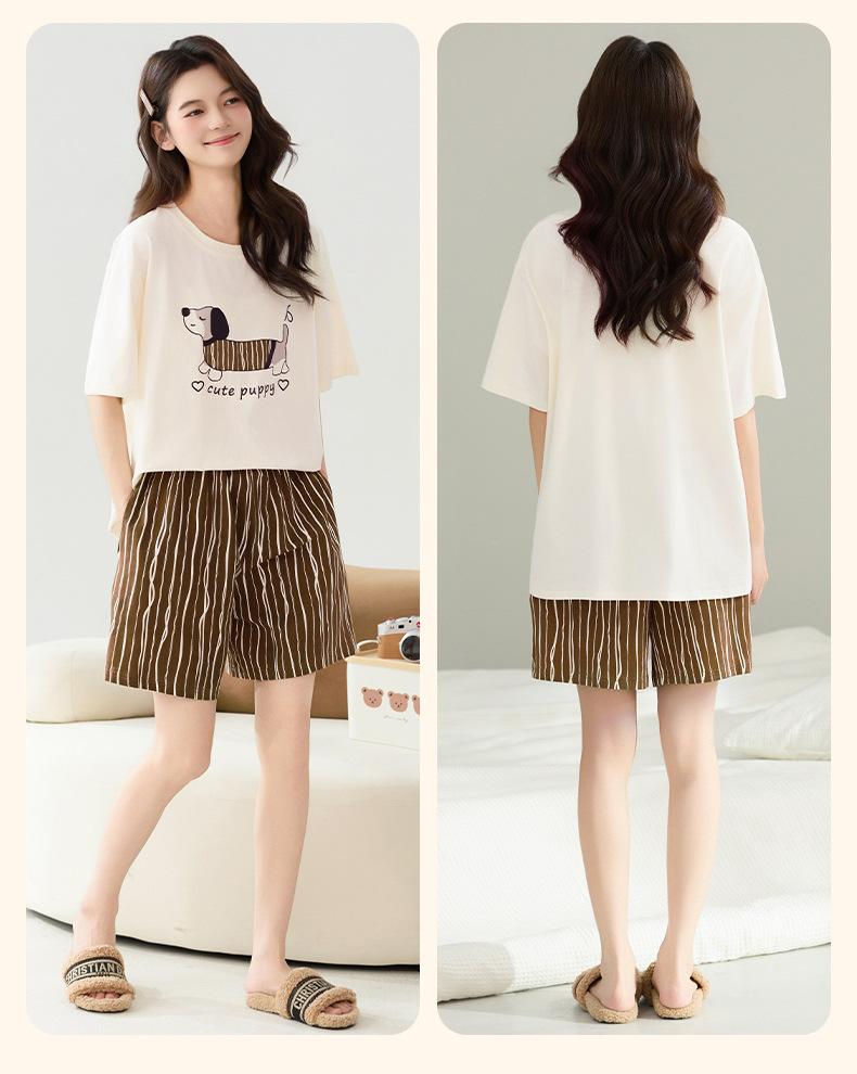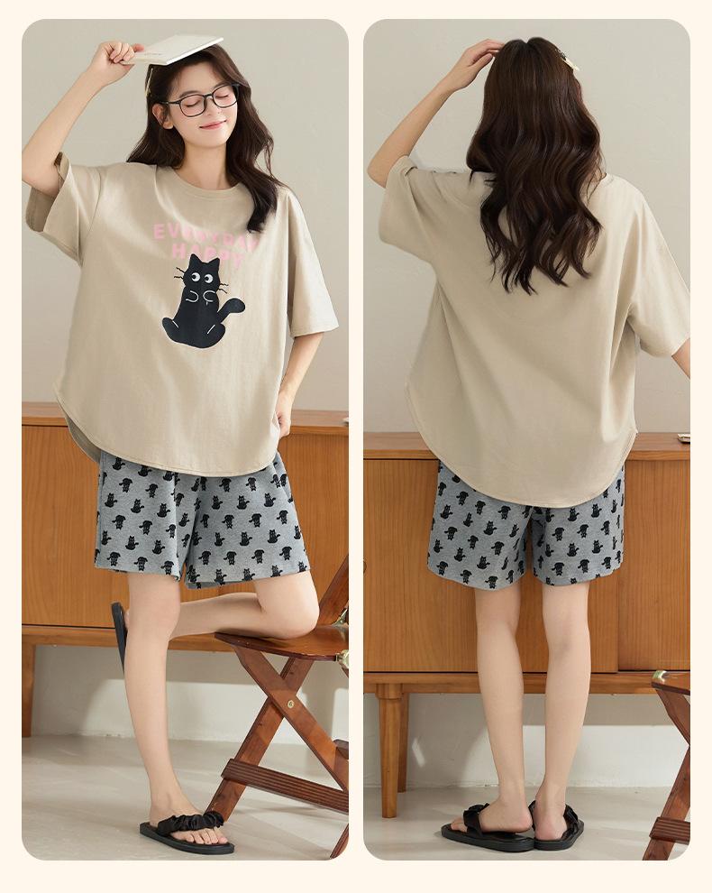 Verano Nuevo Manga Corta Rayón Algodón Pijama Mujer Shorts Damas Dibujos Animados Lindo Casual Suelto Conjunto Ropa de Casa