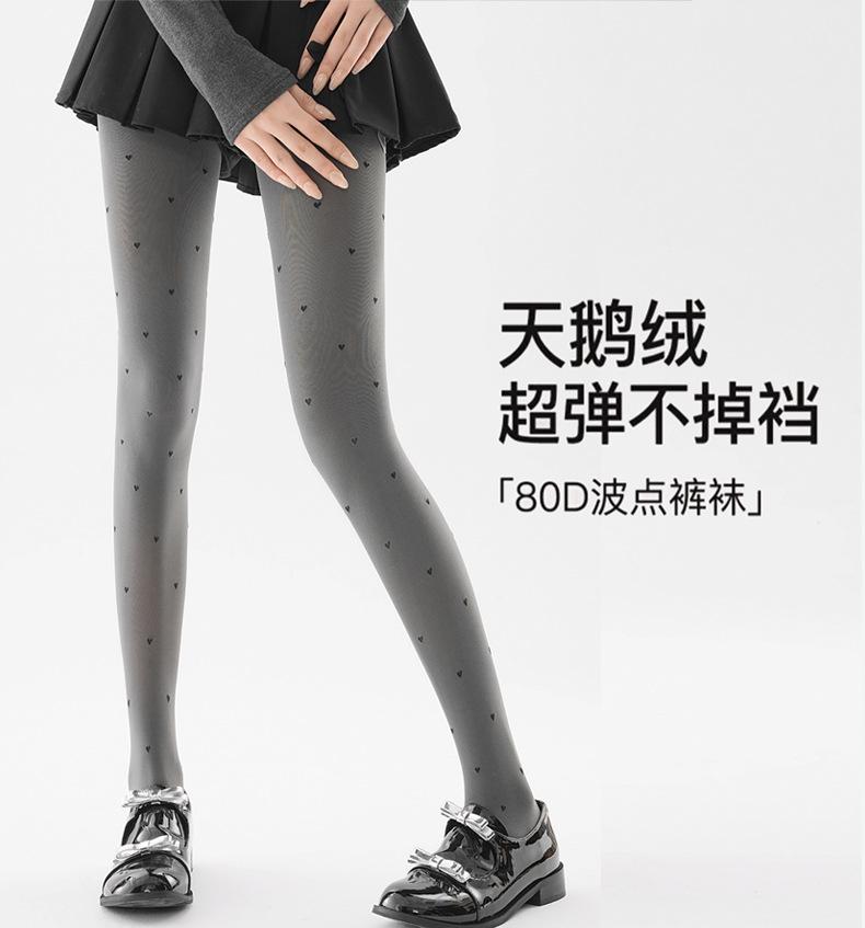 Medias Pantimedias Lunares Gris Sésamo Primavera Otoño Extra Largas 80D Antidesgarros Alta Elasticidad Leggings de Terciopelo Negro Mujer