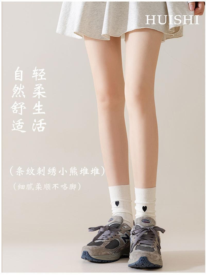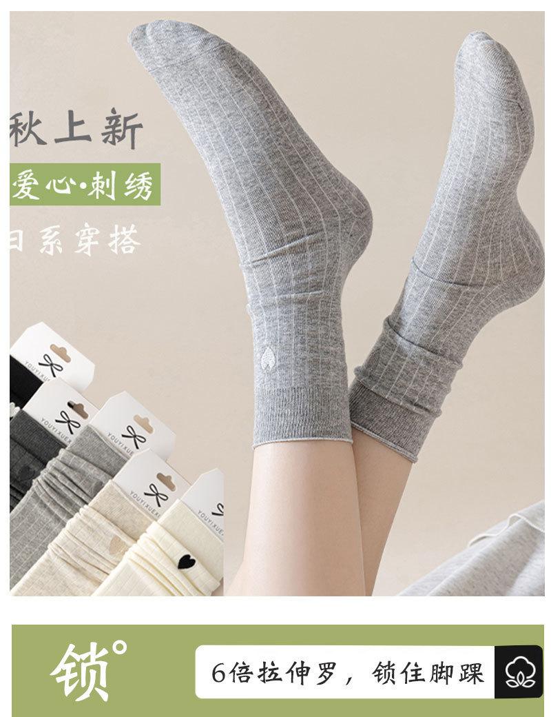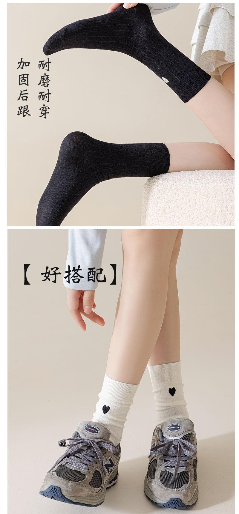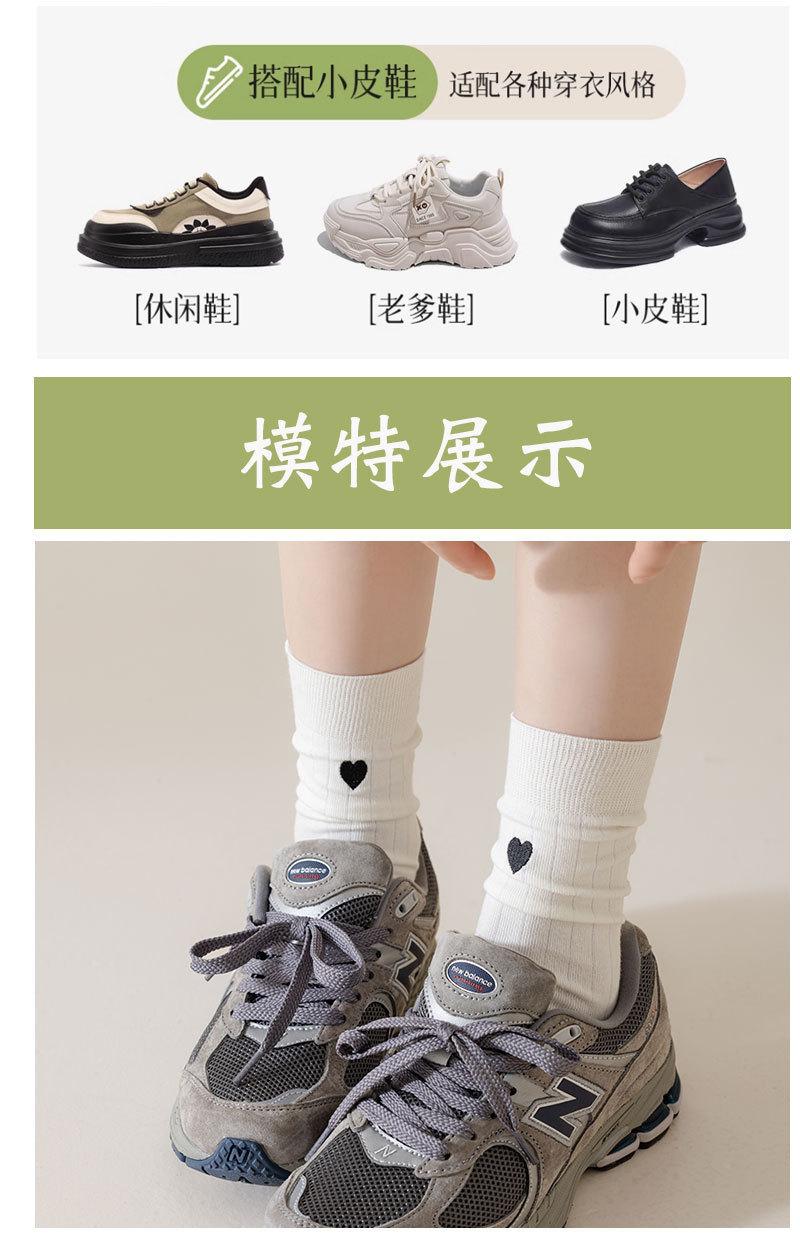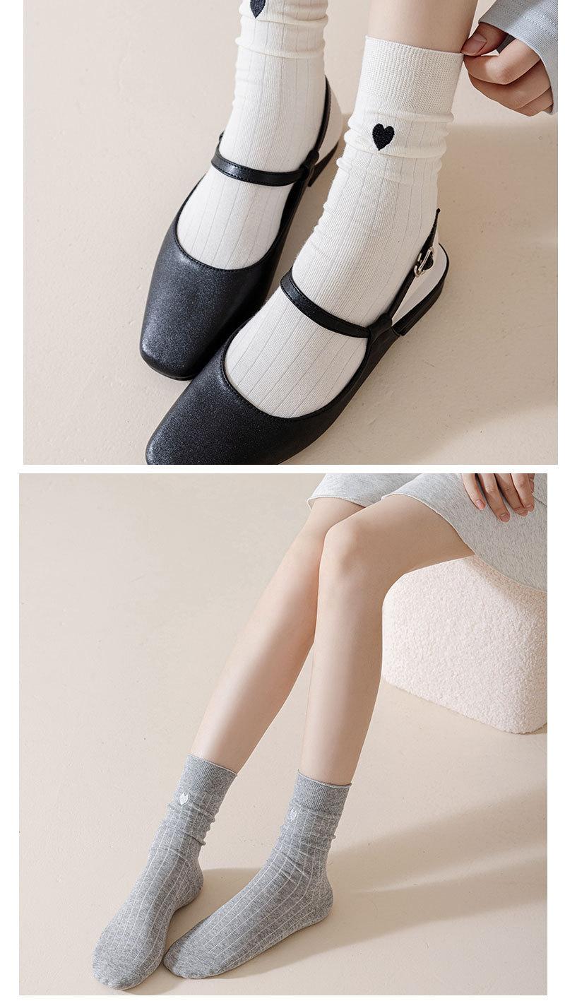 Calcetines Preppy Estilo Coreano Blanco y Negro Media Caña Mujer Otoño Invierno Bordado Love Acanalados Calcetines de Mujer Calcetines de Moda ins Calcetines Arrugados