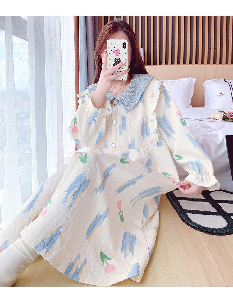 Vestido de Confinamiento Postparto de Maternidad en Capas de Nuevo Estilo Xi Yue 2025 Otoño Invierno Mamá Embarazada Algodón Aire Lactancia Trabajo de Parto