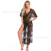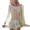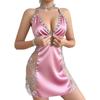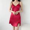 Nuevo Camisola de Lencería de Satén Transfronteriza Bordado Flores Pequeñas Sexy Escote en V Profundo Camisón Encaje Transparente Lencería Pijama de Mujer