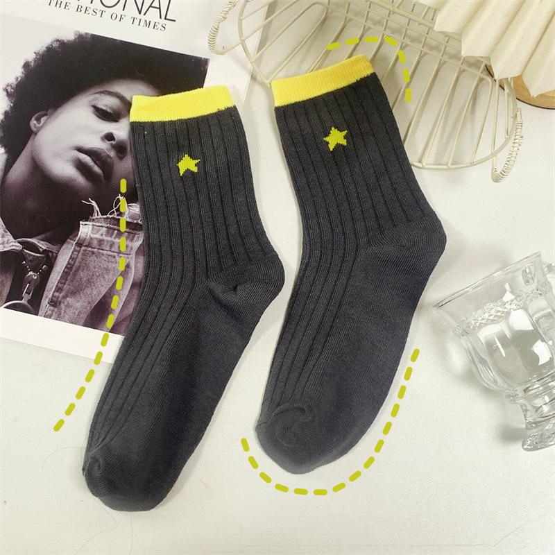 Otoño e invierno versión coreana calcetines de algodón estrellitas calcetines de moda bloques de color calcetines casuales versátiles de media caña calcetines de felpa transpirables rojos de internet