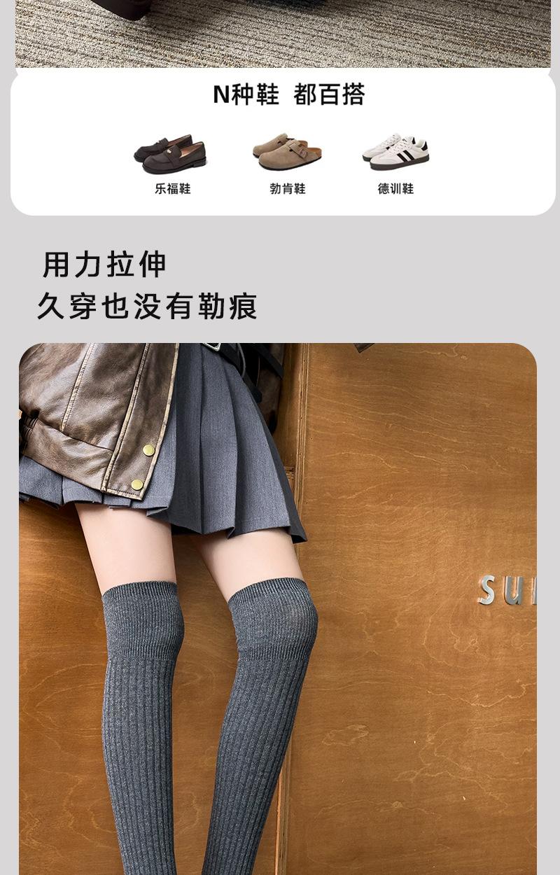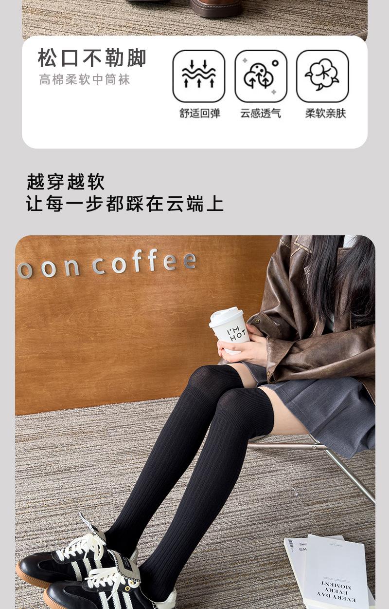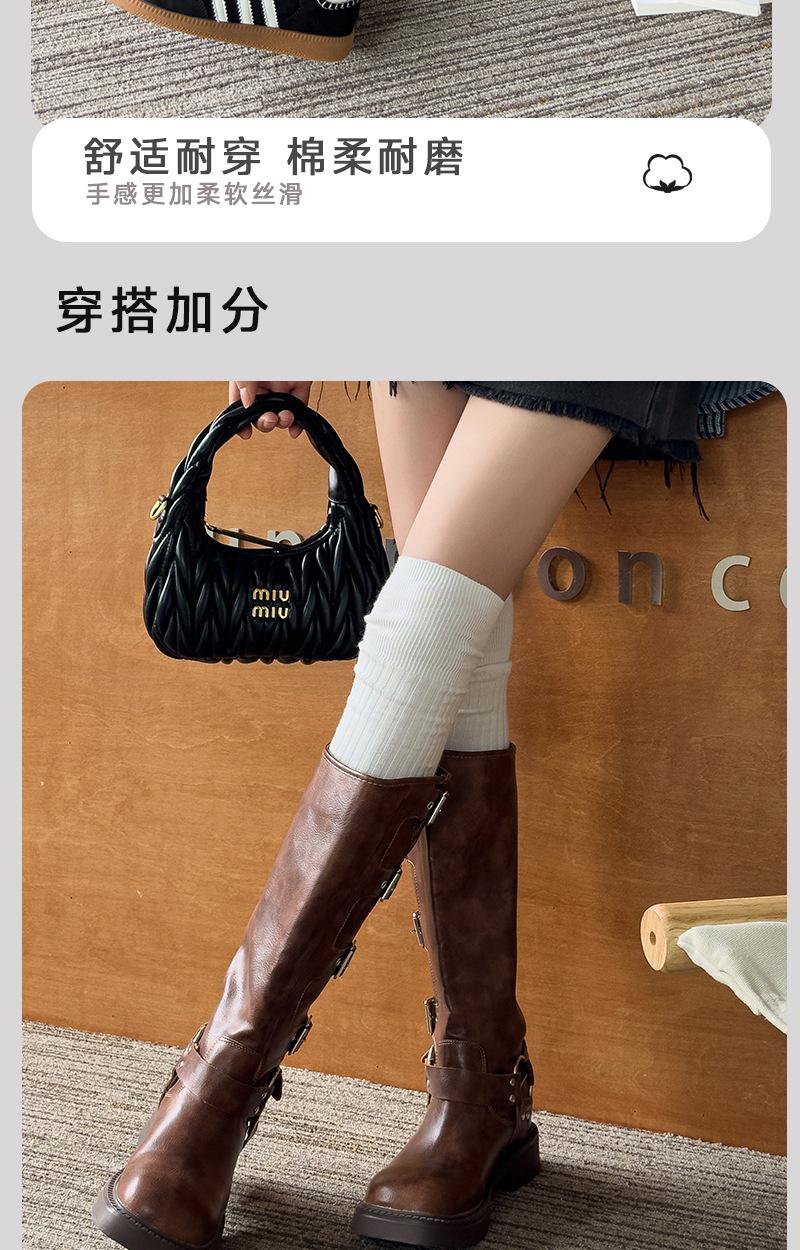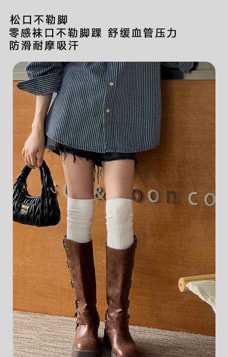 Calcetines hasta la rodilla para mujer Calcetines largos Otoño e Invierno Calcetines fruncidos hasta la pantorrilla 2025 Nuevos Calcetines hasta el muslo Blancos Estilo Otoño e Invierno Mujer