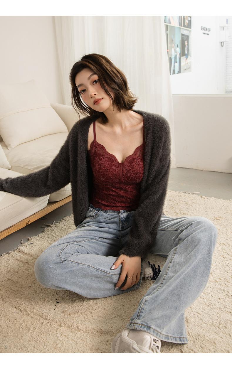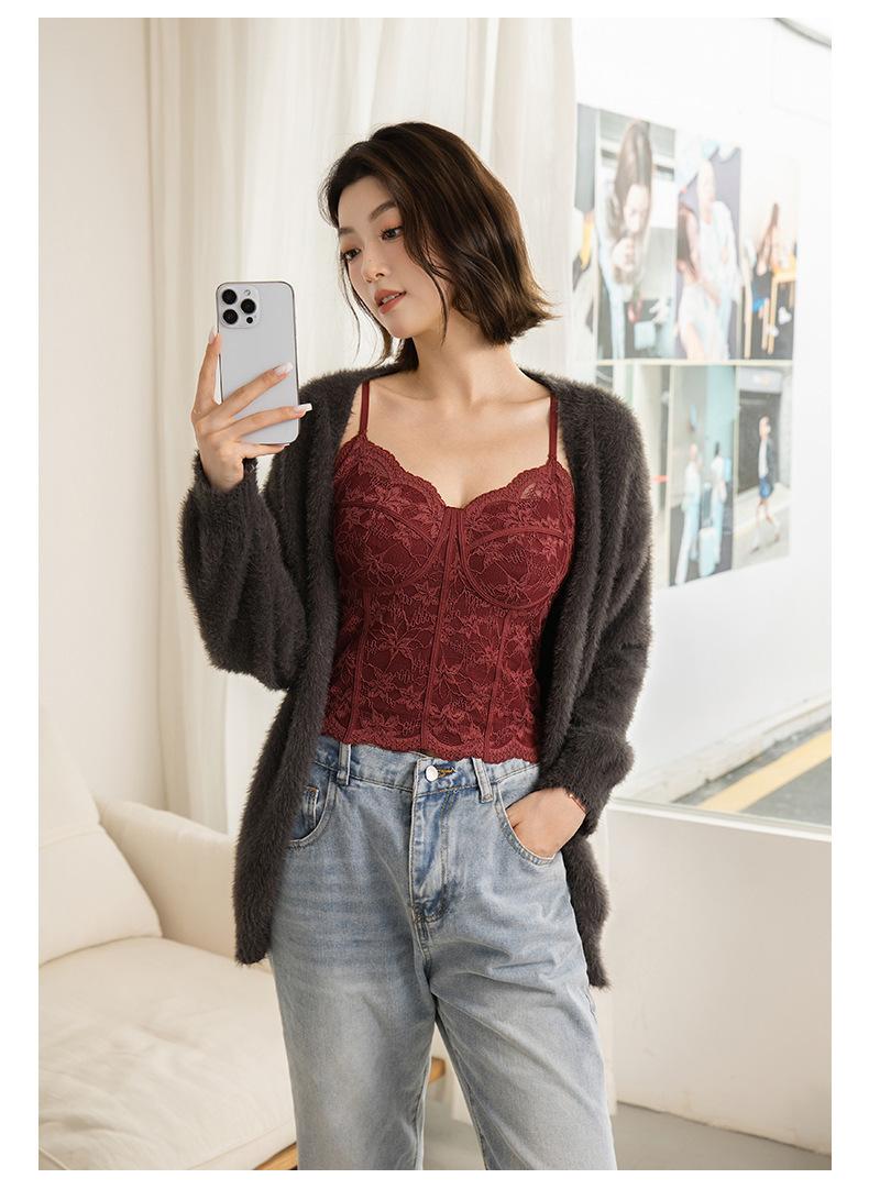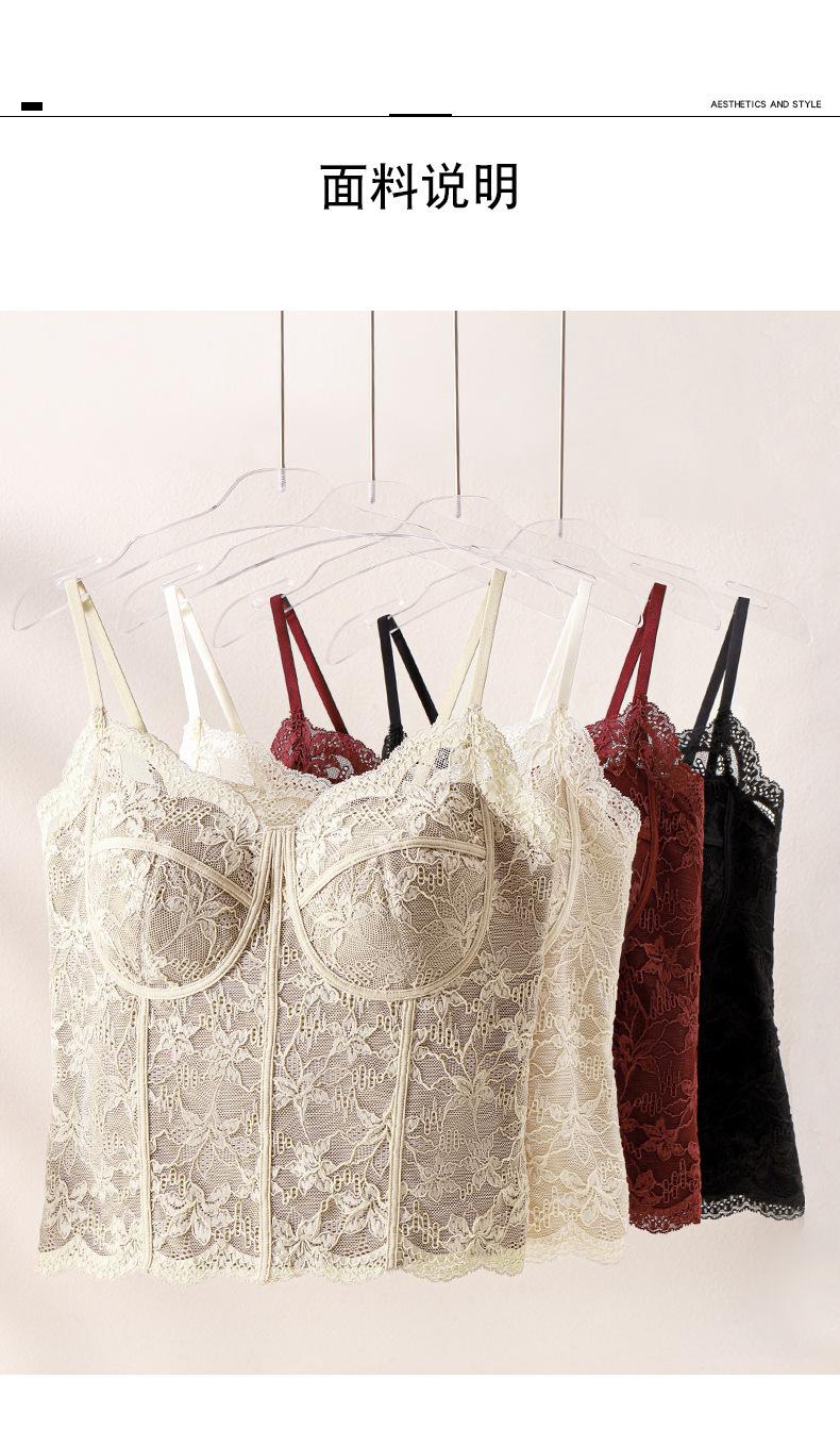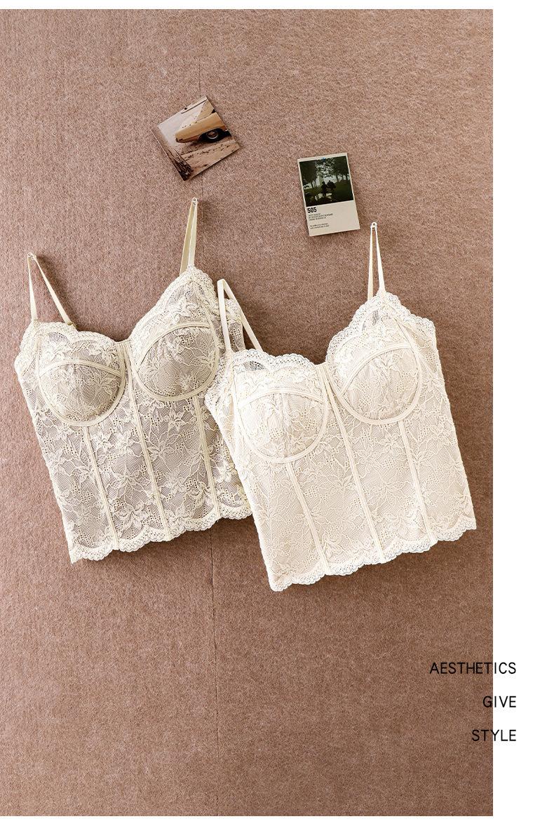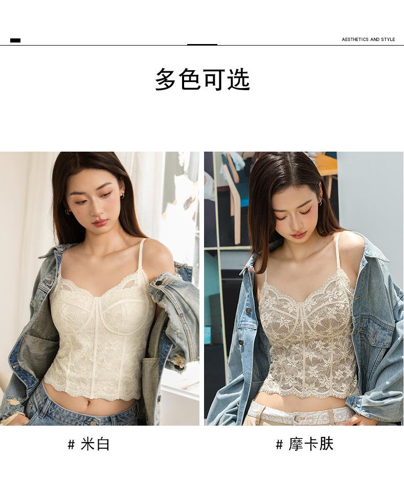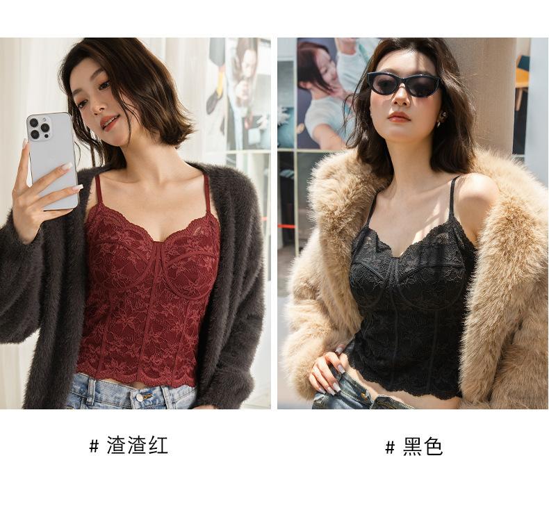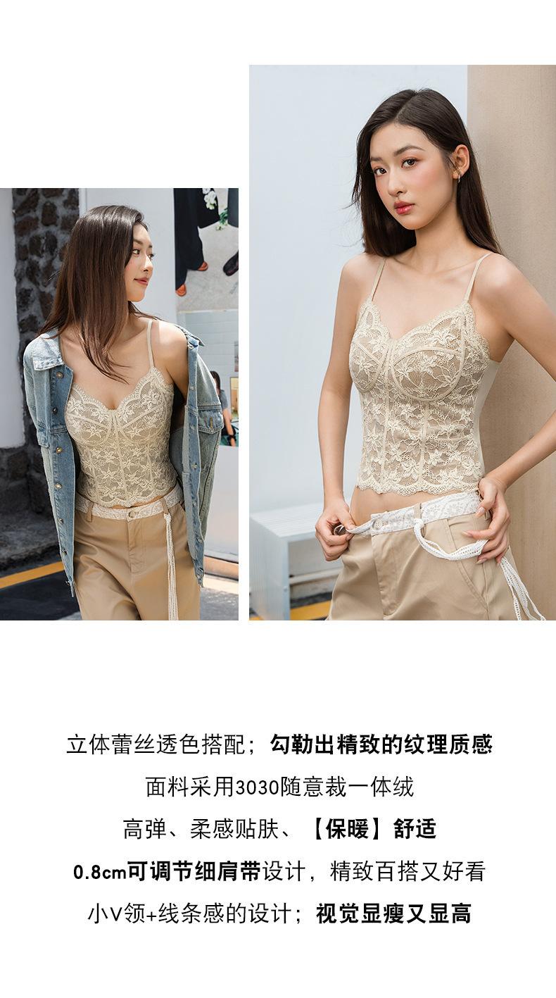 Otoño e invierno retro francés con cuello en V encaje chaleco ropa interior para mujer, camisola cálida cepillada con almohadillas en el pecho, tirantes espalda hermosa