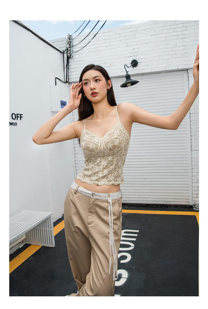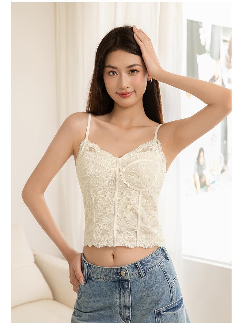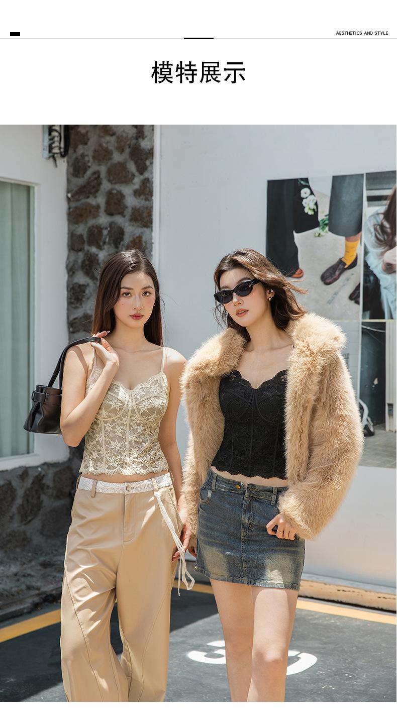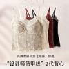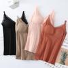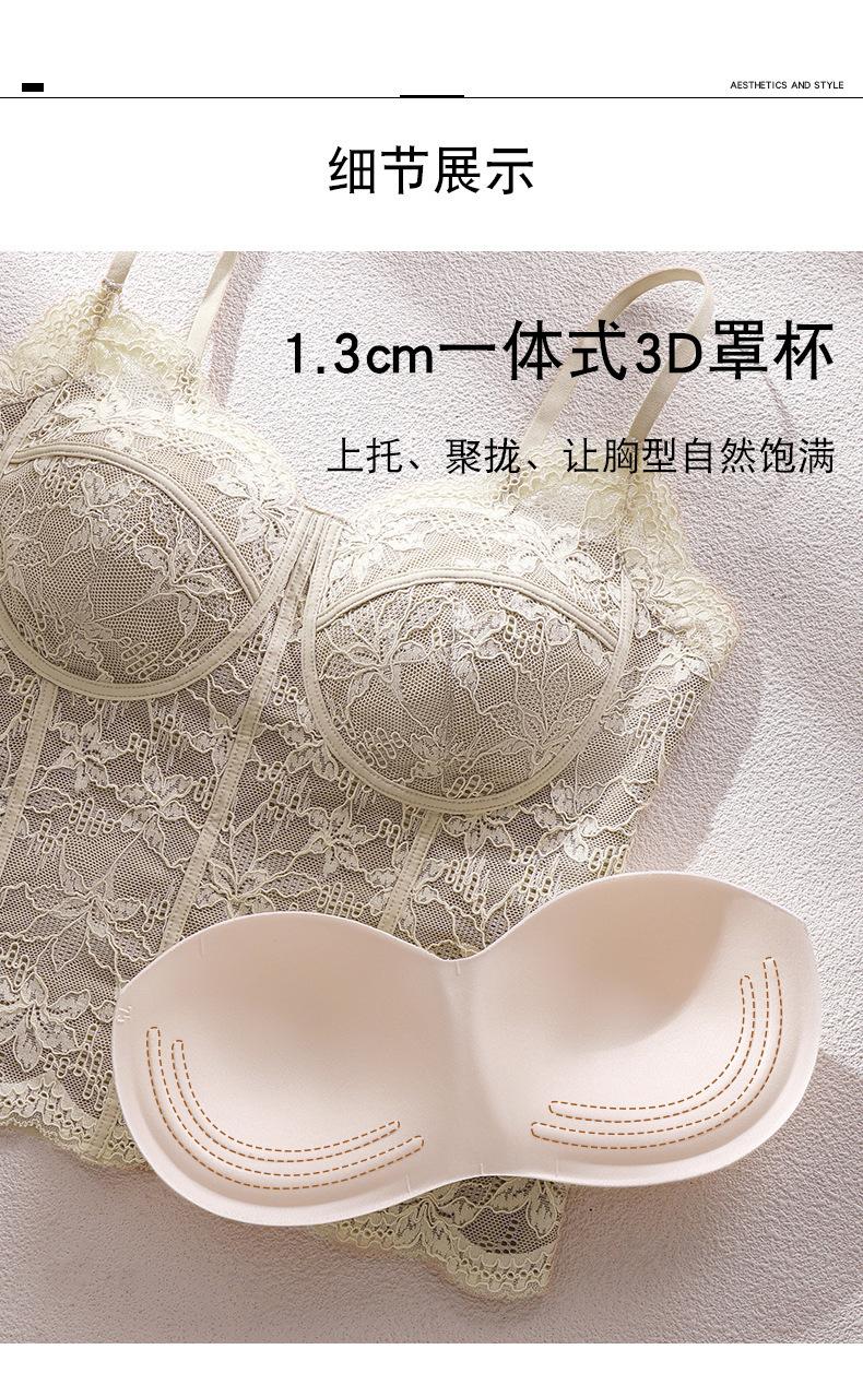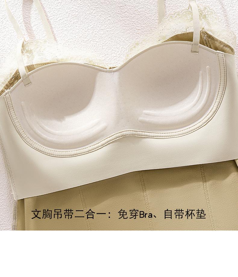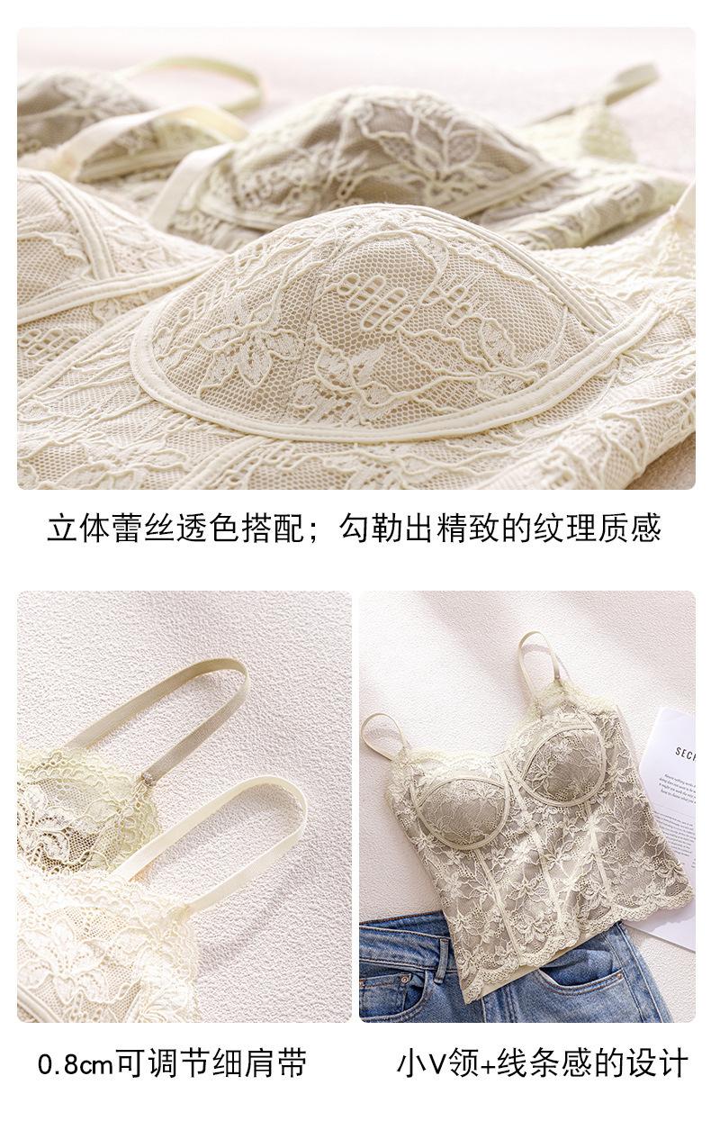 Otoño e invierno retro francés con cuello en V encaje chaleco ropa interior para mujer, camisola cálida cepillada con almohadillas en el pecho, tirantes espalda hermosa
