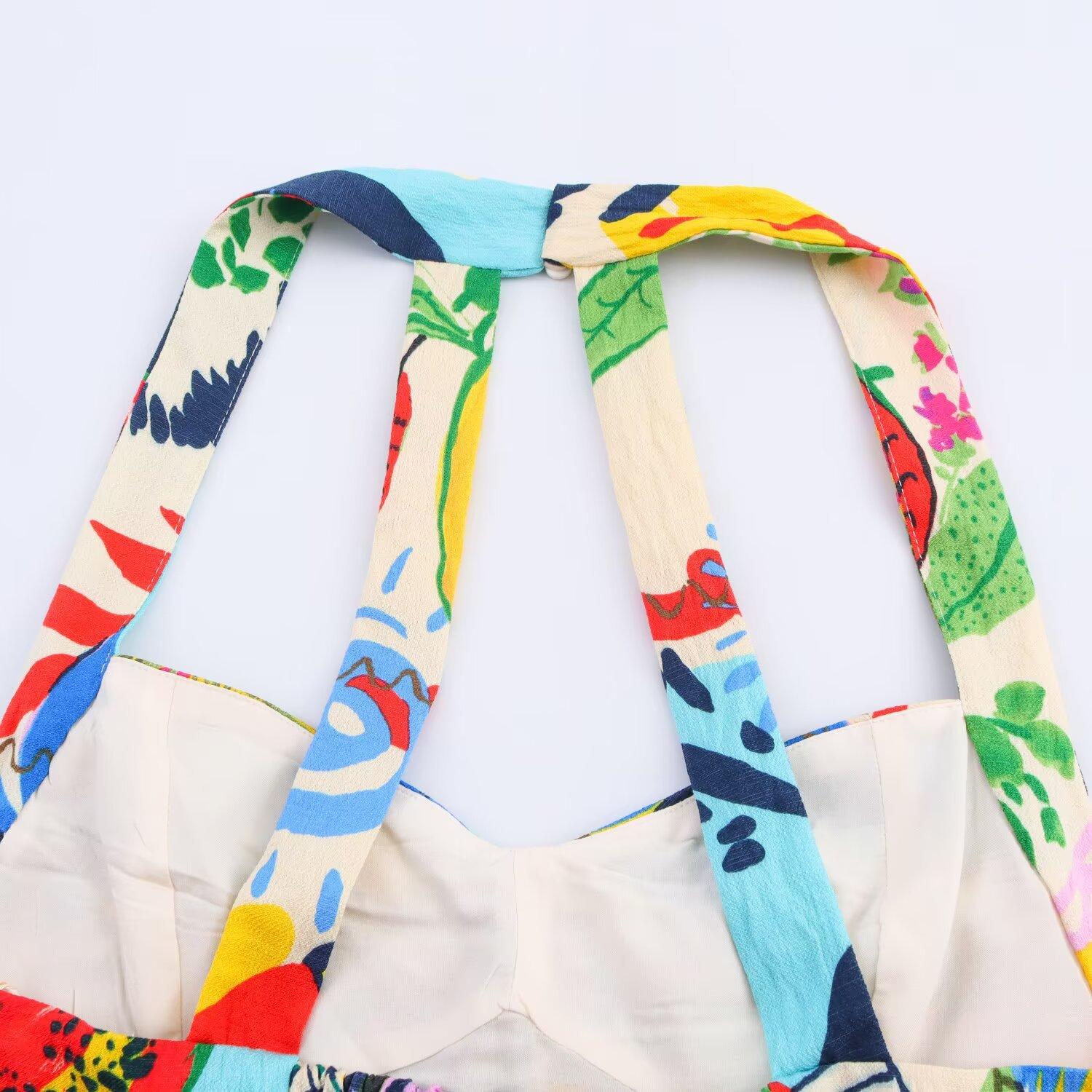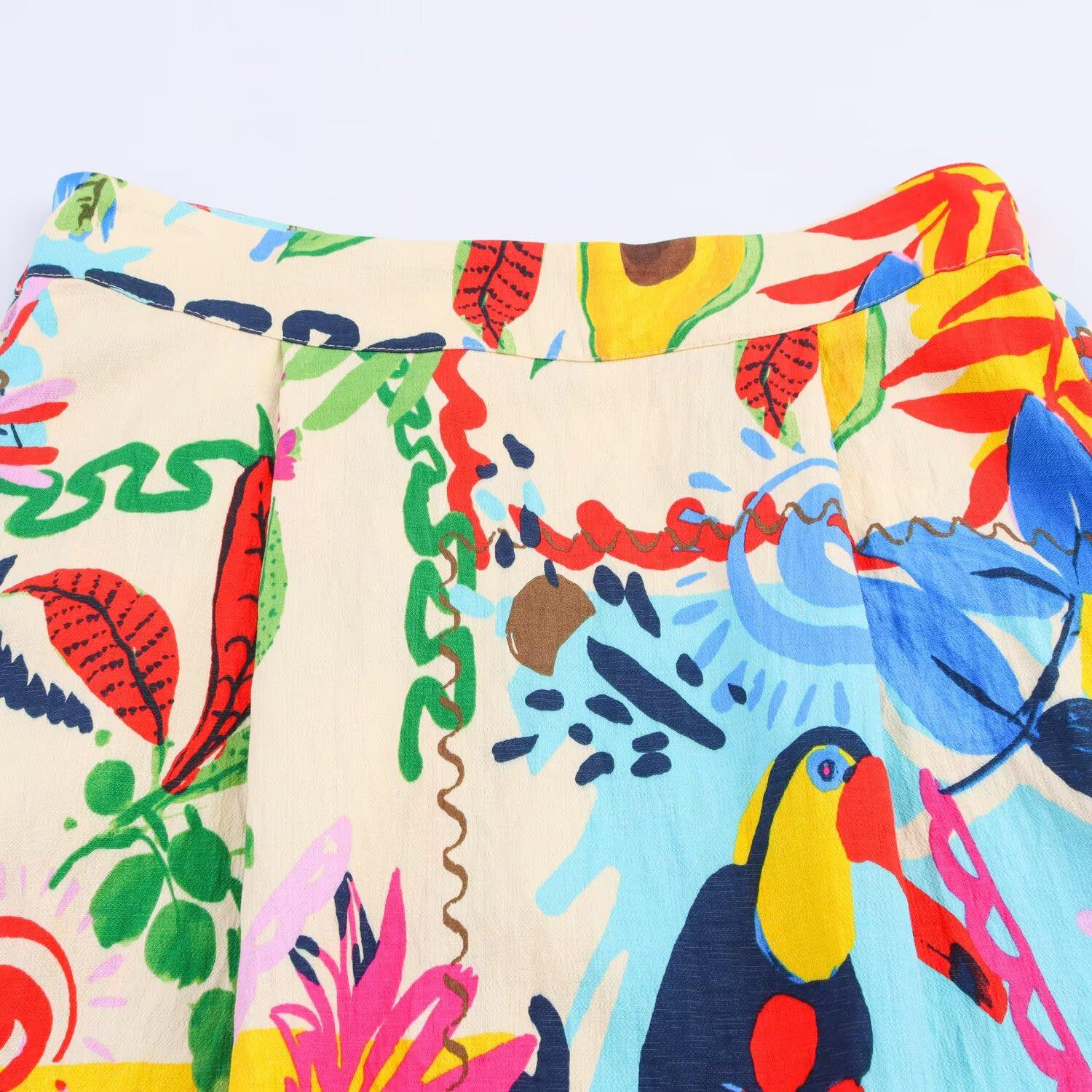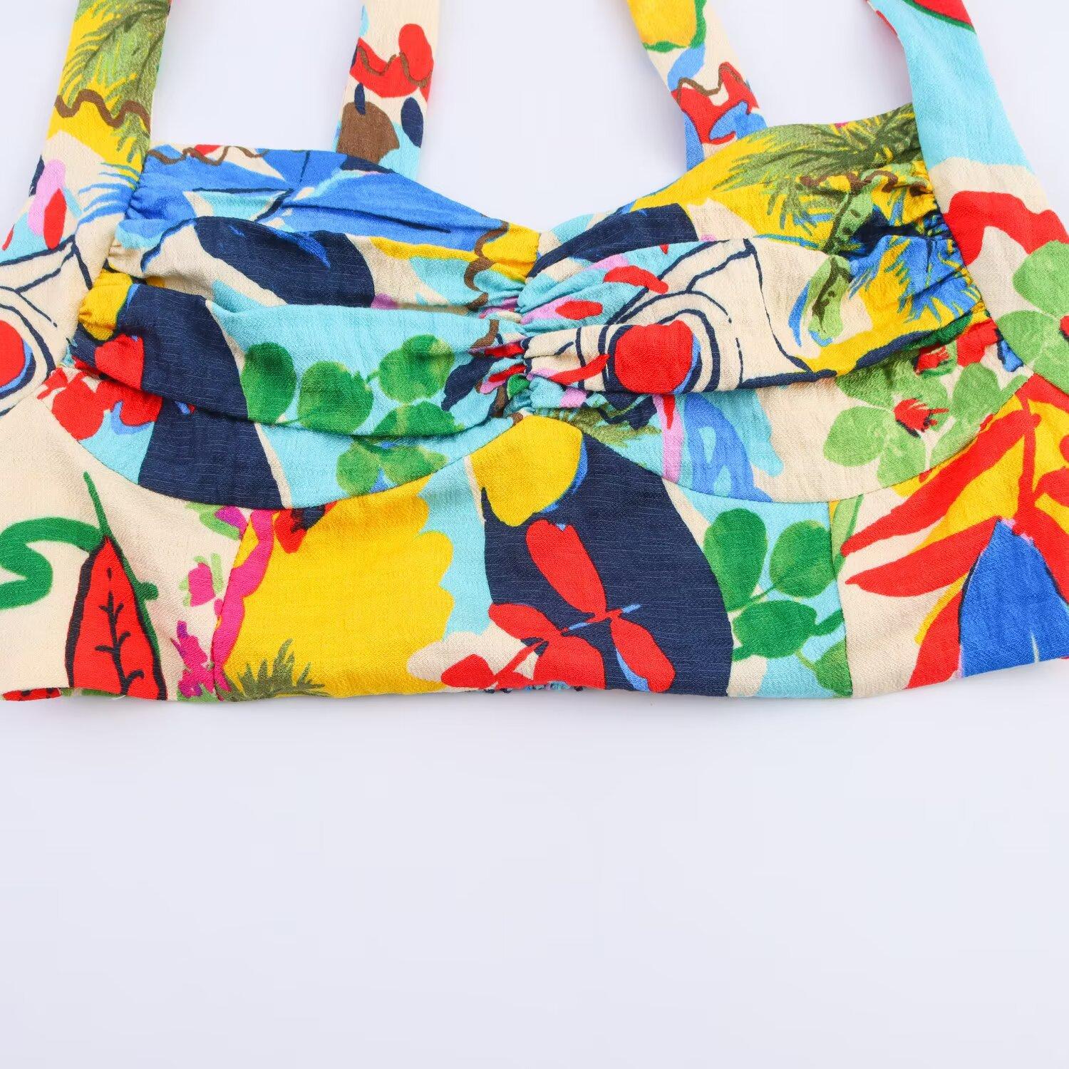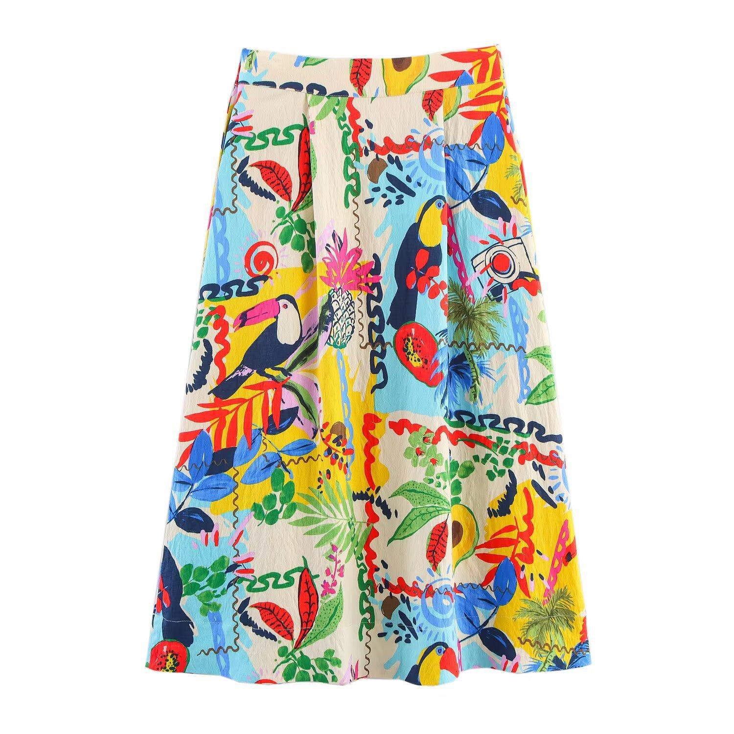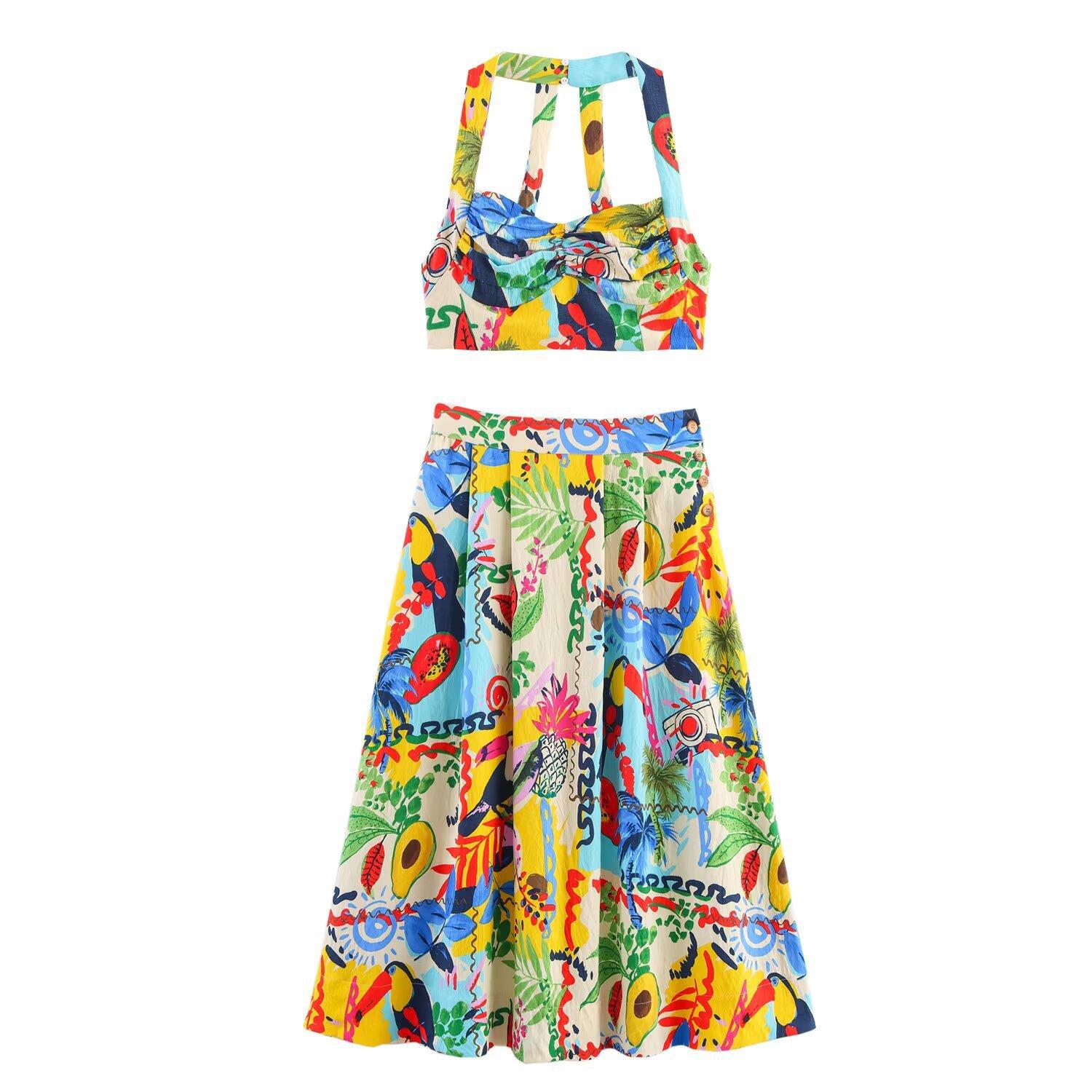 Exclusivo Transfronterizo Moda Europea y Americana para Mujer AliExpress Estilo Caliente Estampado Top Corto + Estampado Falda Larga