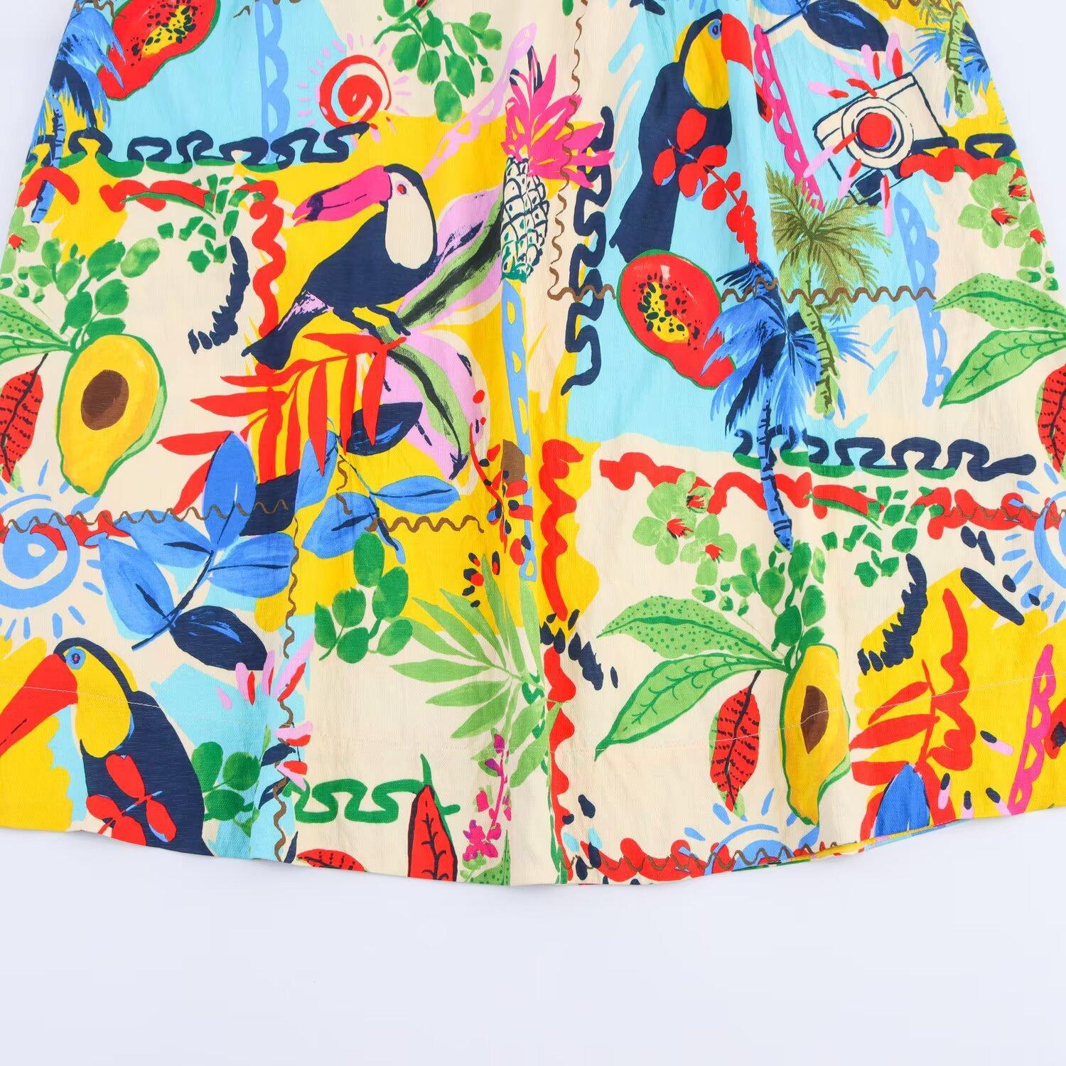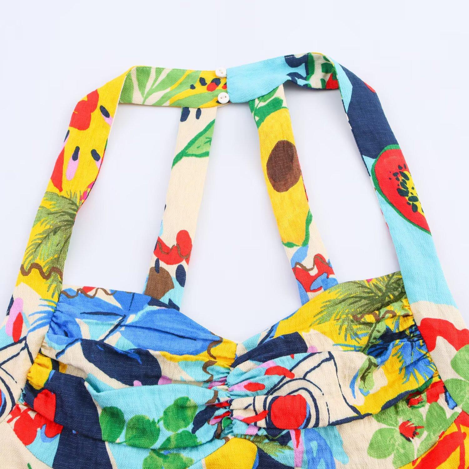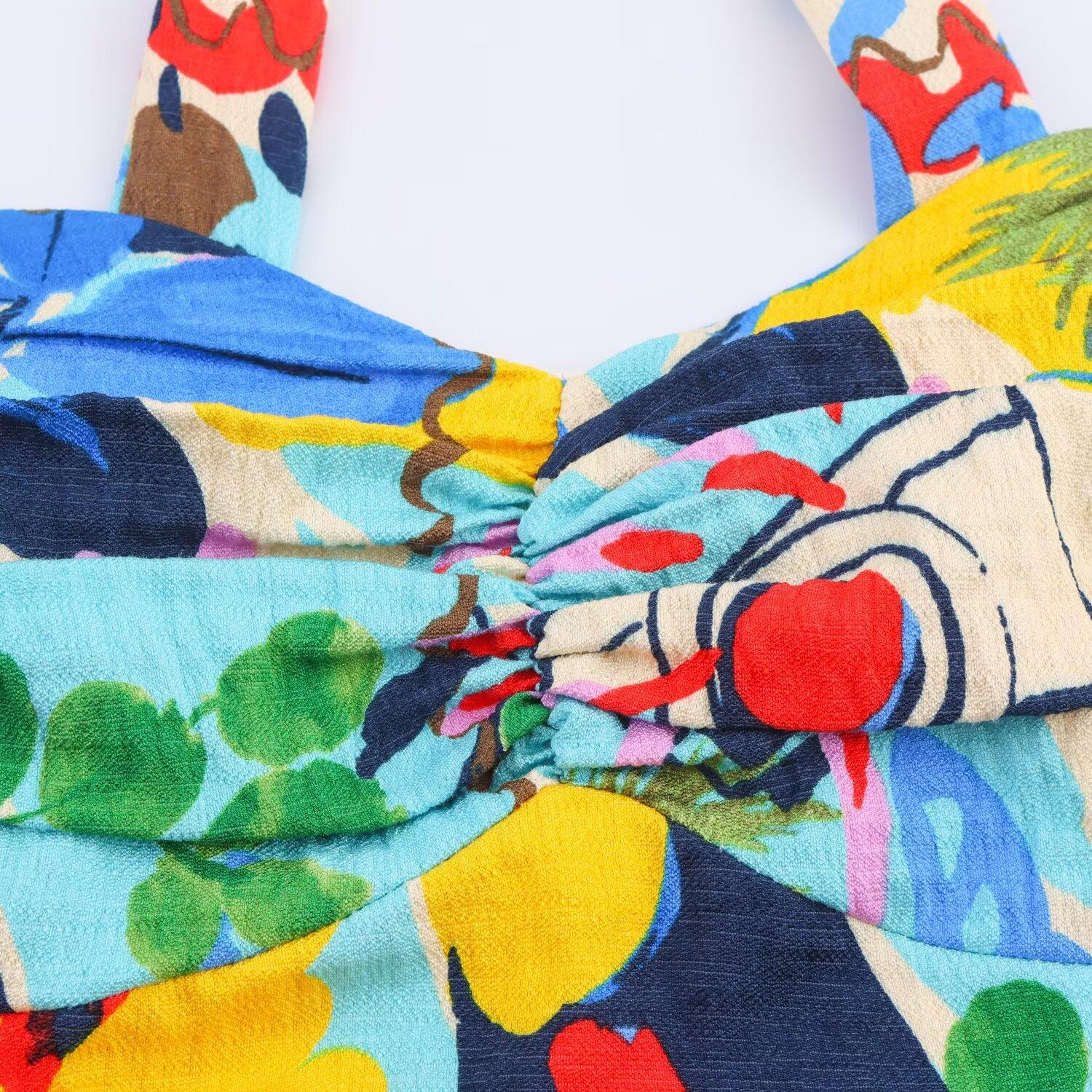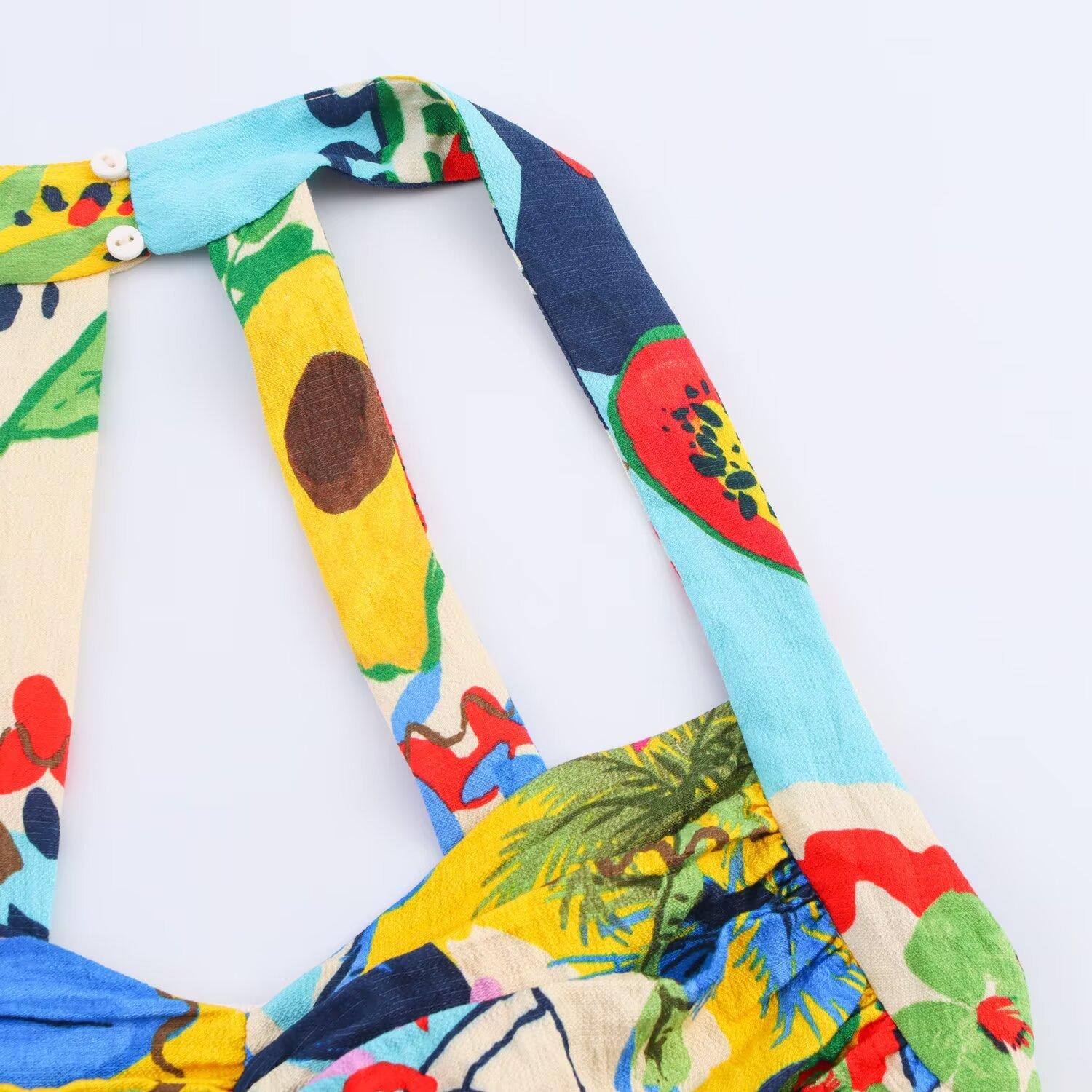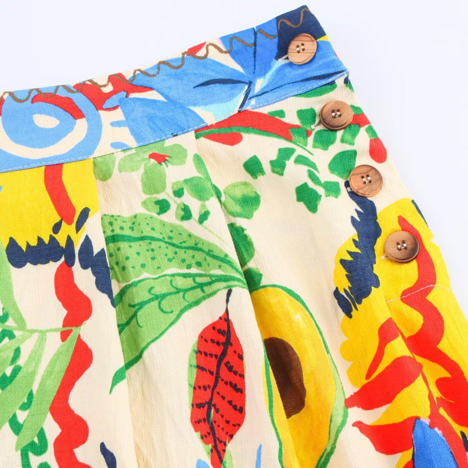 Exclusivo Transfronterizo Moda Europea y Americana para Mujer AliExpress Estilo Caliente Estampado Top Corto + Estampado Falda Larga
