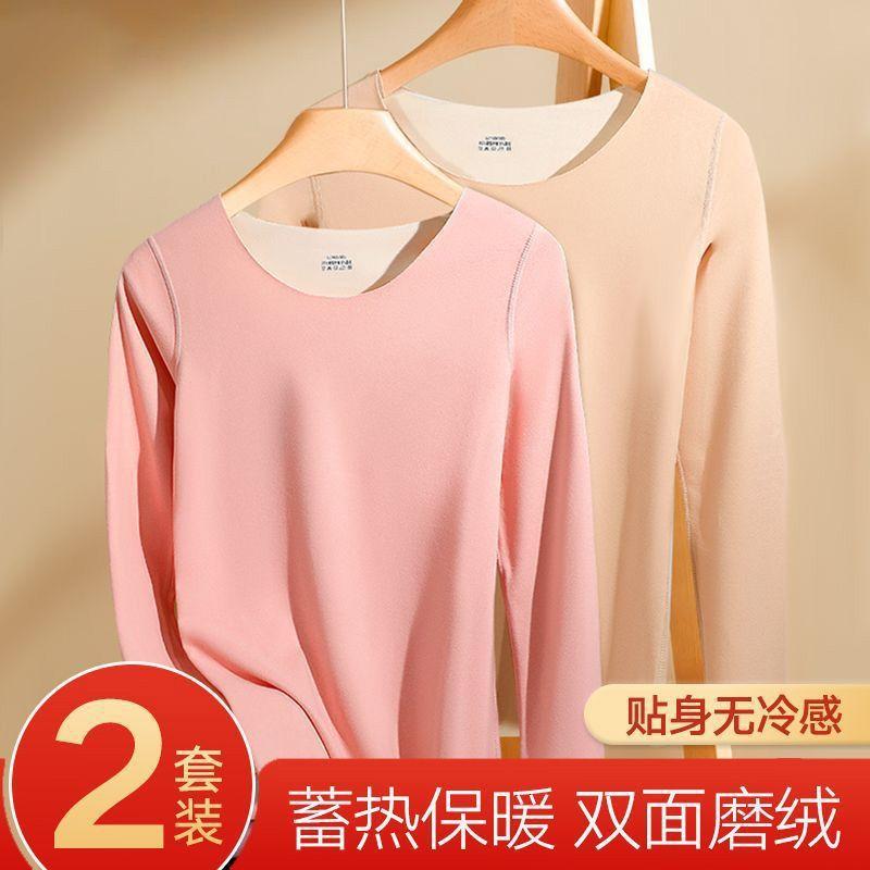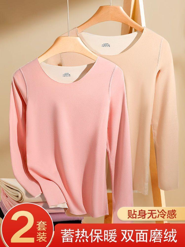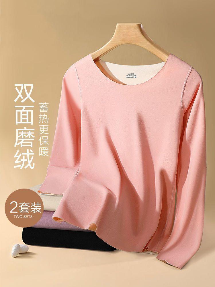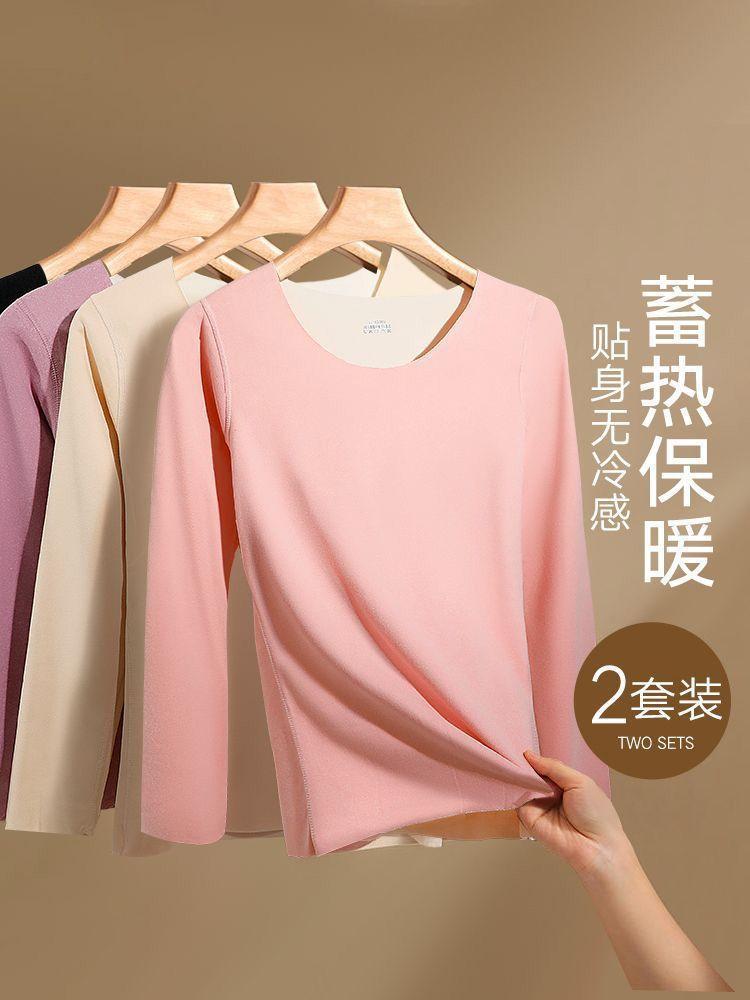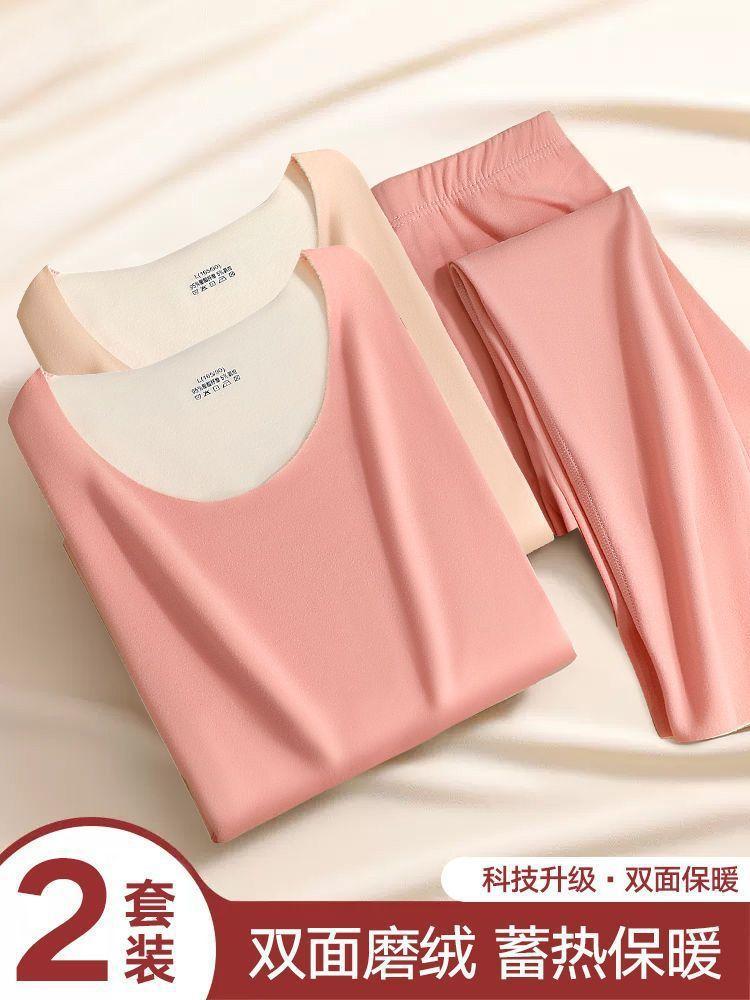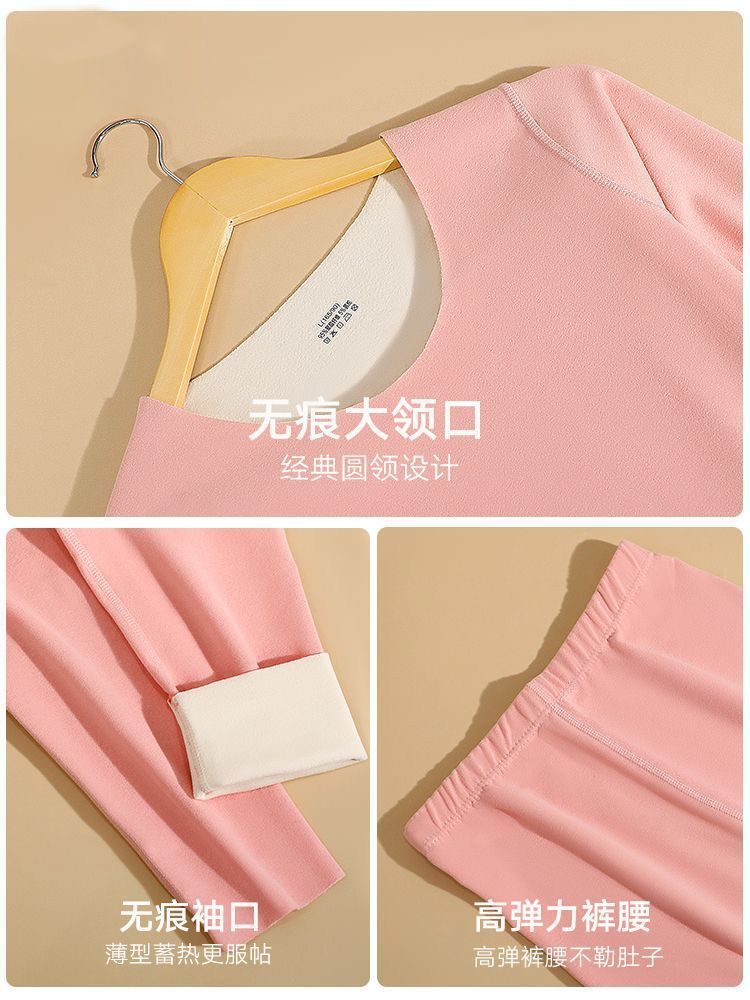 Ropa Interior Térmica para Mujer, Gruesa y con Forro Polar, Conjunto de Capa Base sin Costuras de Lana y Seda, Invierno Cuello Redondo