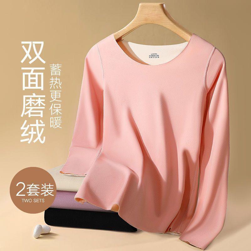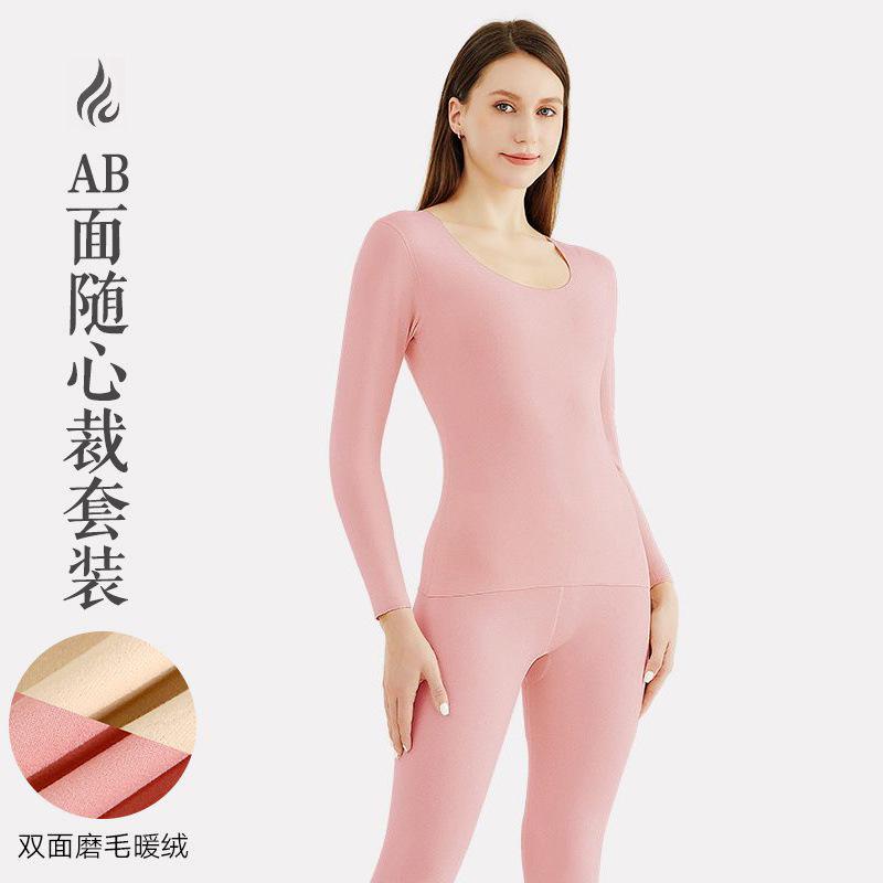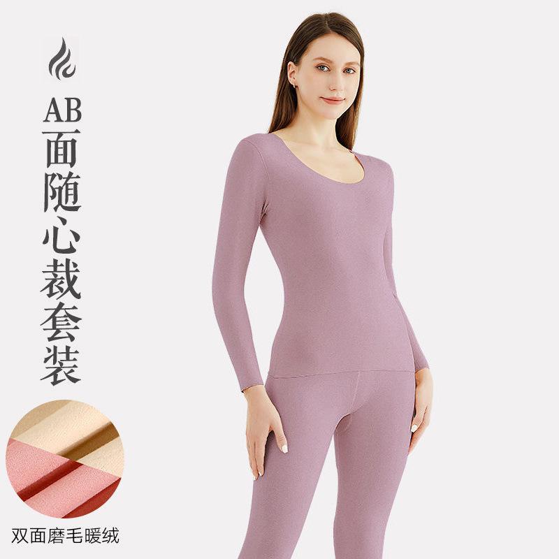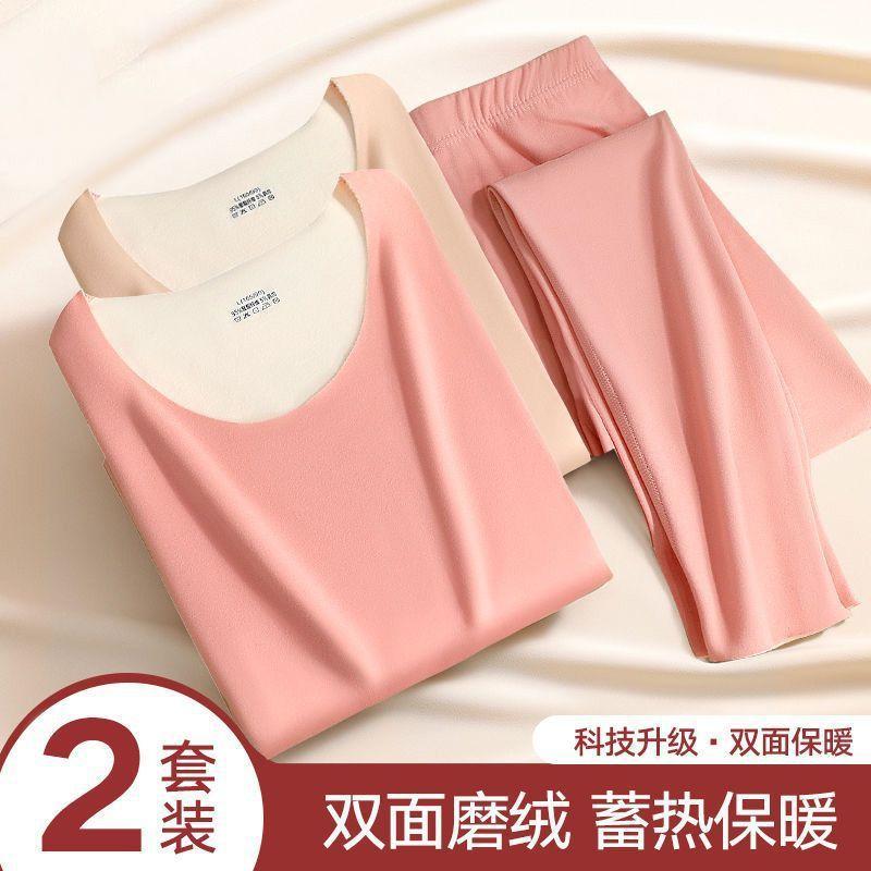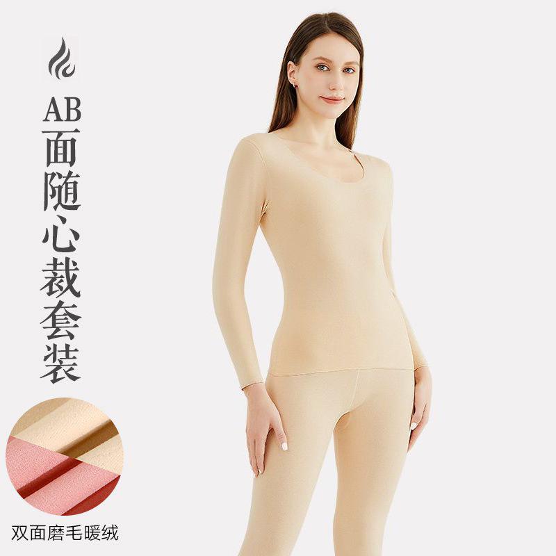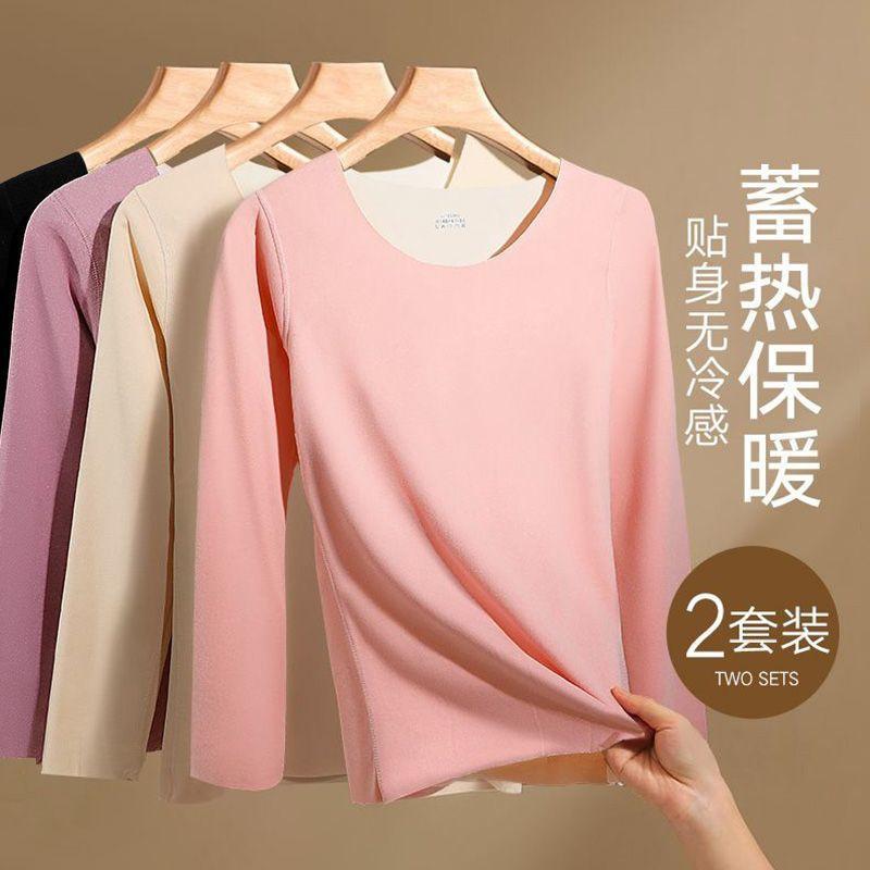 Ropa Interior Térmica para Mujer, Gruesa y con Forro Polar, Conjunto de Capa Base sin Costuras de Lana y Seda, Invierno Cuello Redondo