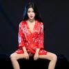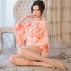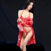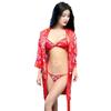Tentación de cereza Europa y Estados Unidos comercio exterior ropa interior sexy sexy rojo estampado khan vapor kimono bata de baño traje de bata de baño de tres puntos