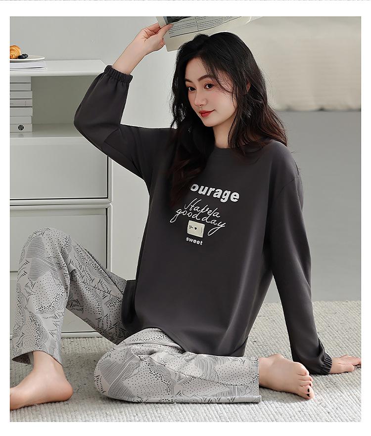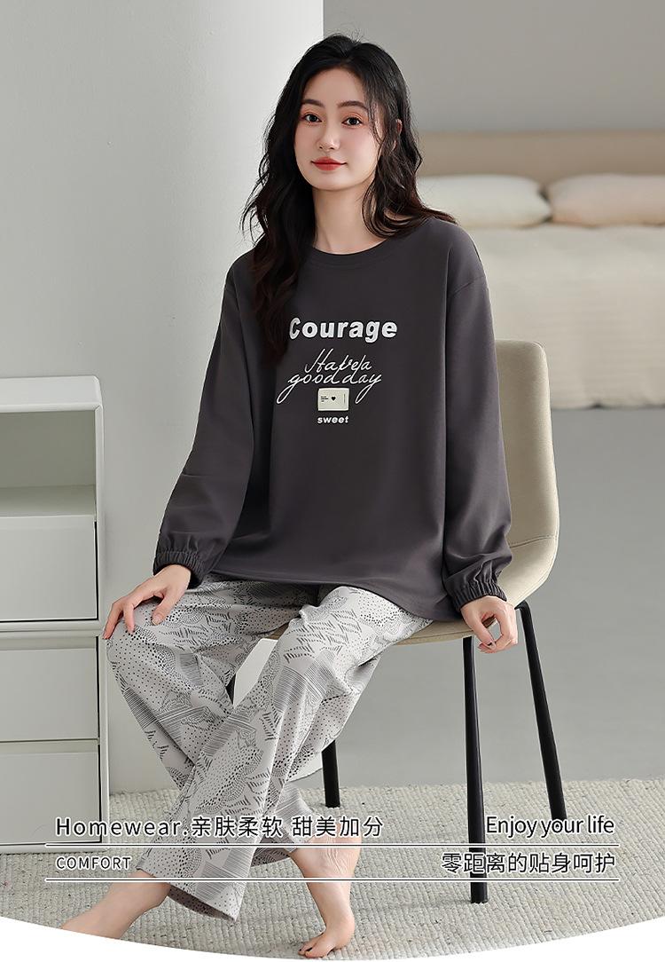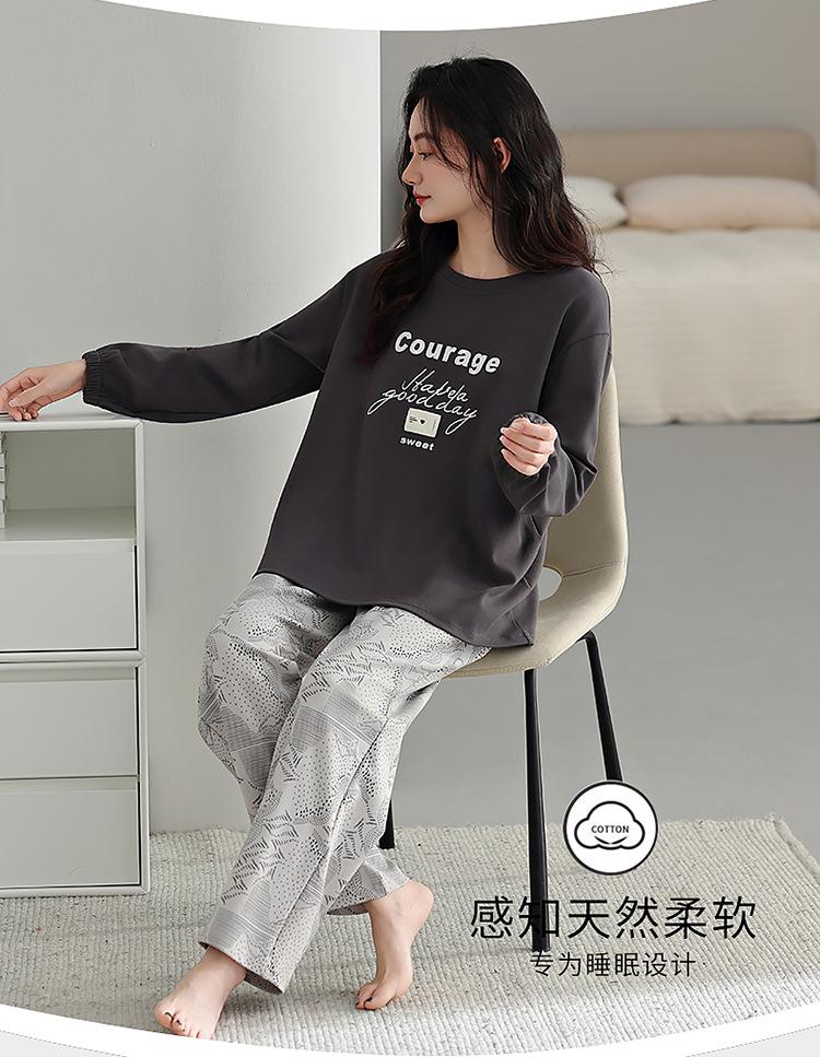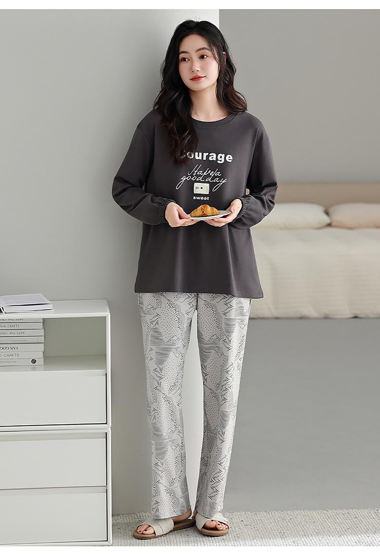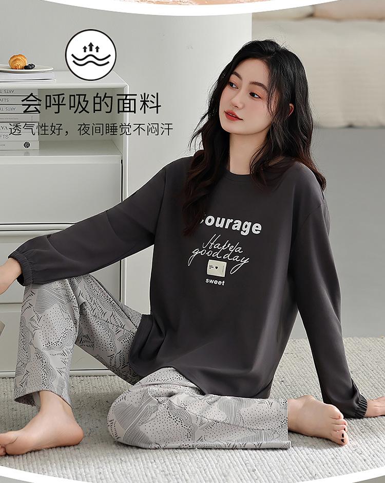 Nuevo Estilo de Primavera y Otoño 100% Algodón Puro Manga Larga Pantalón Largo Cuello Redondo Holgado Casual Pijama Ropa para el Hogar Se Puede Usar Afuera Mujer
